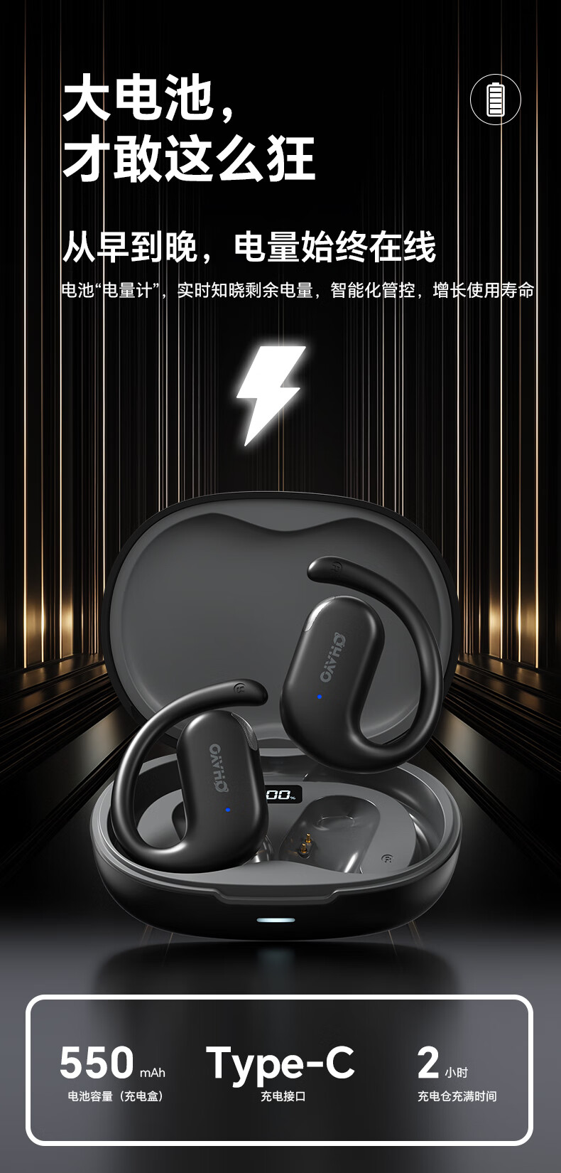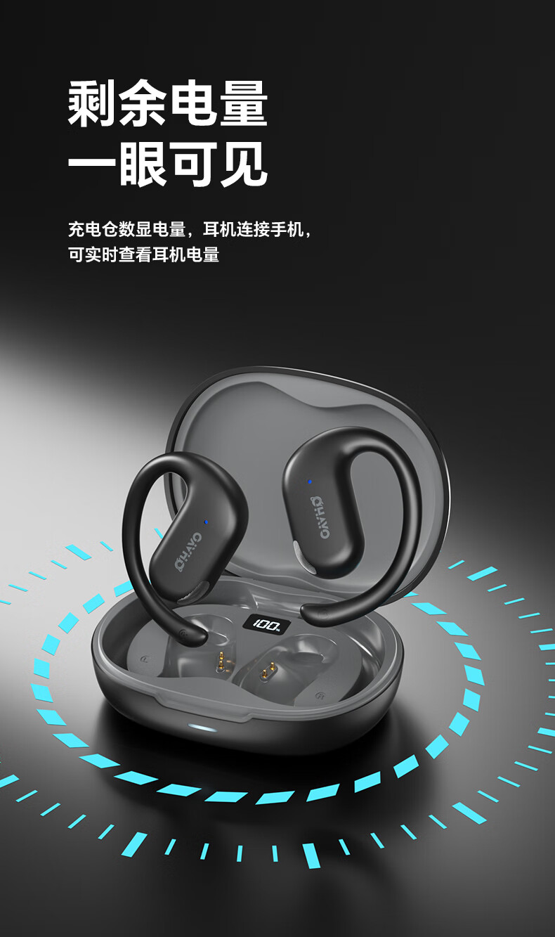 雷登 OHAYOT9蓝牙耳机挂耳式超长续航不入耳高音质专业骑行跑步运动耳机 双11 购物推荐 T9黑色【HIFI级音质】