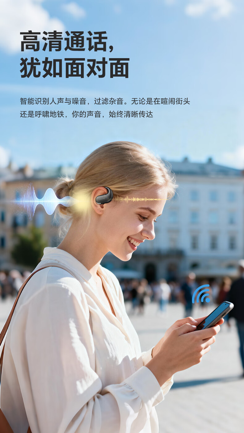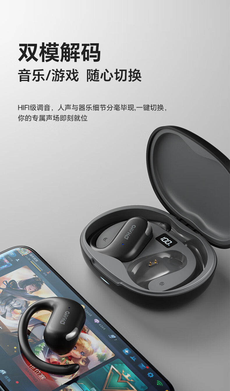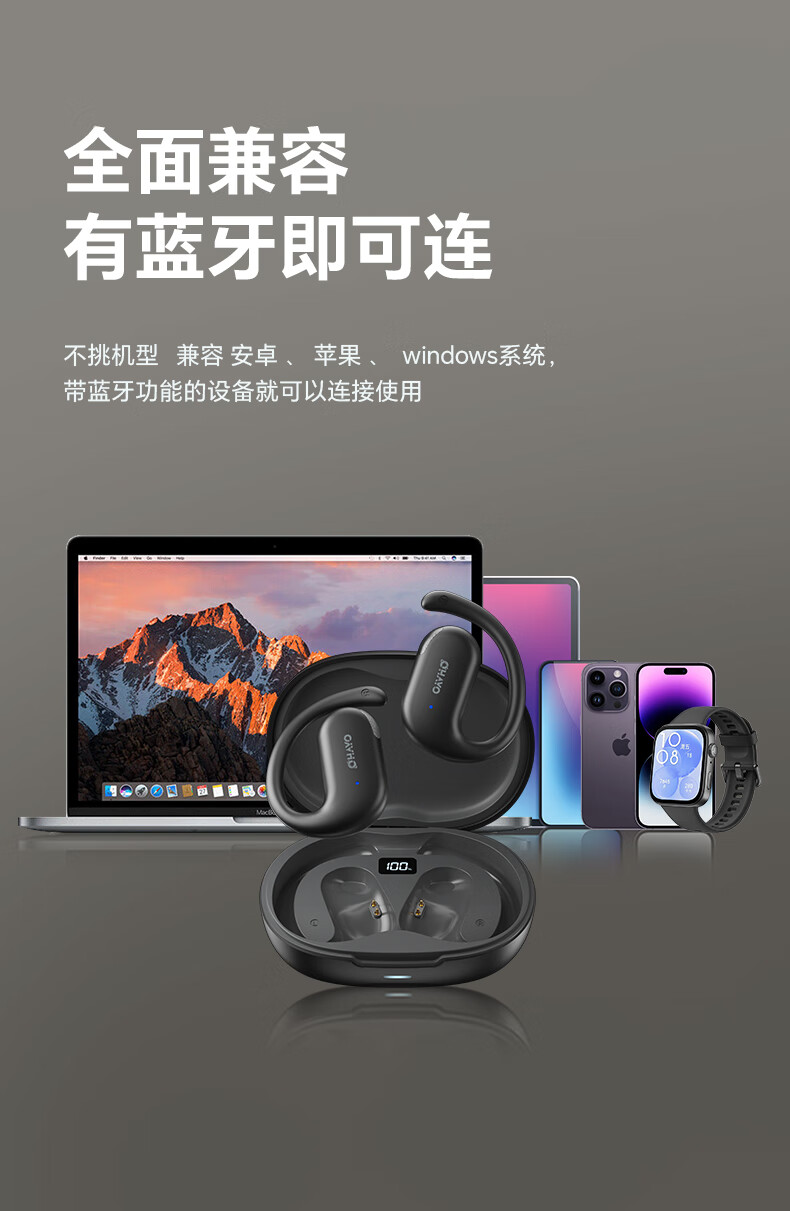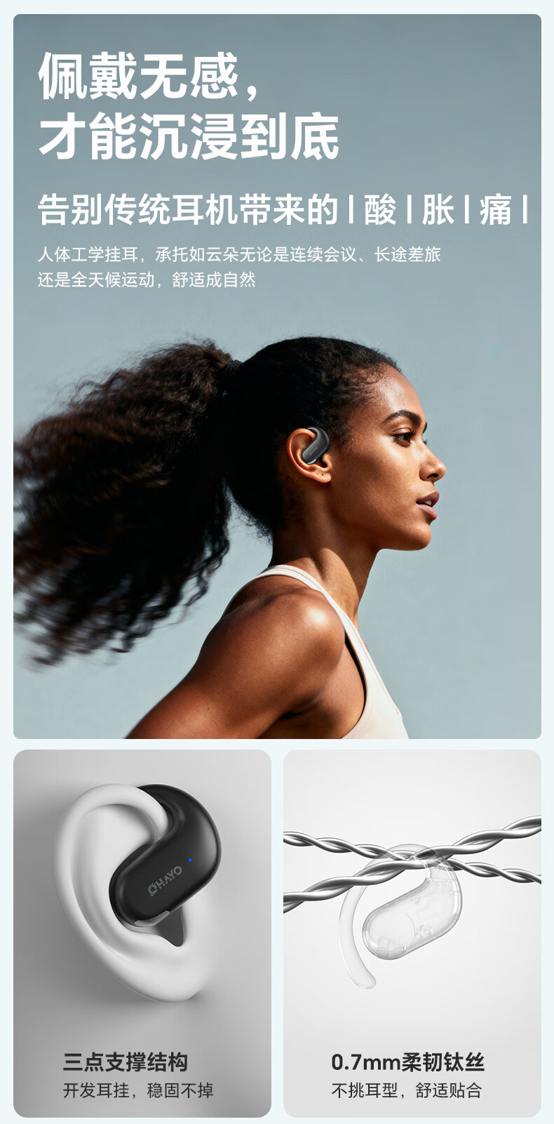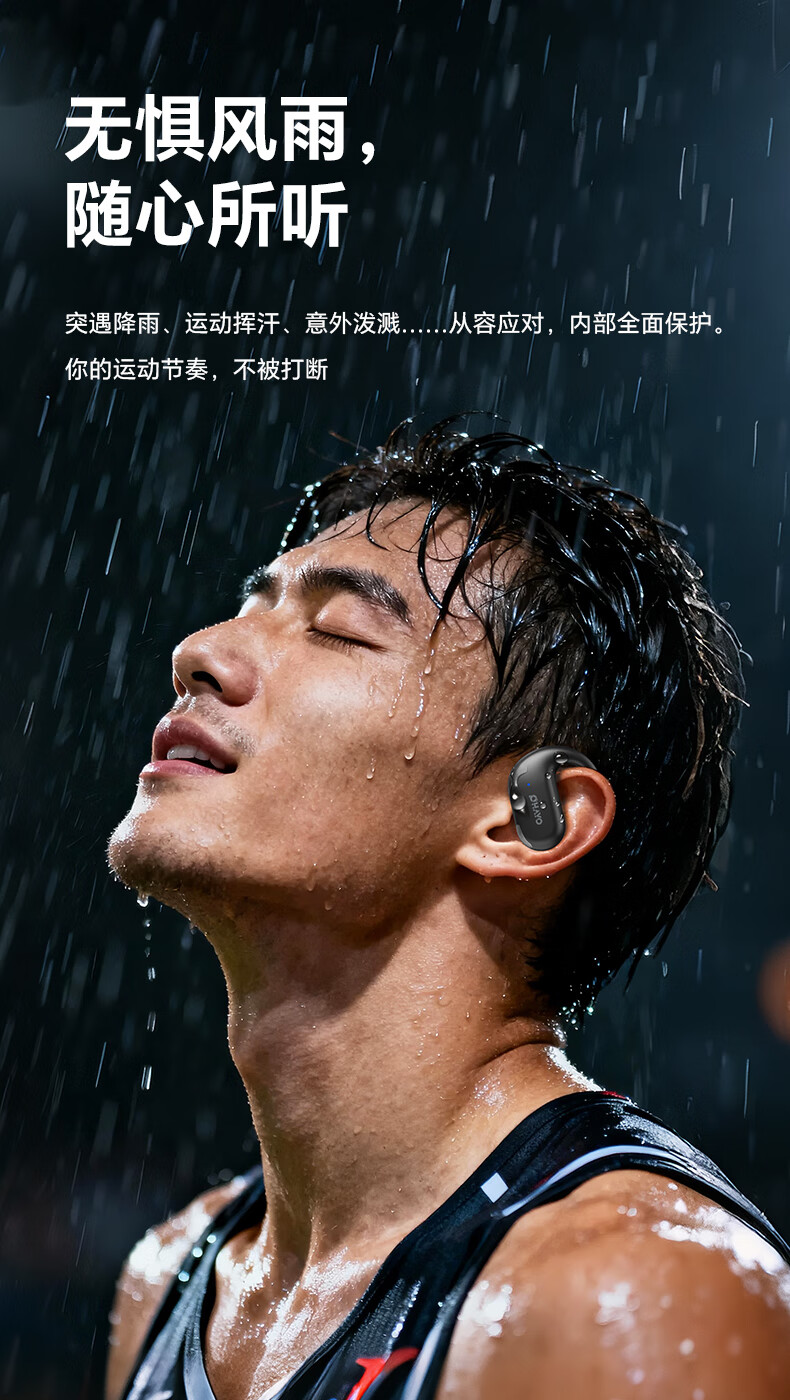 眷蜀JSOUL Mate Sport Pro AI智能翻译开放式不入耳挂耳主动降噪蓝牙耳机运动跑步健身舒适稳固长续航 玄武黑