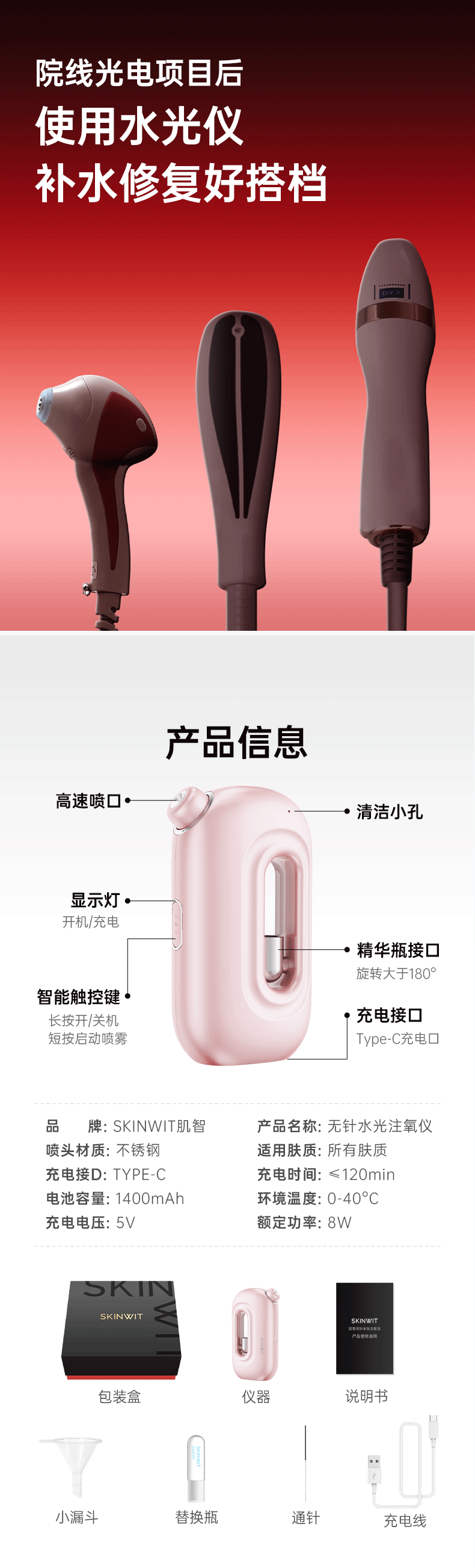 肌智 水光仪家用注氧仪美容仪器保湿抗皱舒缓紧致精华组合补水仪纳米喷雾仪脸部精华导入仪k老搭档 白色基础版+1盒胶原蛋白抗皱精华液