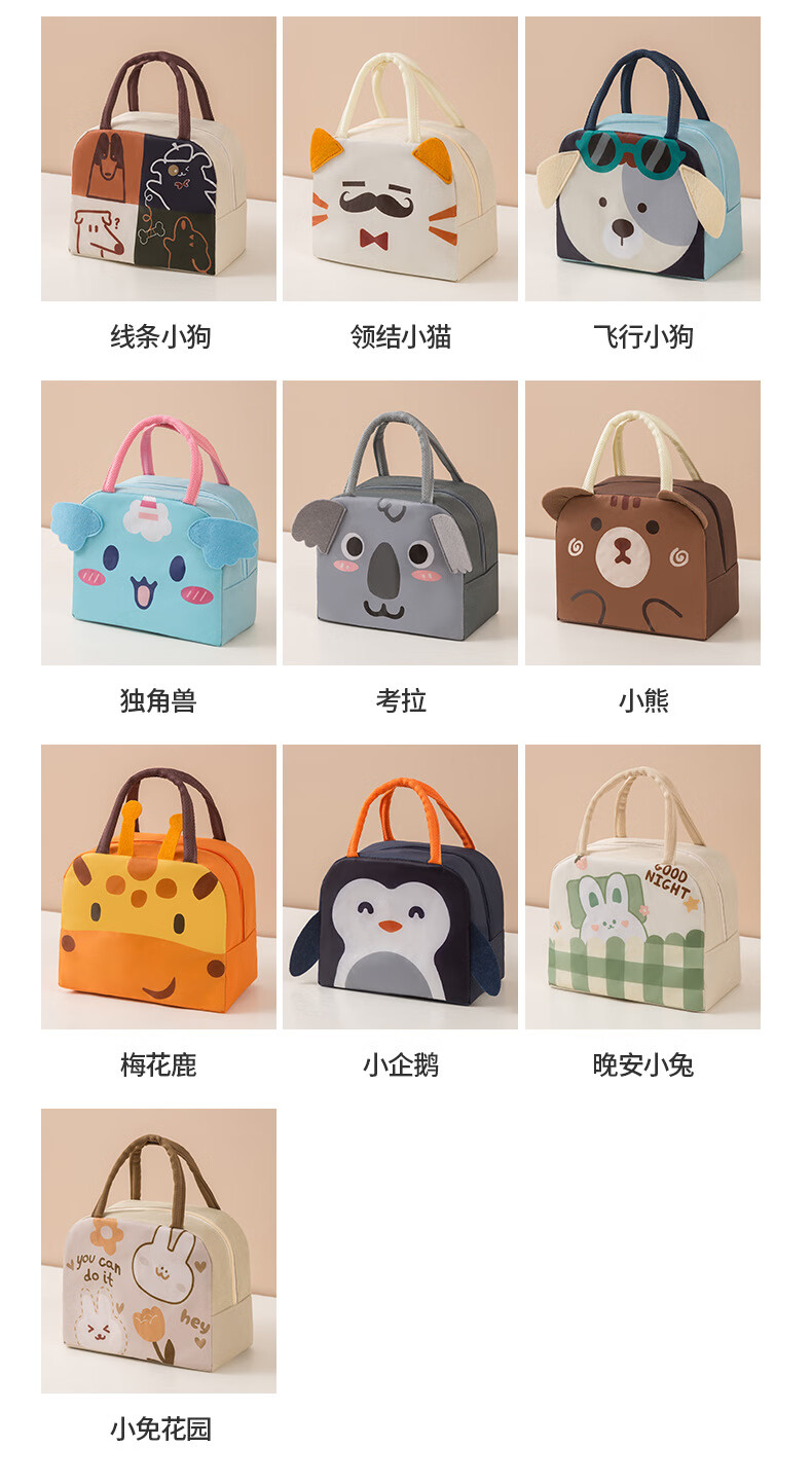 新款小清新饭盒袋加厚铝箔保温保冷卡通便当包学生手提保温便当包 卡通款灰色小考拉(1个)