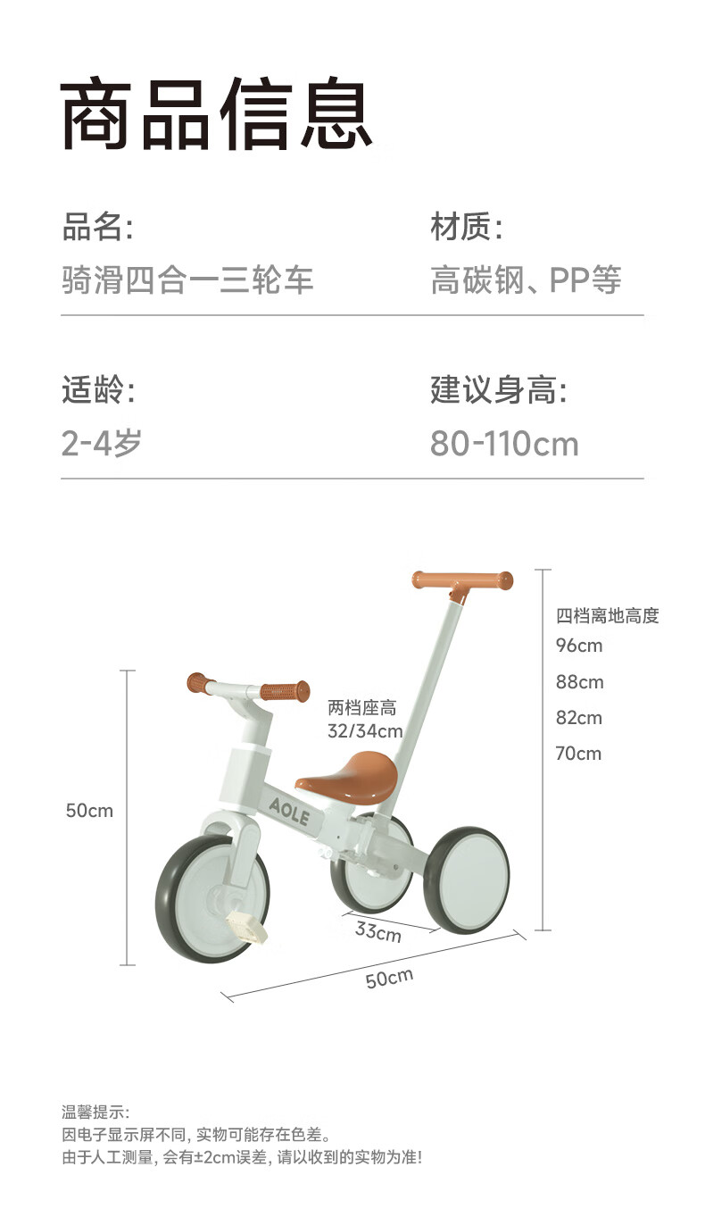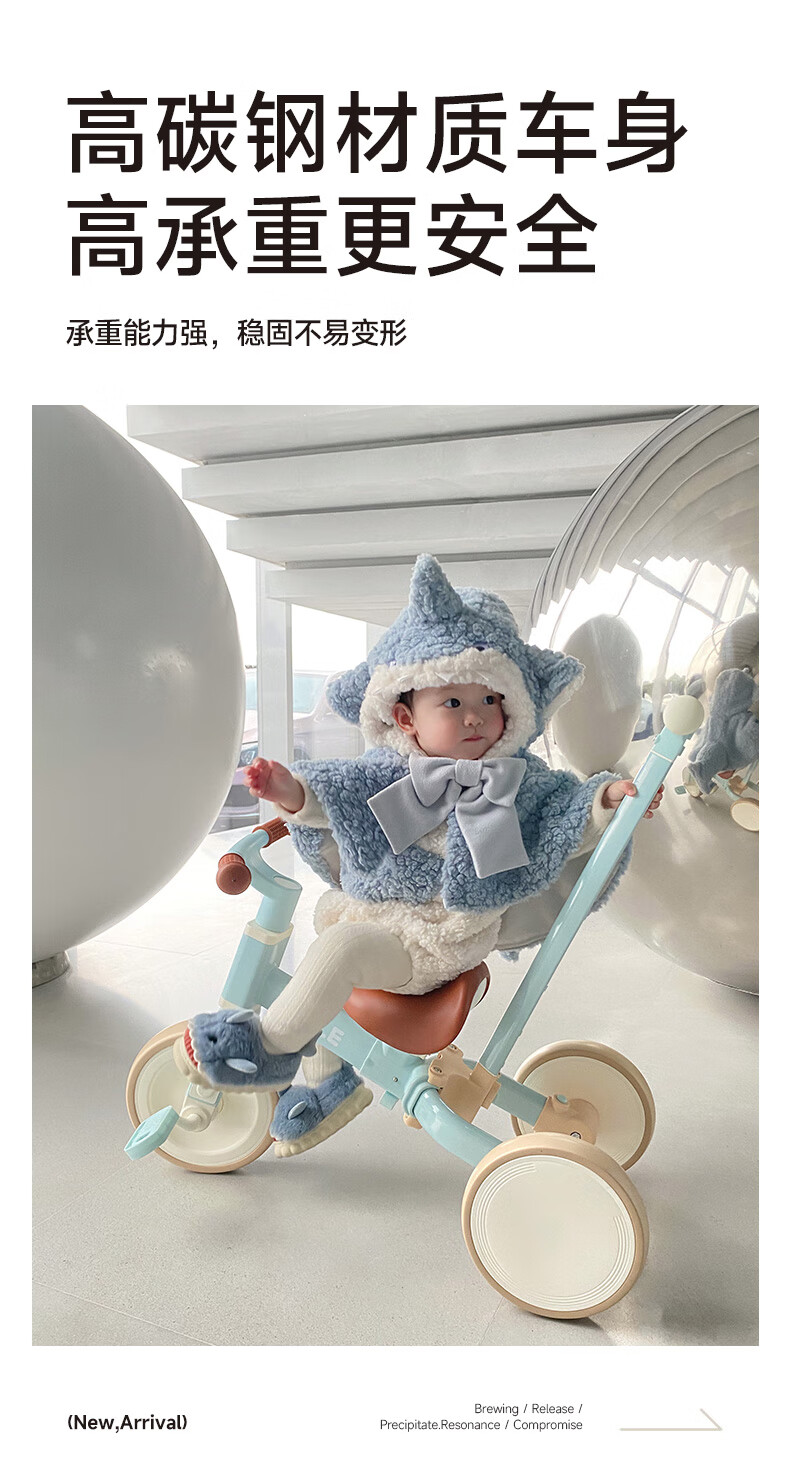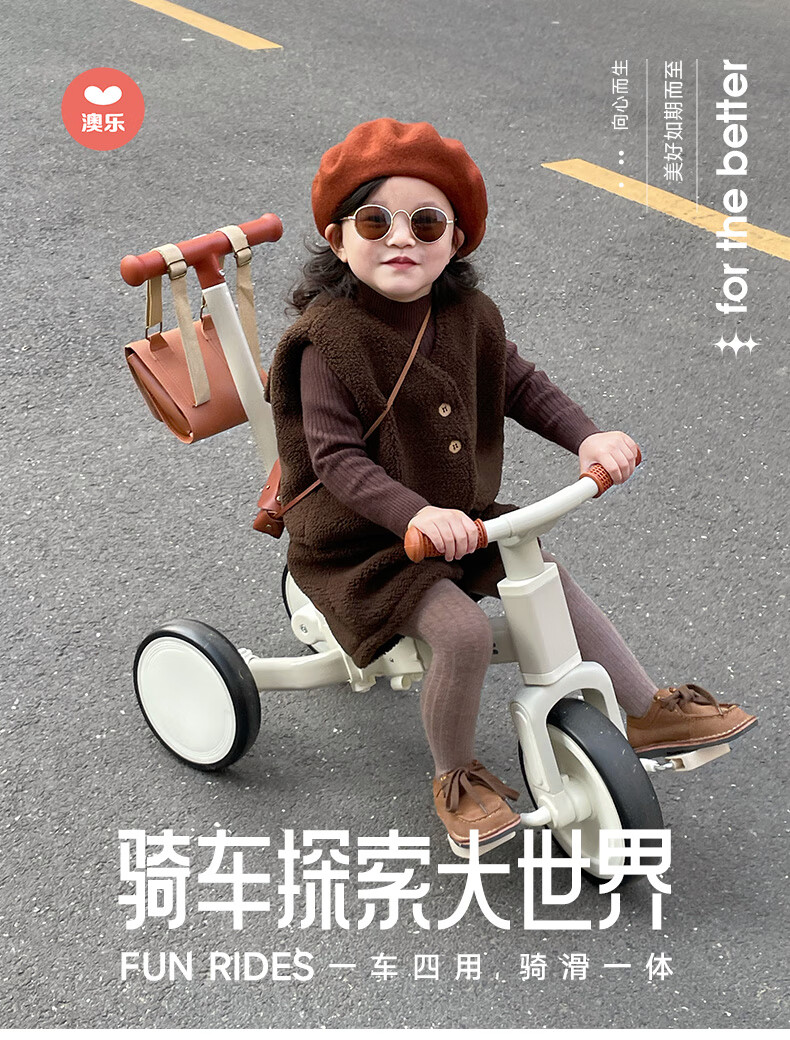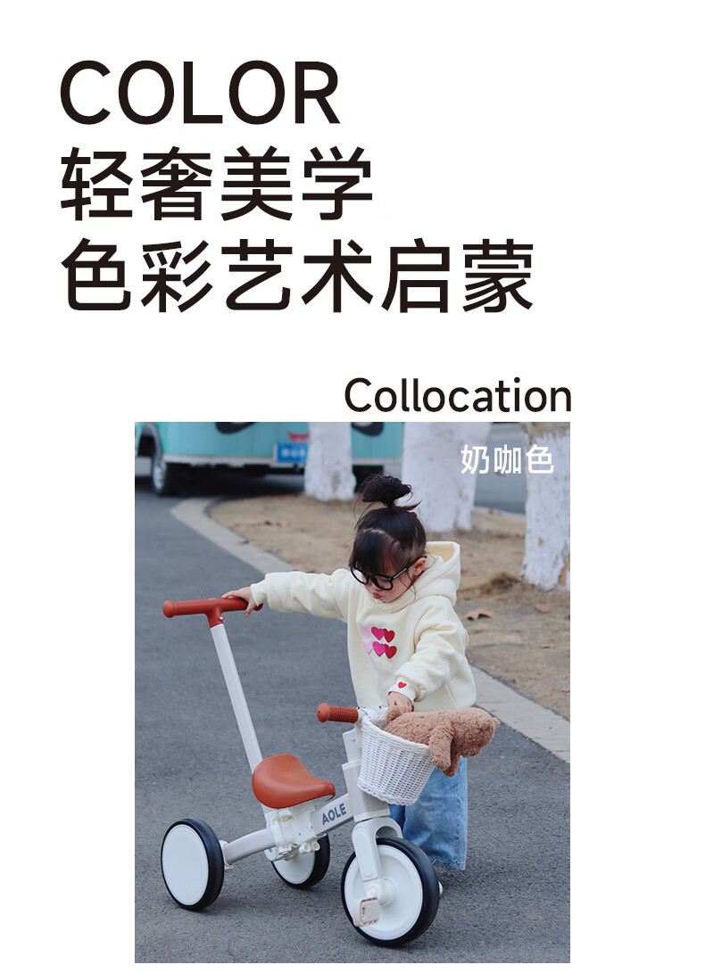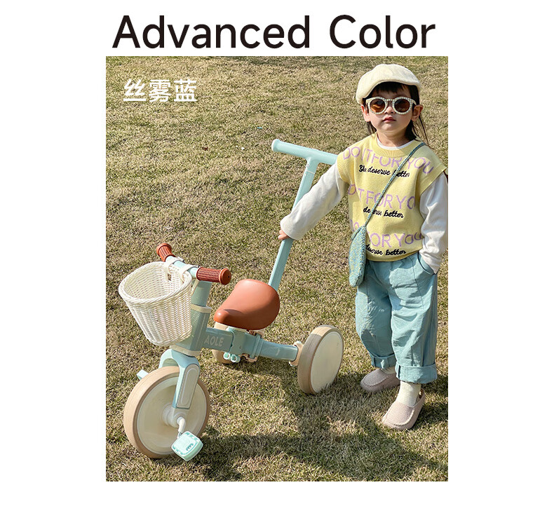 澳乐(AOLE-HW)儿童三轮车脚踏车变形1-3-6岁溜娃神器宝宝手推平衡车滑步自行车 三合一三轮车 【马卡龙蓝】