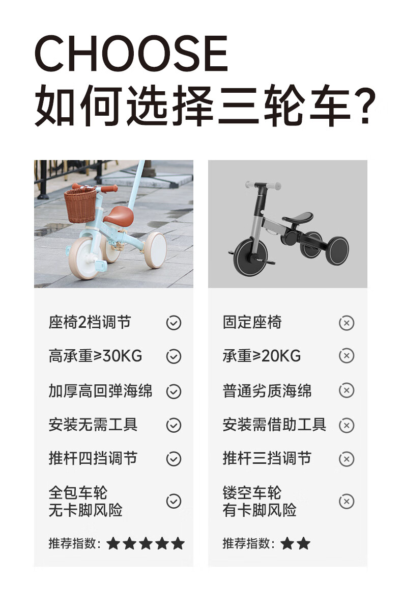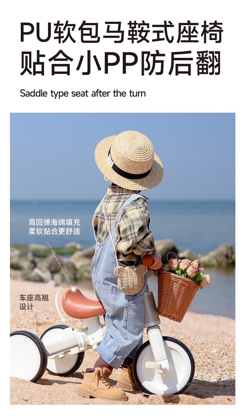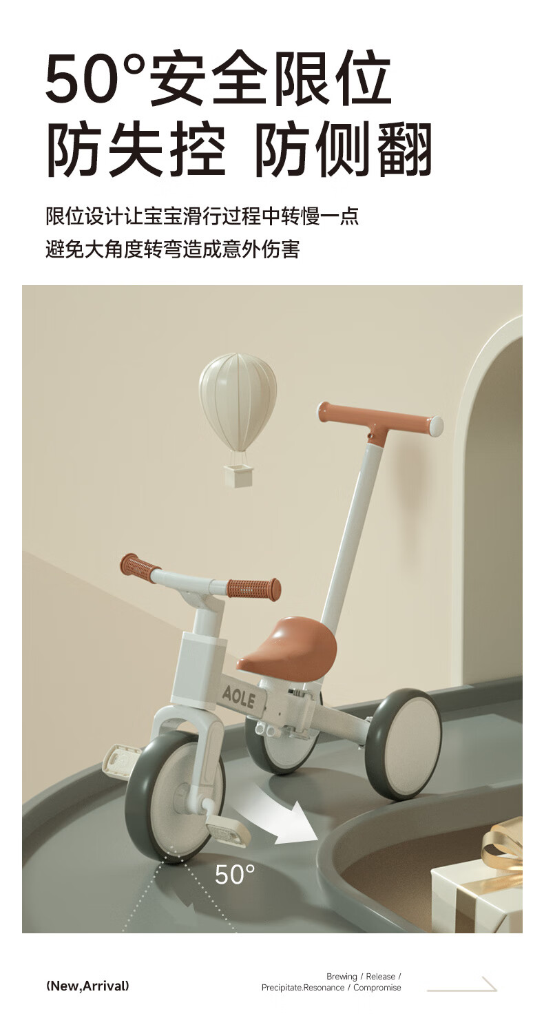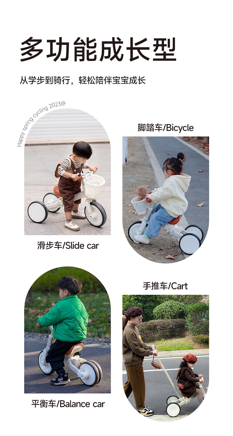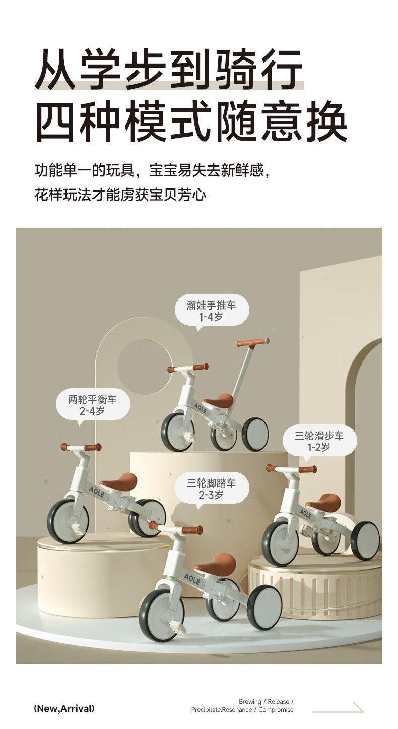 澳乐(AOLE-HW)儿童三轮车脚踏车变形1-3-6岁溜娃神器宝宝手推平衡车滑步自行车 三合一三轮车 【马卡龙蓝】