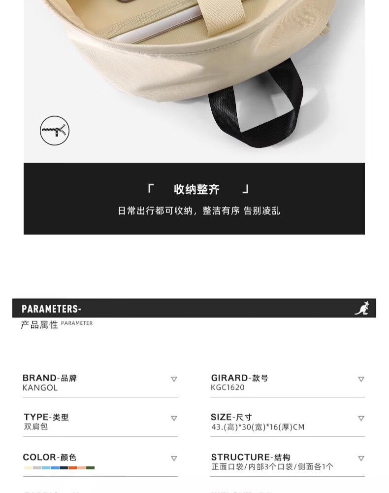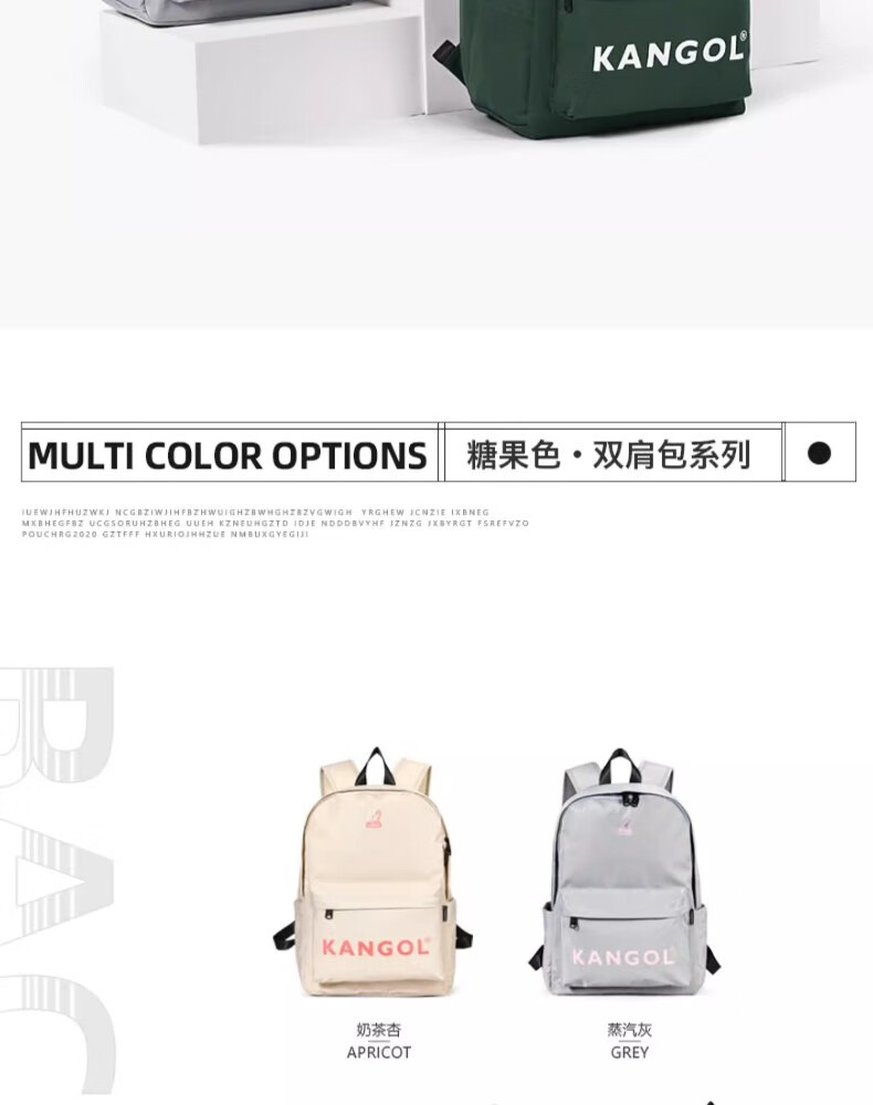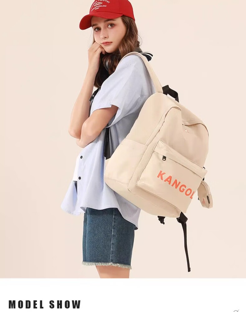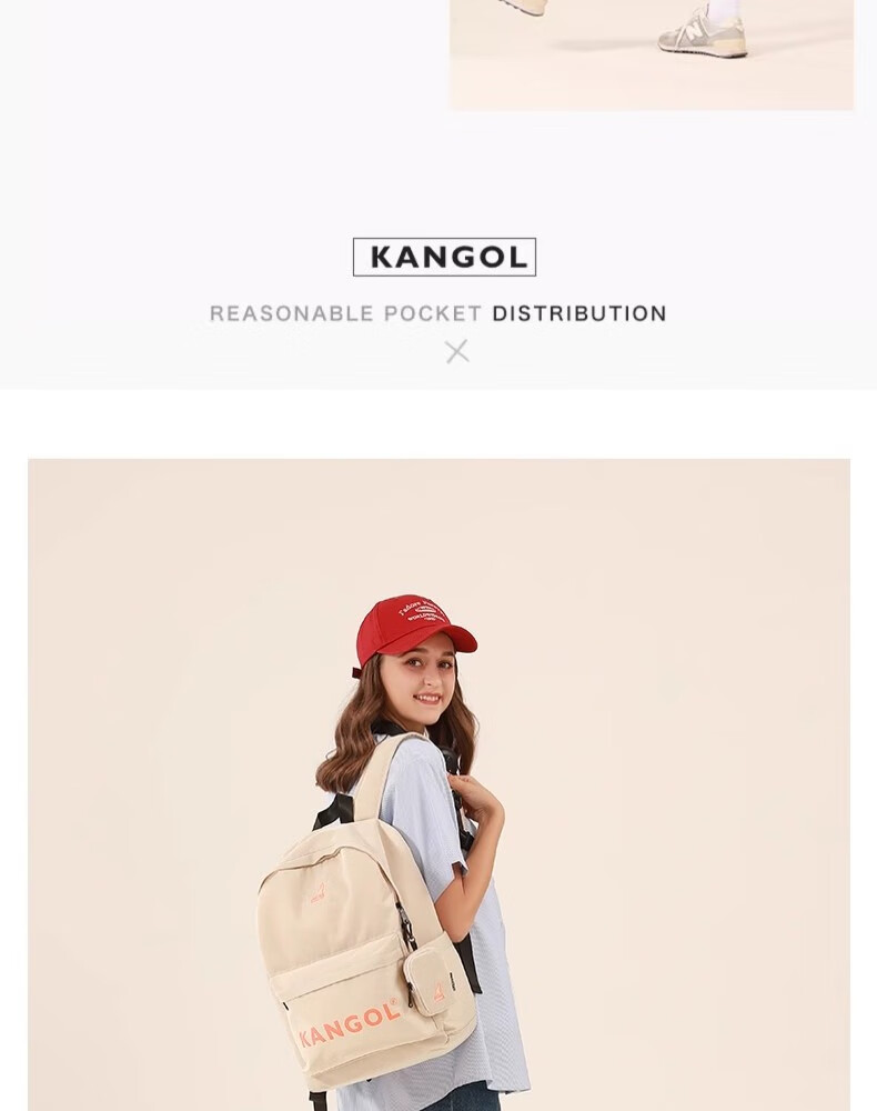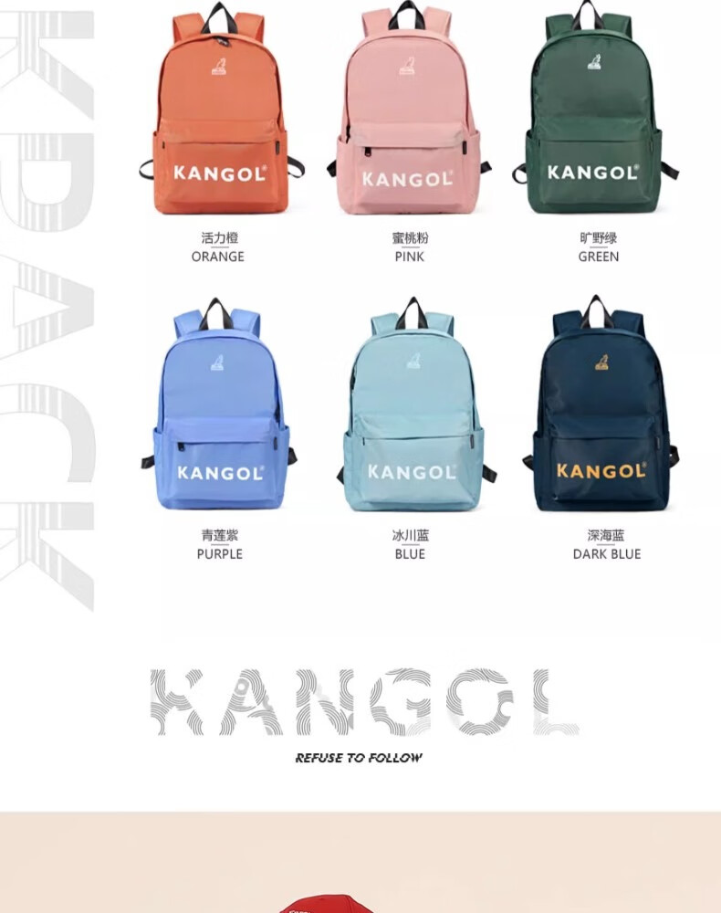 KANGOL官方简约双肩包女大学生通勤书包时尚大容量休闲运动旅行潮流背包 青莲紫