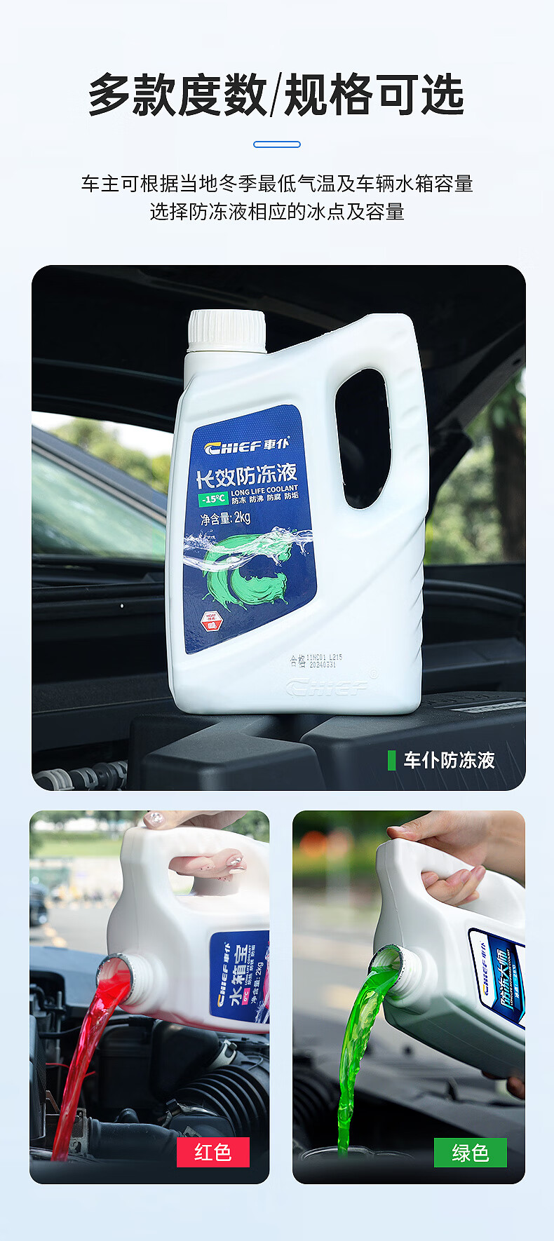 车仆汽车用品防冻液发动机冷却液水箱宝红色绿色冷冻液四季通用宝马 2kg -25℃ 红色 长效防冻液