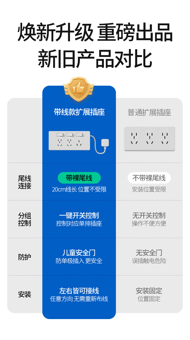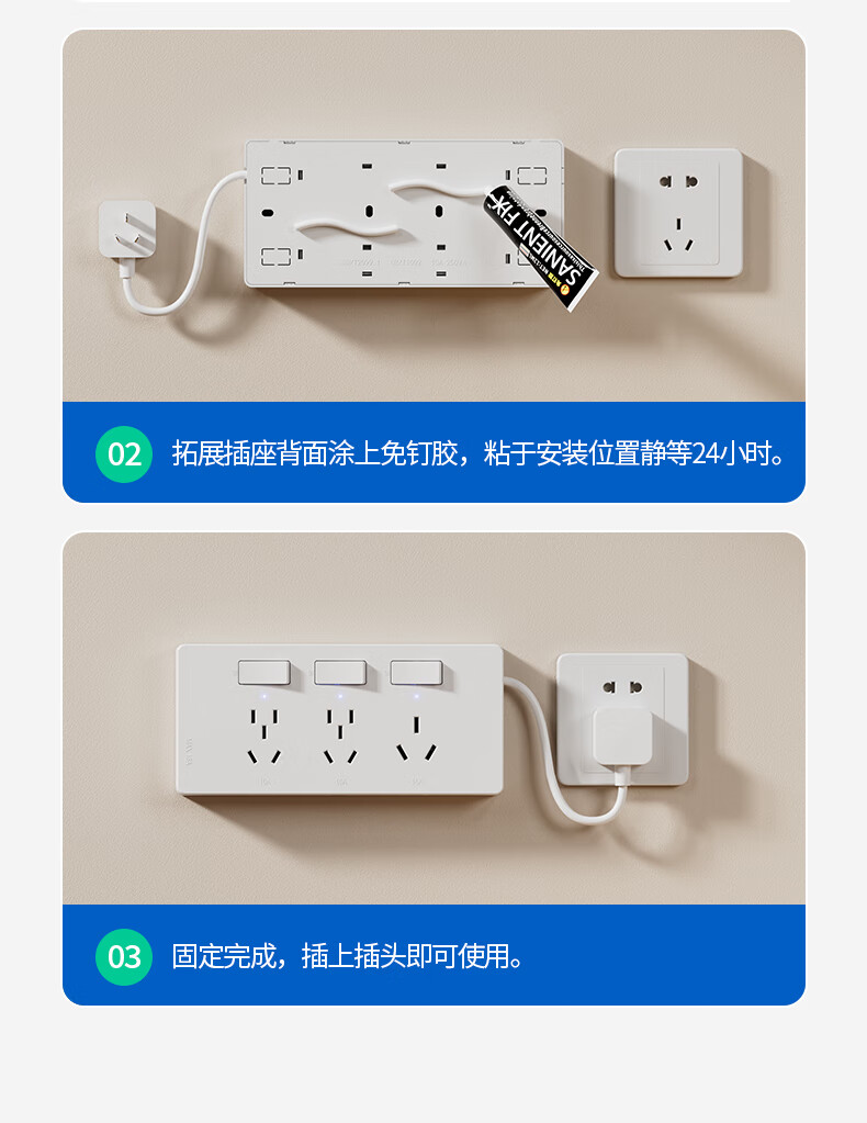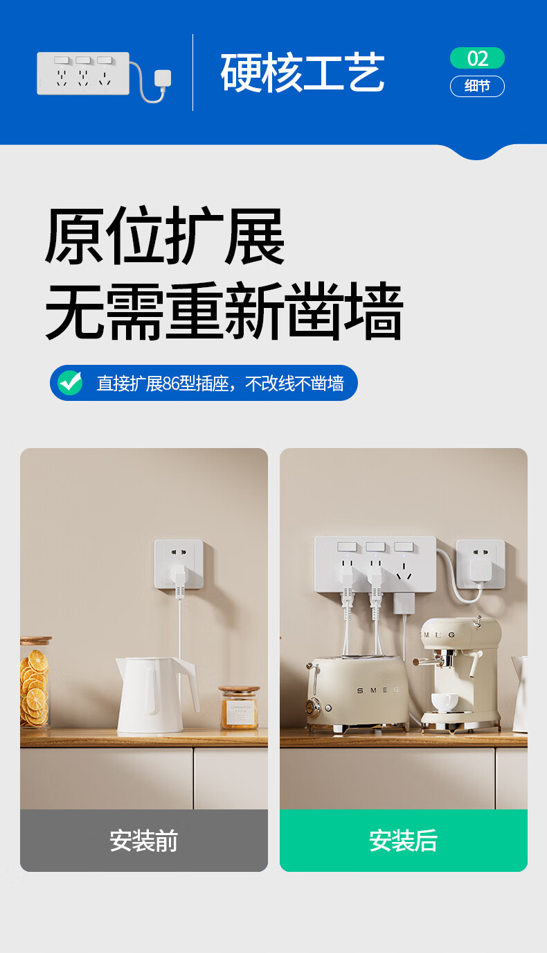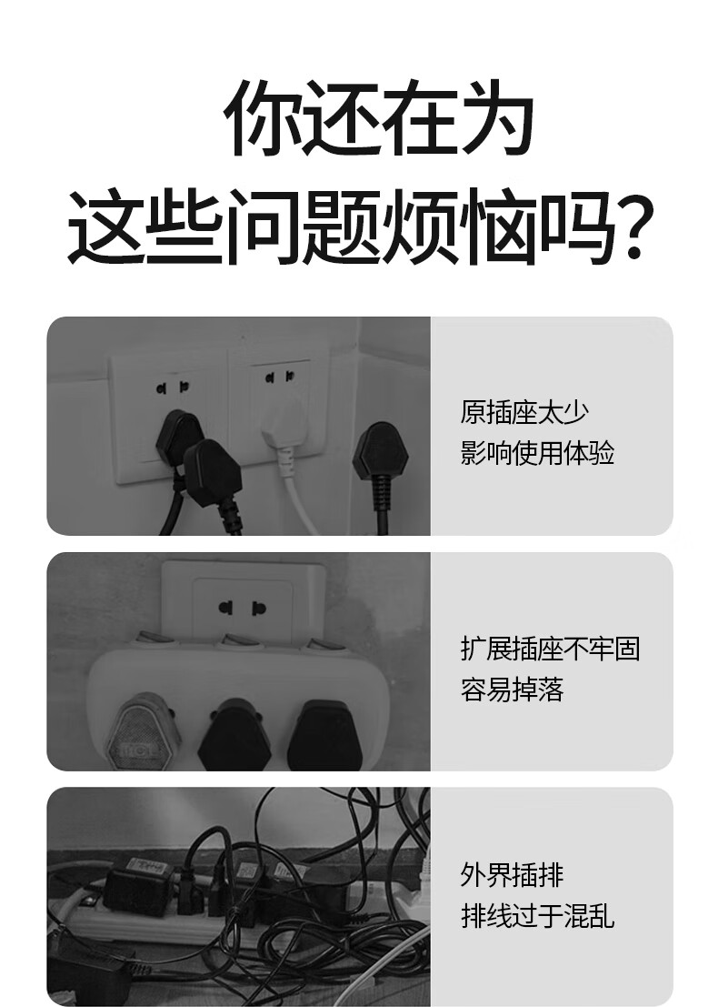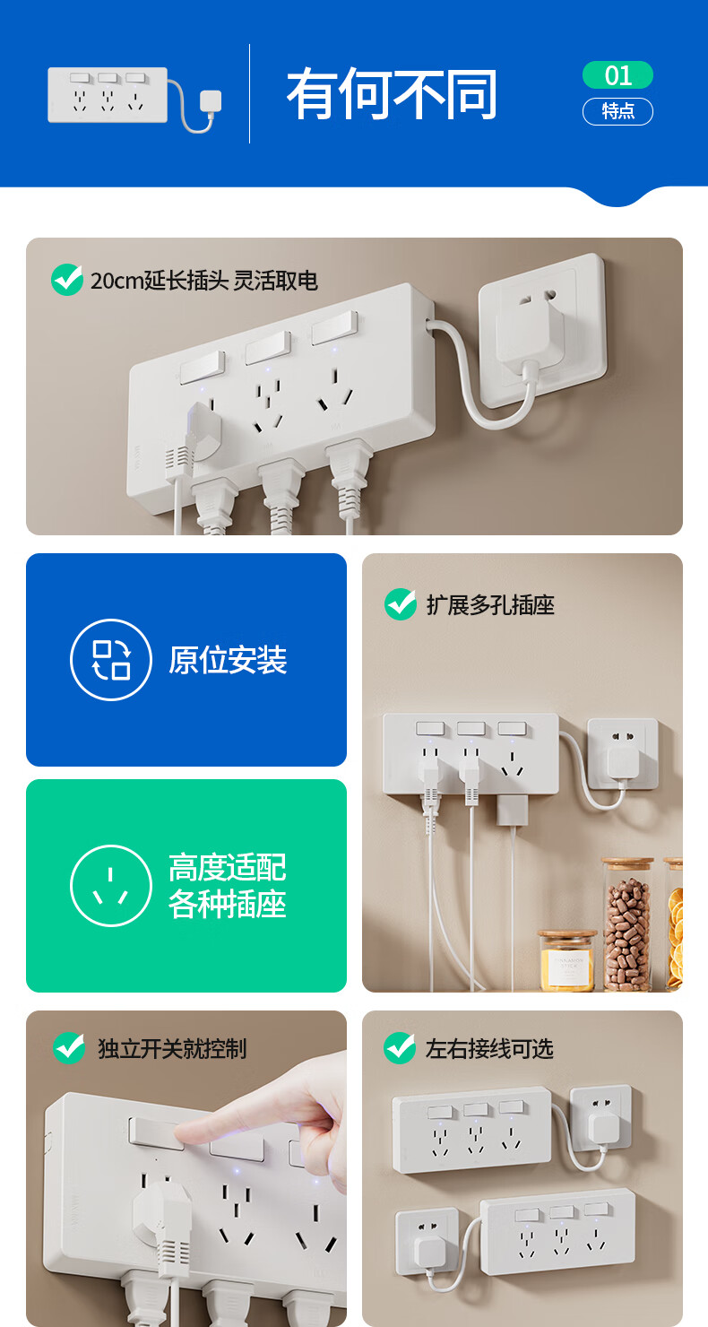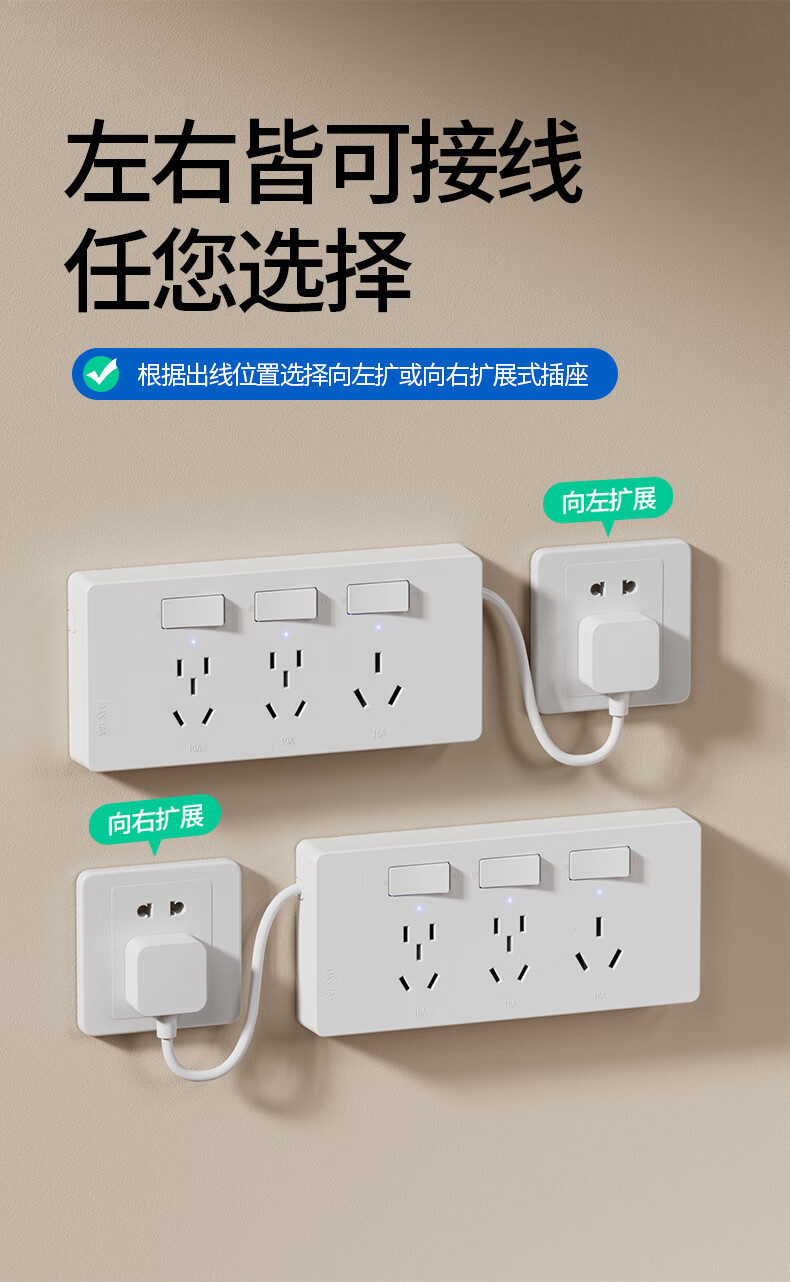 国际电工扩展插座家用16A延伸多功能墙壁免接线拓展带电源线插头插排 带线向左扩展【10A】白 插座