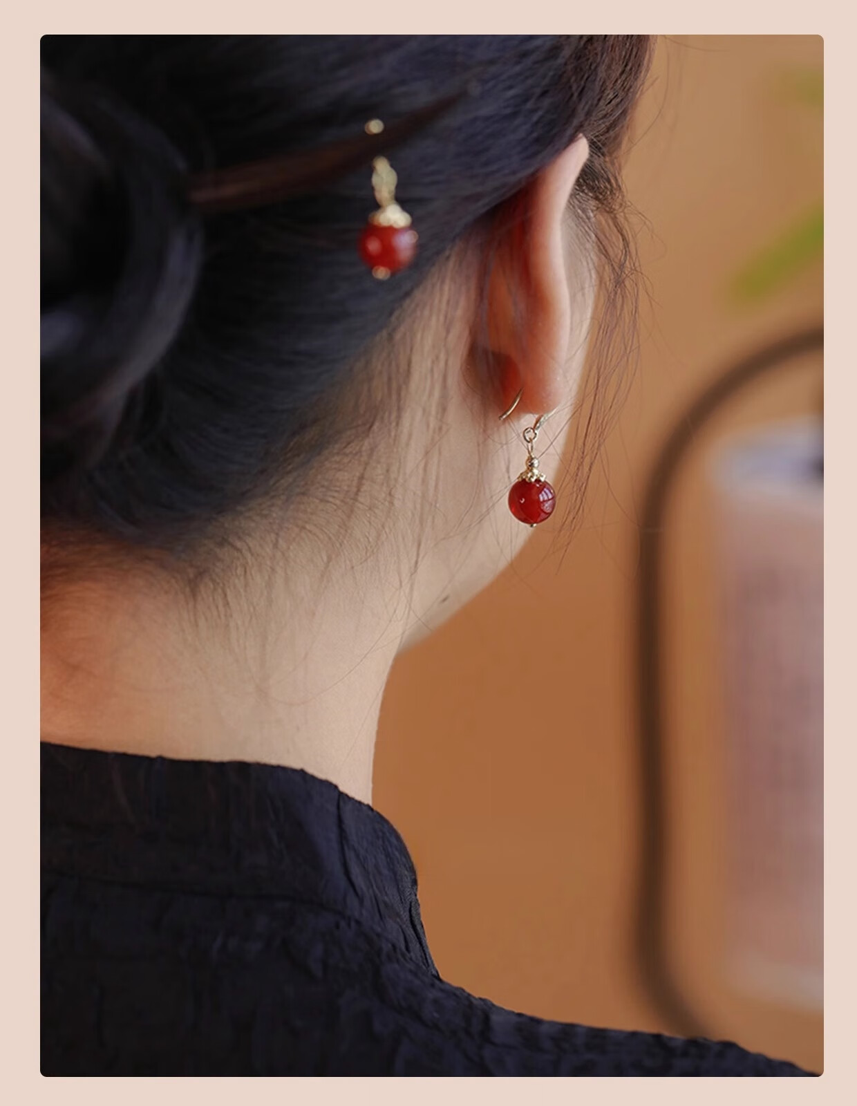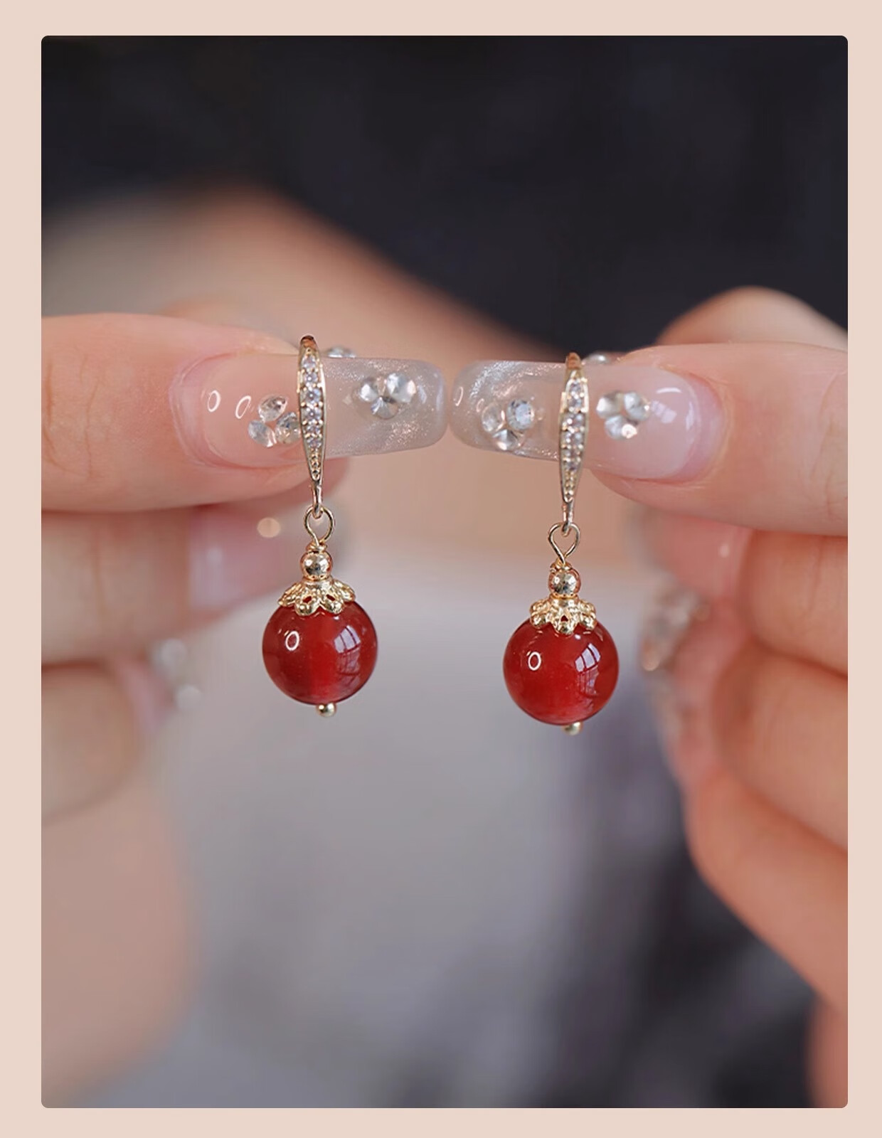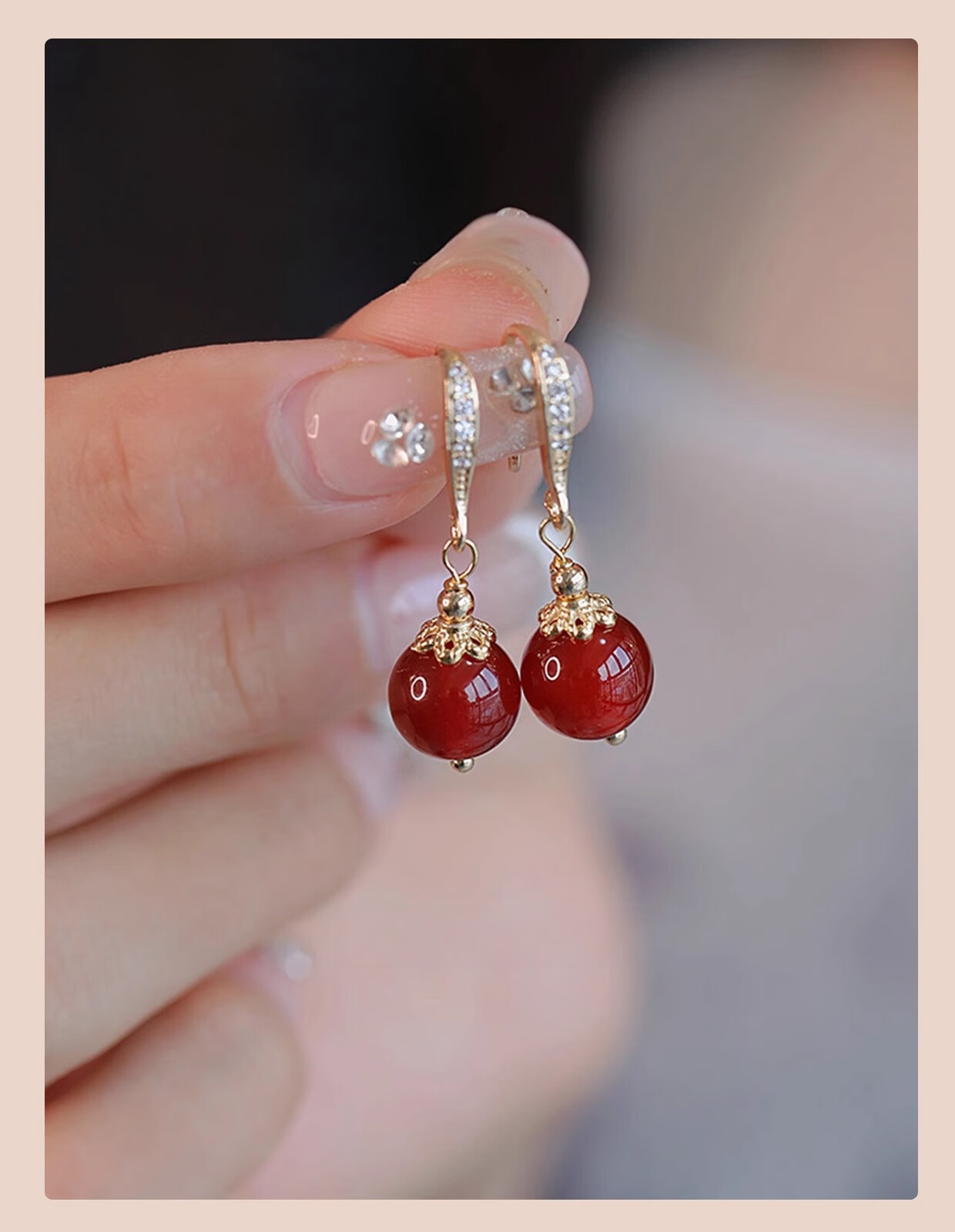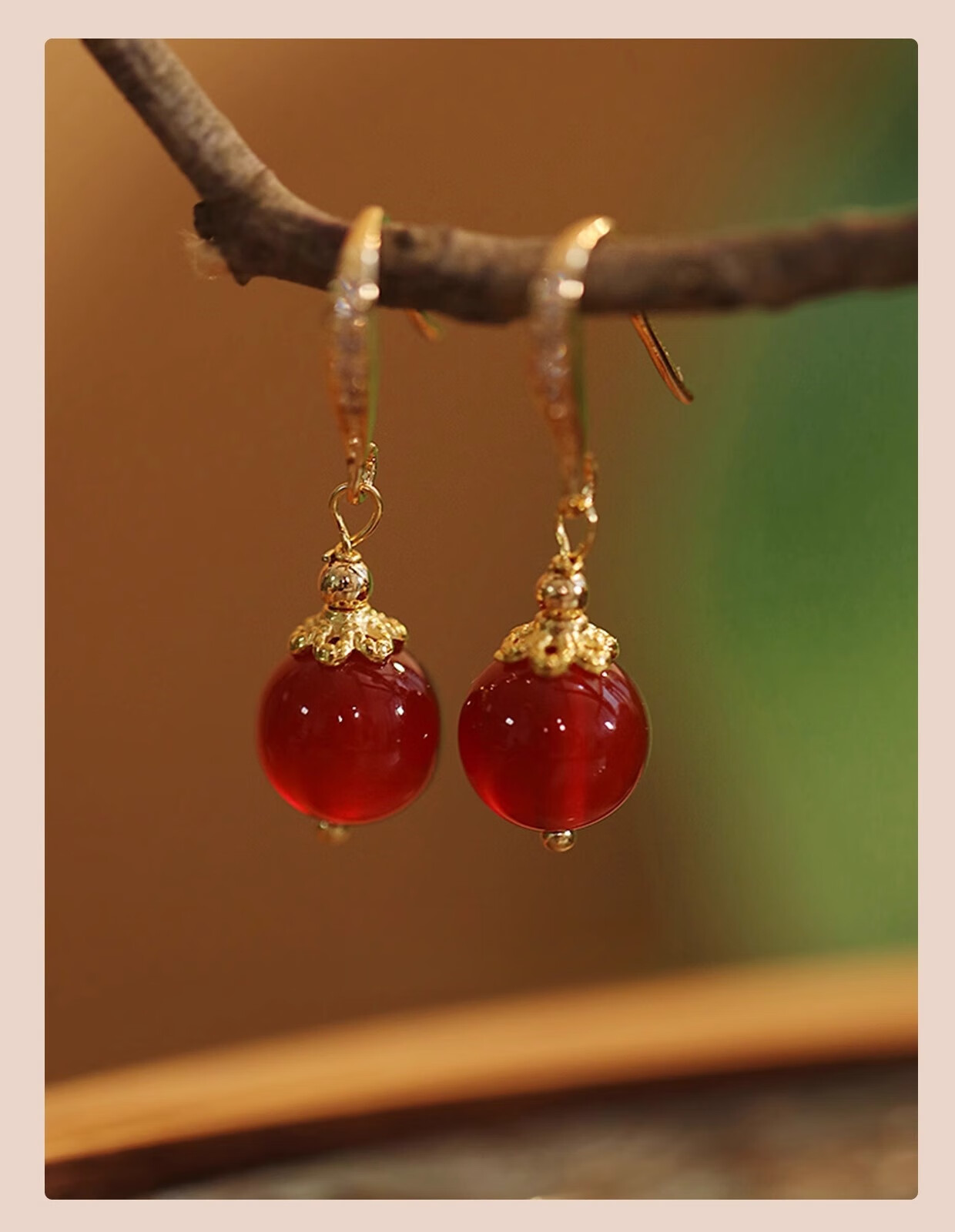 百钰福红色玛瑙耳环女轻奢复古气质耳坠高级感耳饰情人节礼物送女友老婆 红玛瑙耳环 精美礼盒