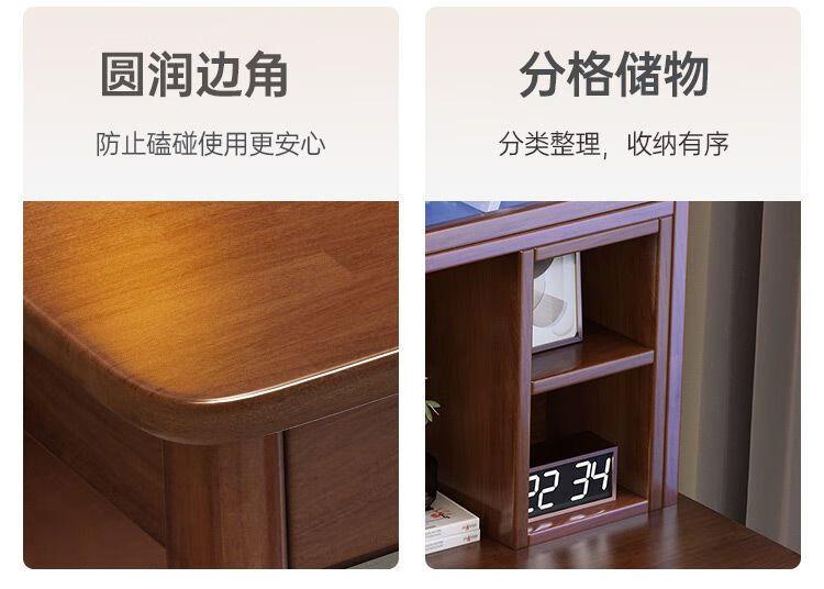 格原素2025新款实木儿童学习桌简易桌子卧室女生书桌学生写字桌可升降带 胡桃色单桌+升降椅 实木可升降调 80x60x118cm