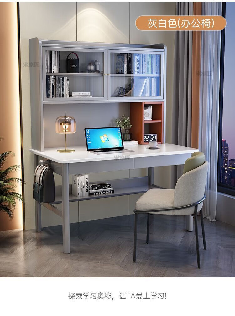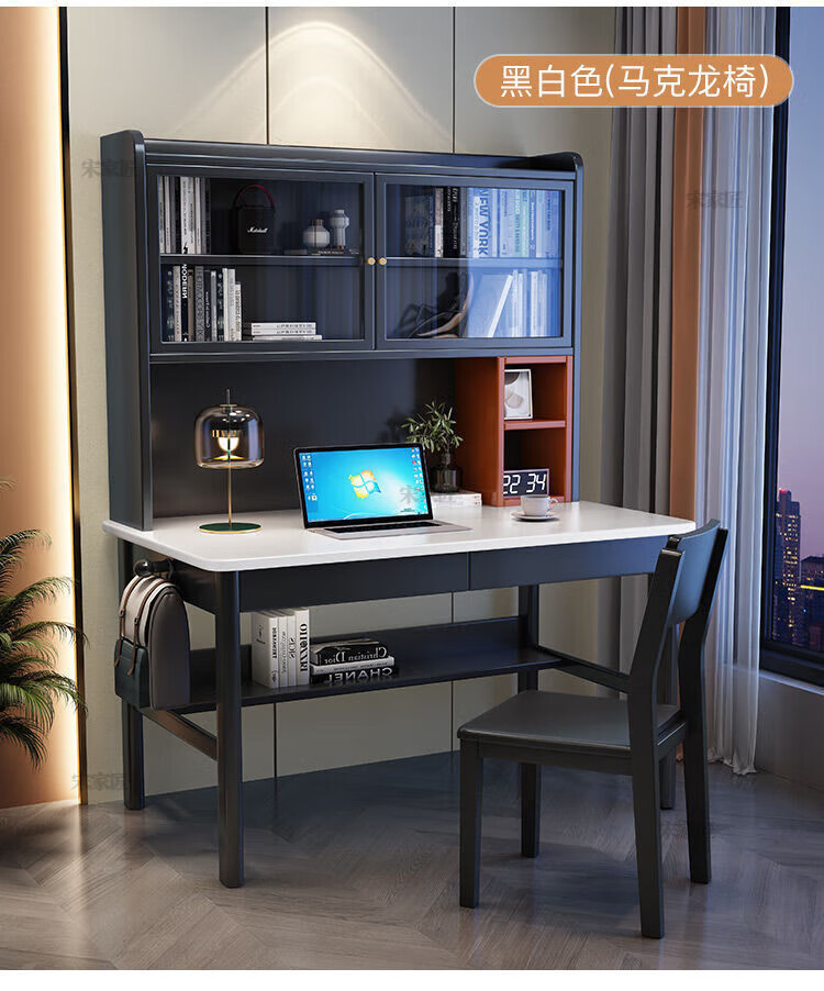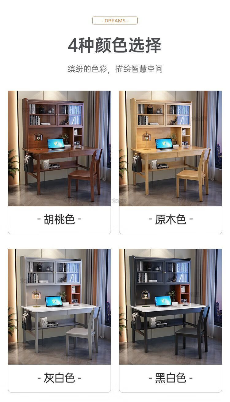 米聆2025新款家用书桌学生台式电脑桌轻奢现代书柜书桌一体桌双人轻奢 C款_长205深60高220cm