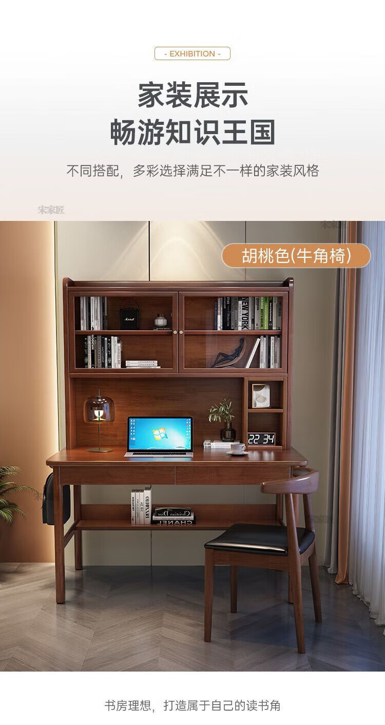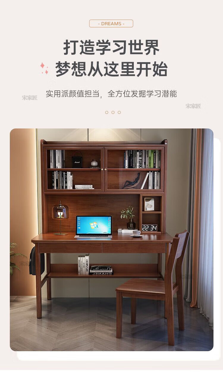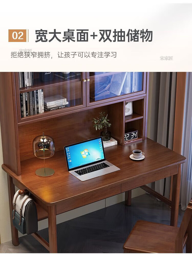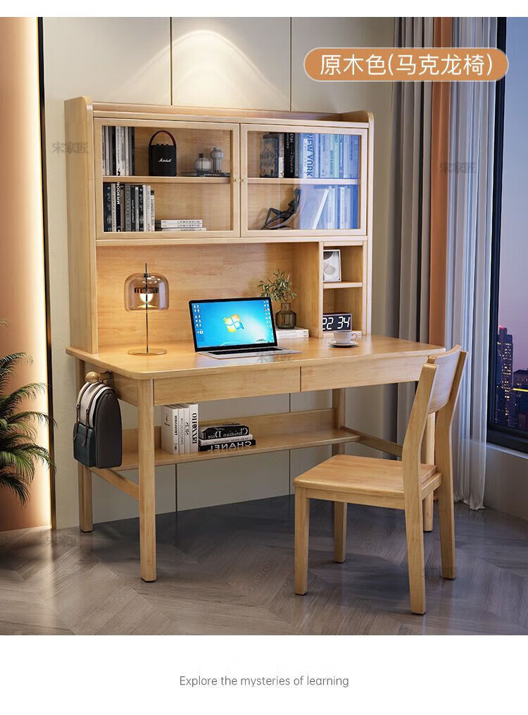 宋家匠2025新款实木书桌书柜组合学生学习桌办公写字桌家用卧室台式电脑 原木色 1米单书桌