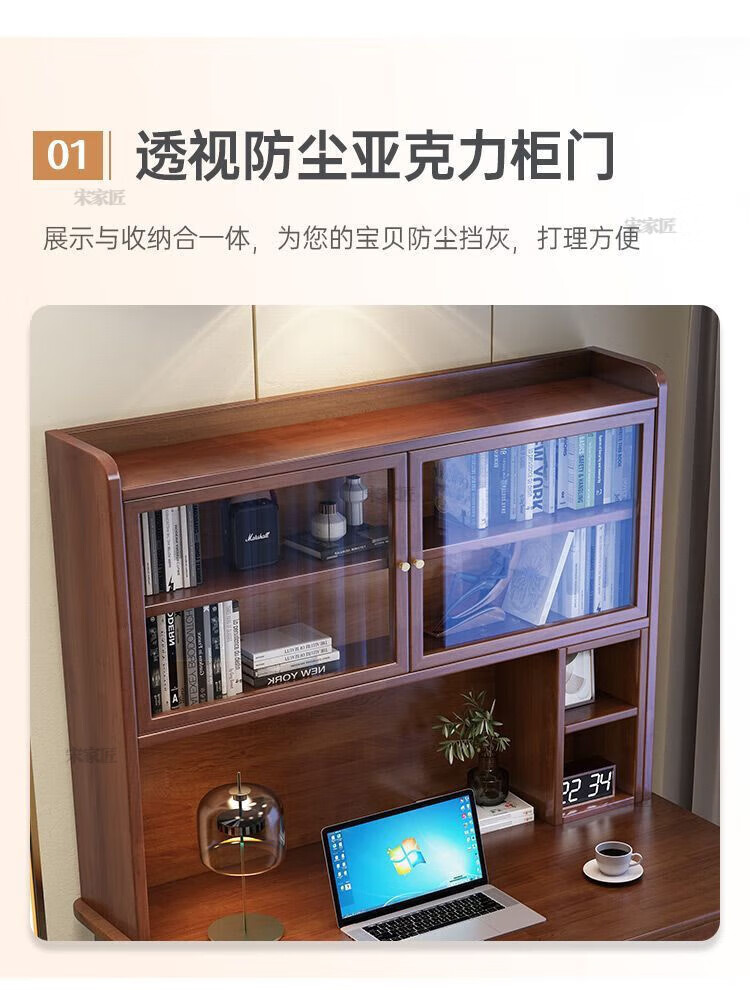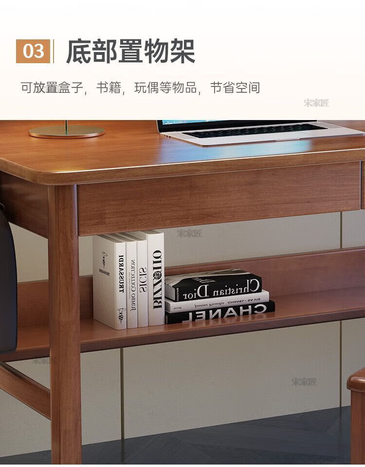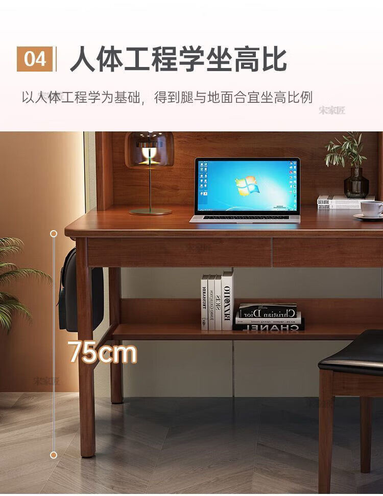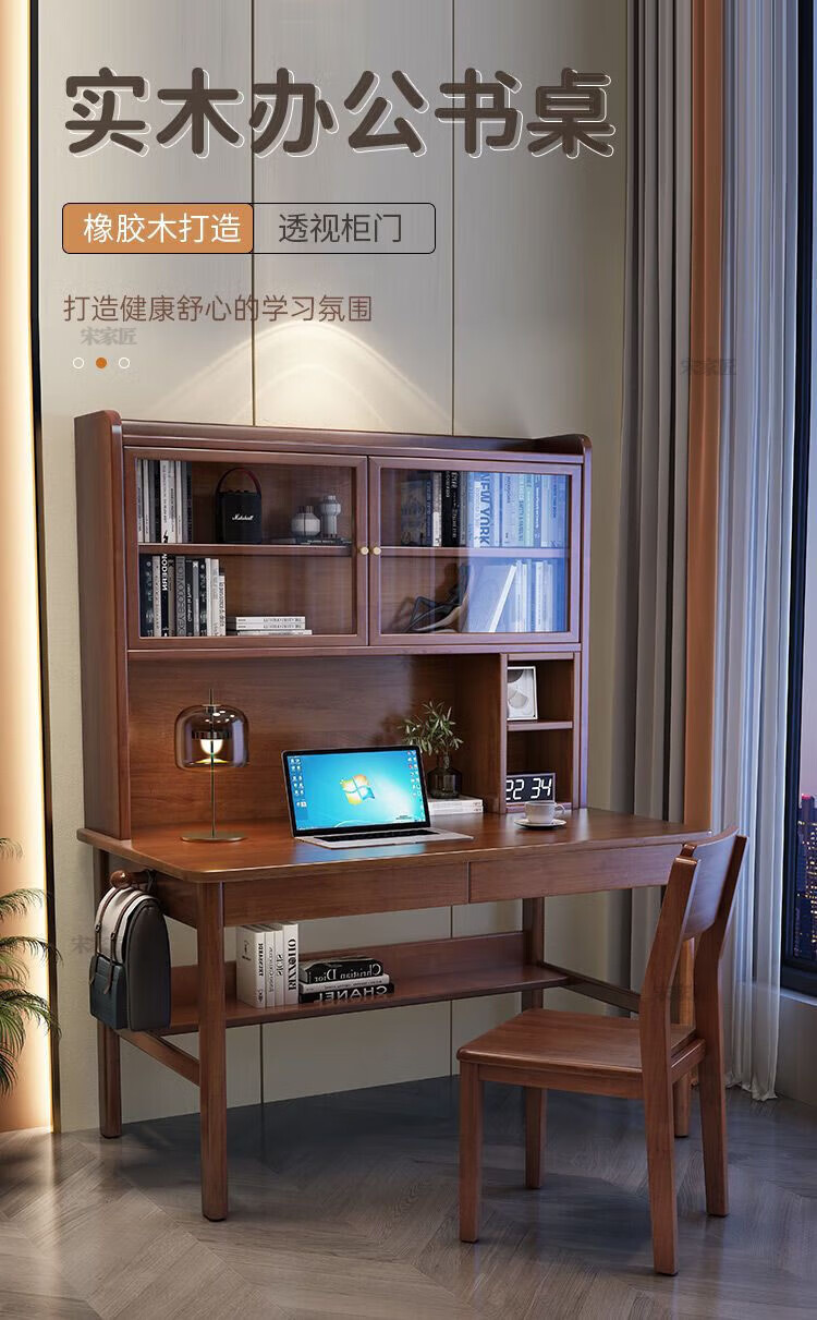 宋家匠2025新款实木书桌书柜组合学生学习桌办公写字桌家用卧室台式电脑 原木色 1米单书桌