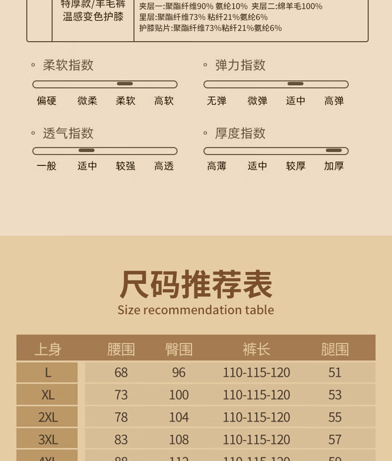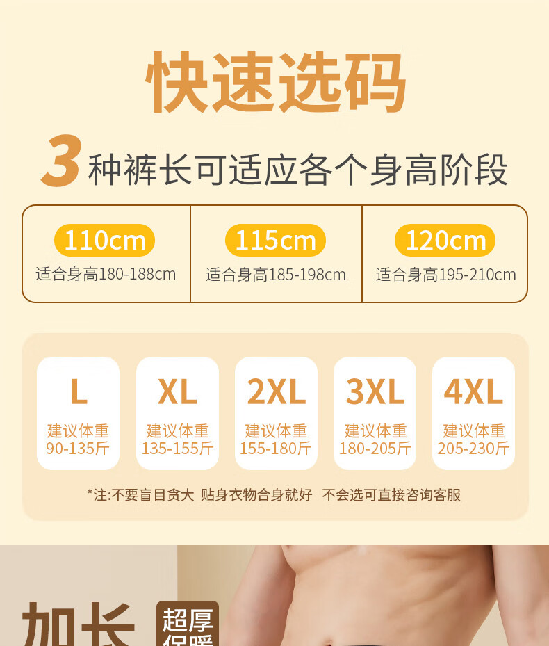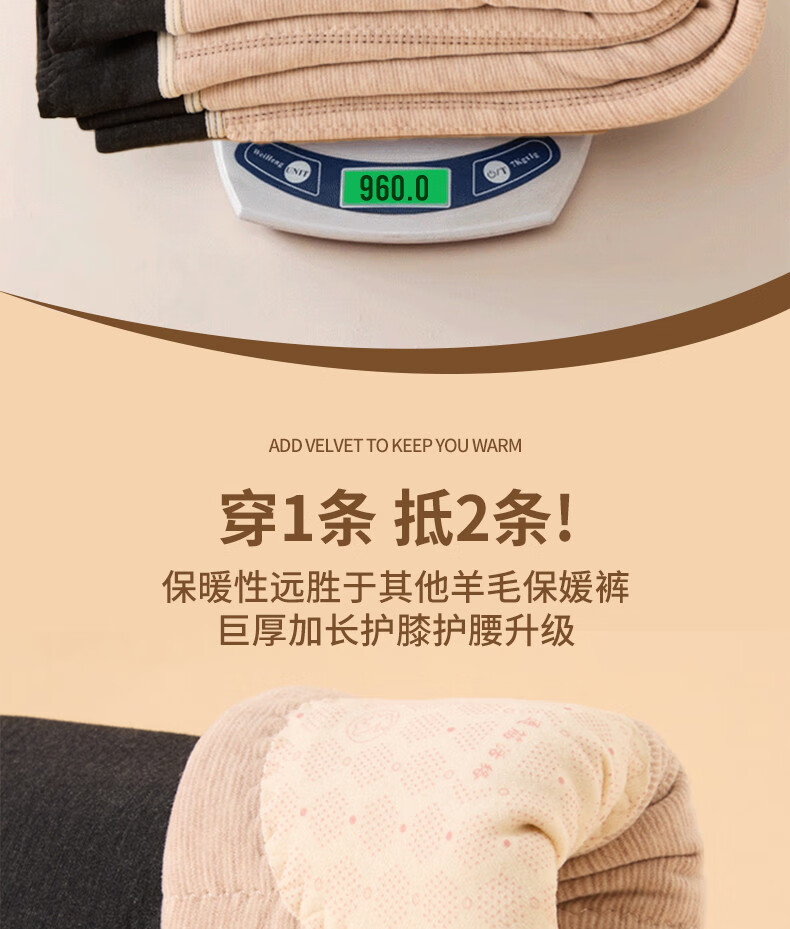 JEEP SPIRIT加长版棉裤男士高个子青少年大码加绒加厚款羊毛保暖裤东北秋冬季 薄绒款/加长110cm L (100-135斤)