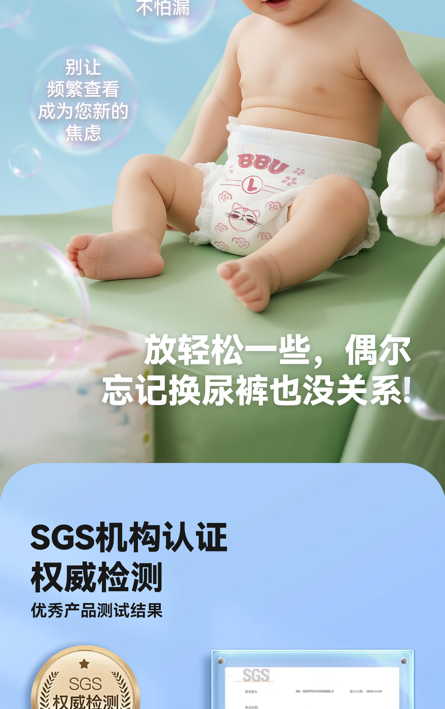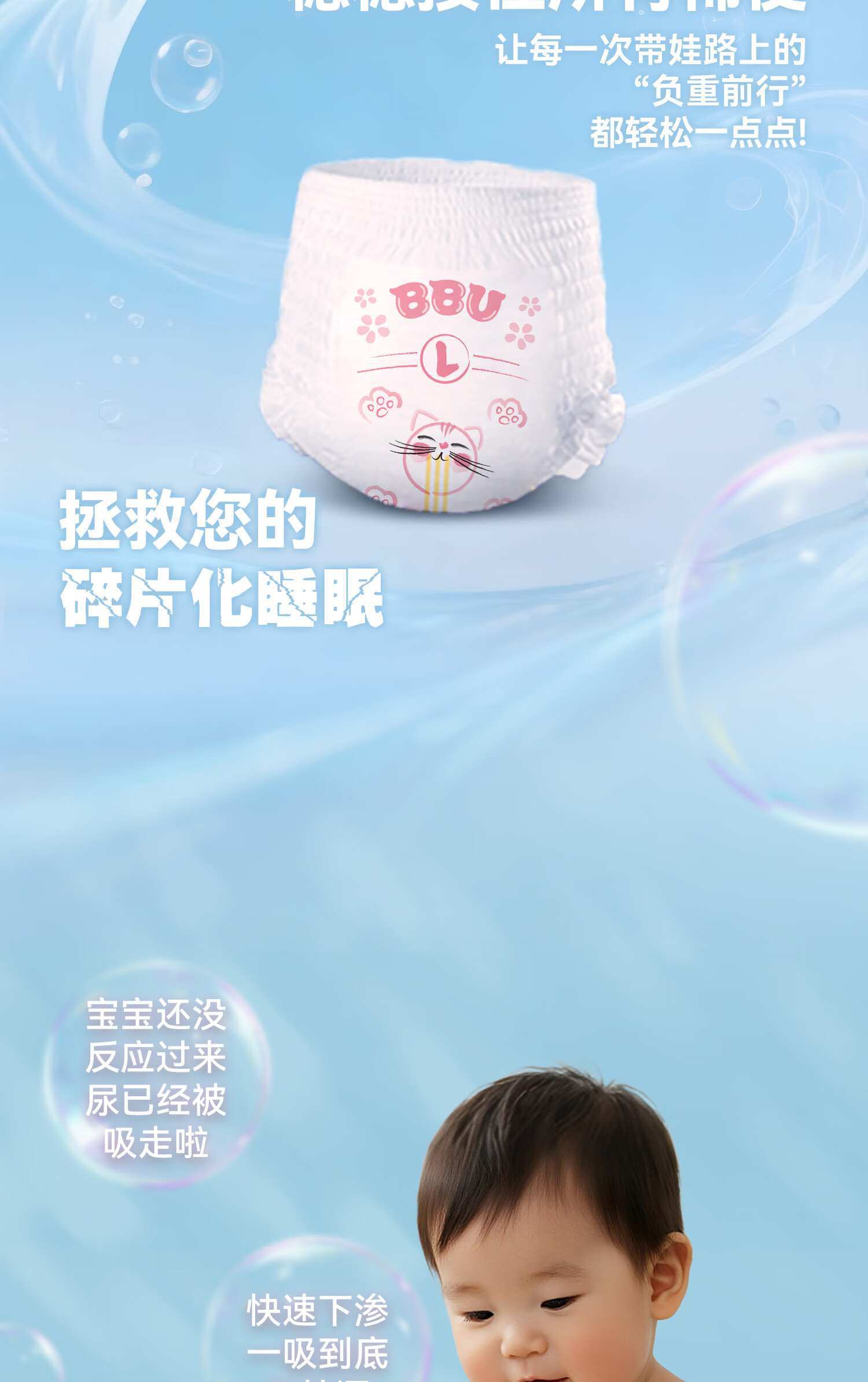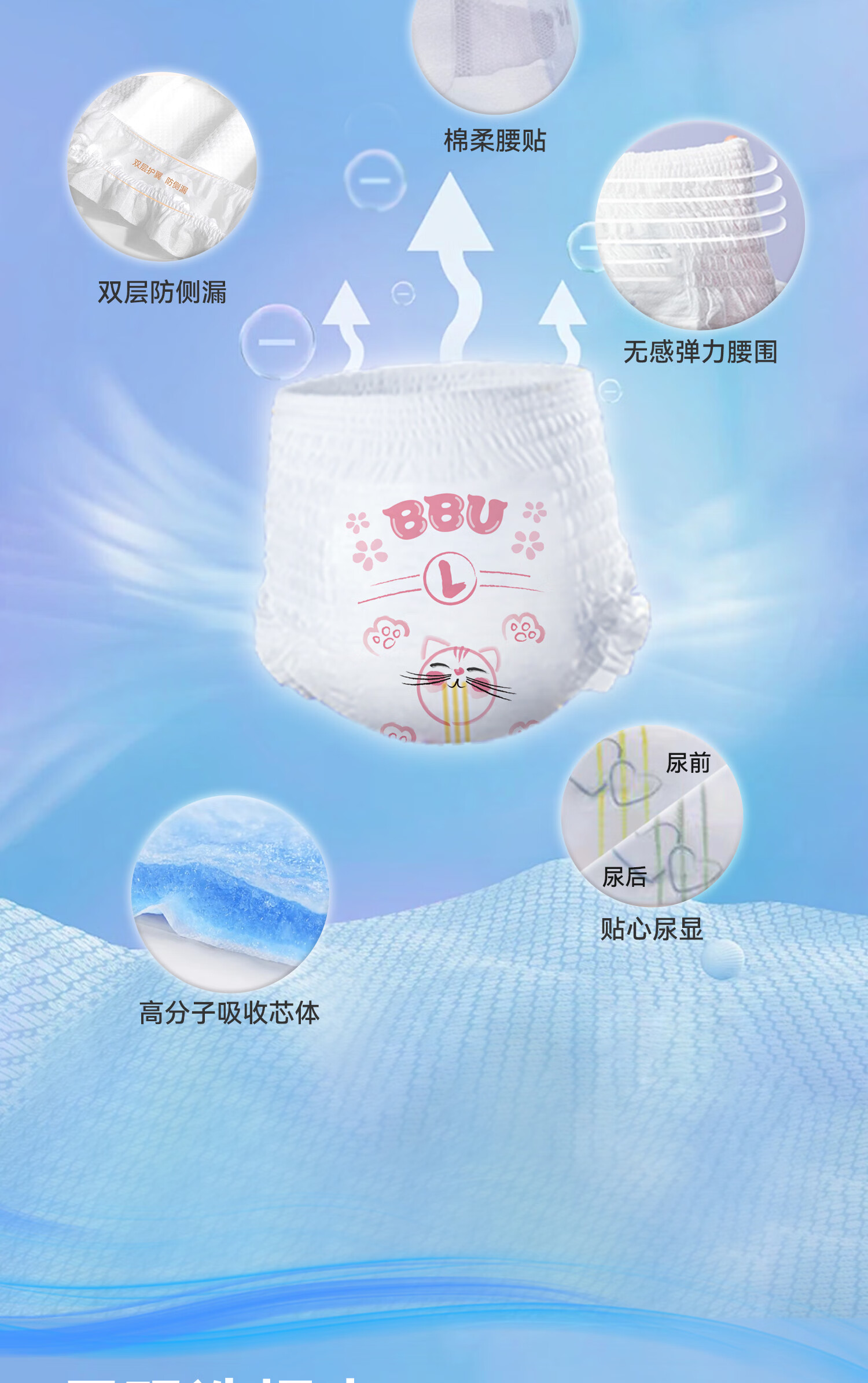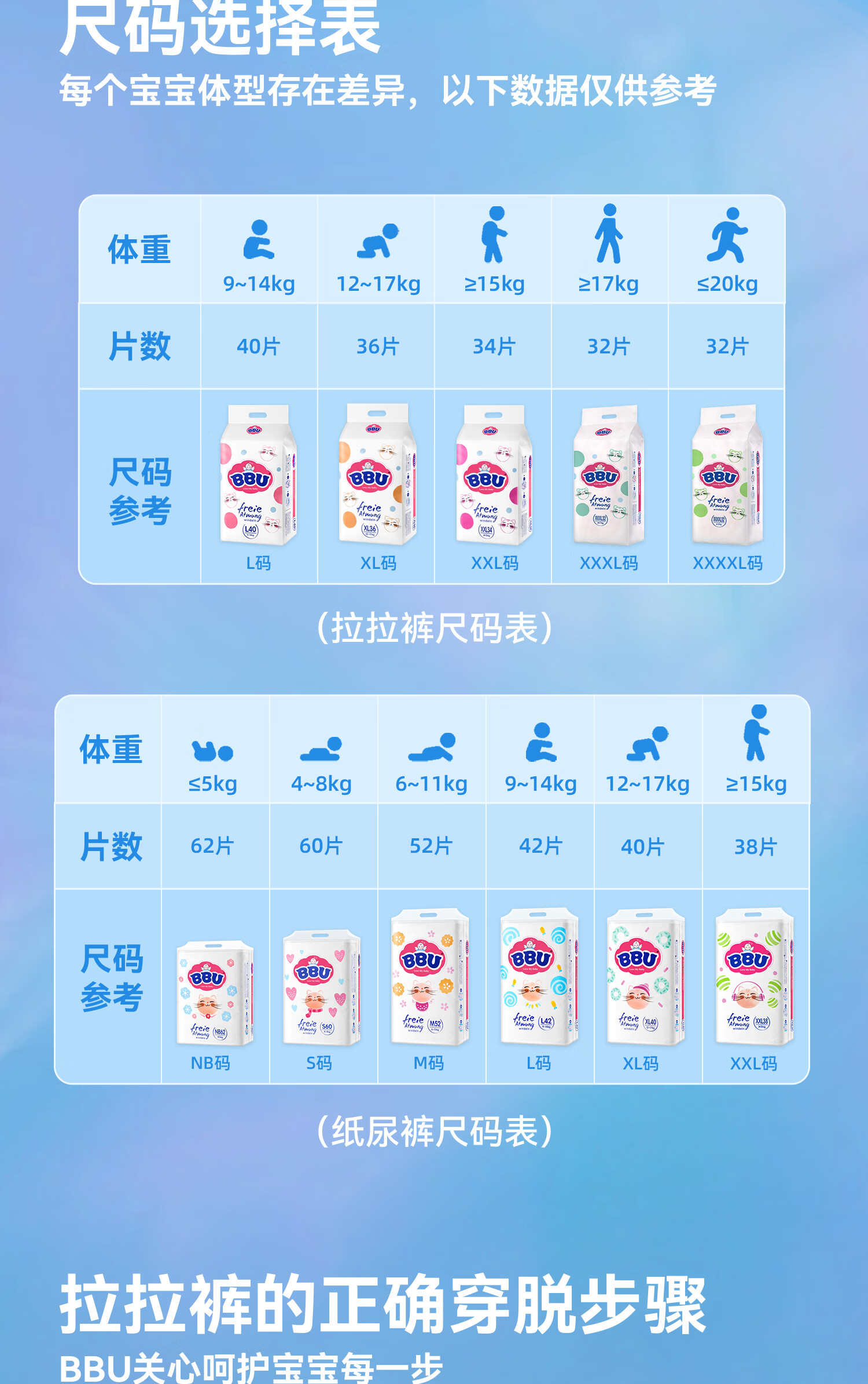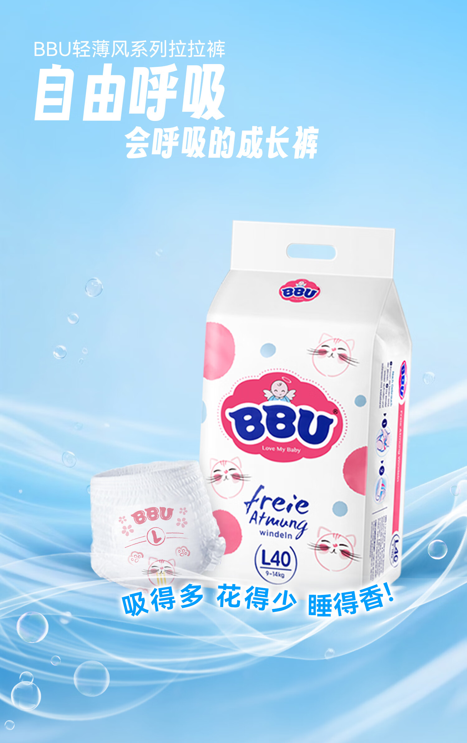 BBU 自由呼吸轻薄超薄 干爽 透气拉拉裤/成长裤 4包增量装 XXXL码32片*4包(17kg以上)
