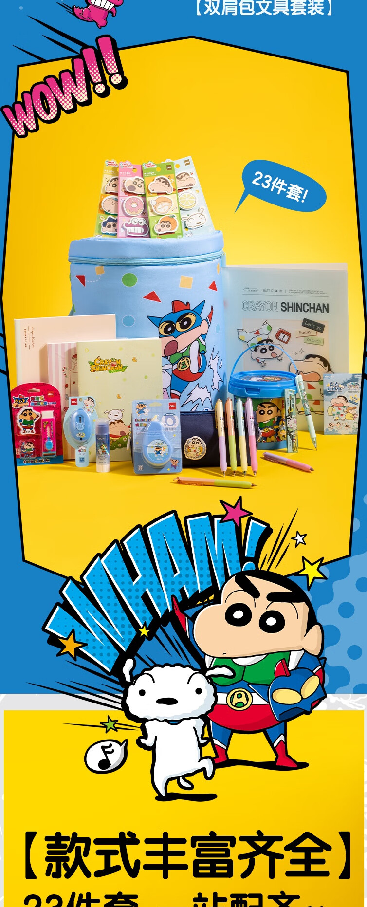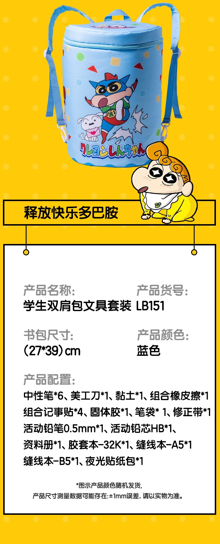 得力(deli)蜡笔小新双肩包文具礼盒套装儿童开学大礼包修正带粘土铅笔橡皮笔袋资料册高颜值生日礼物男女孩