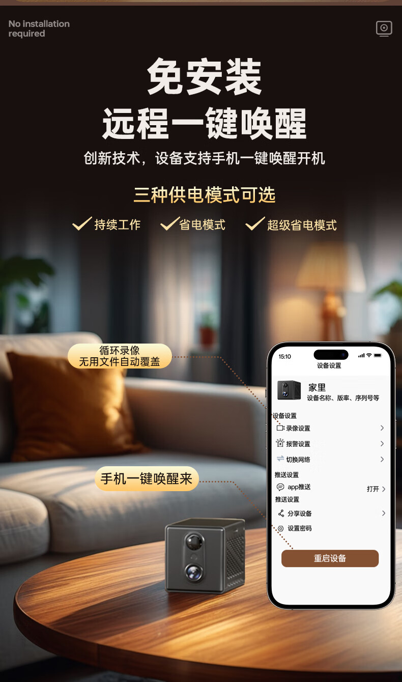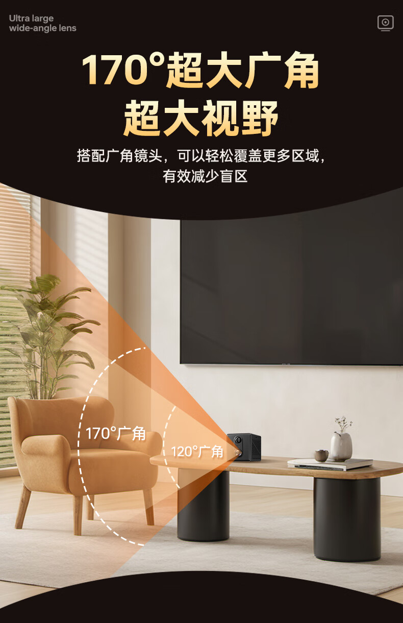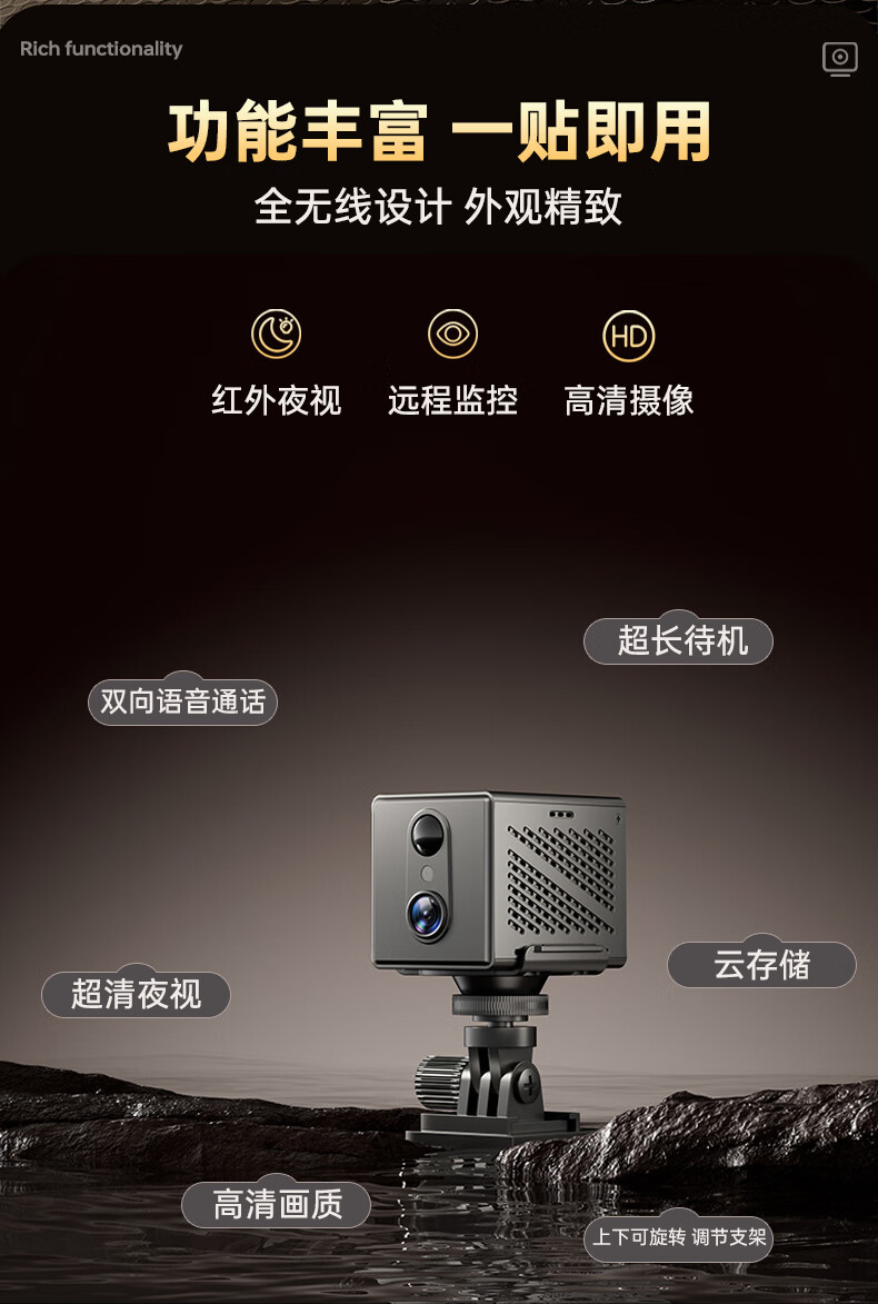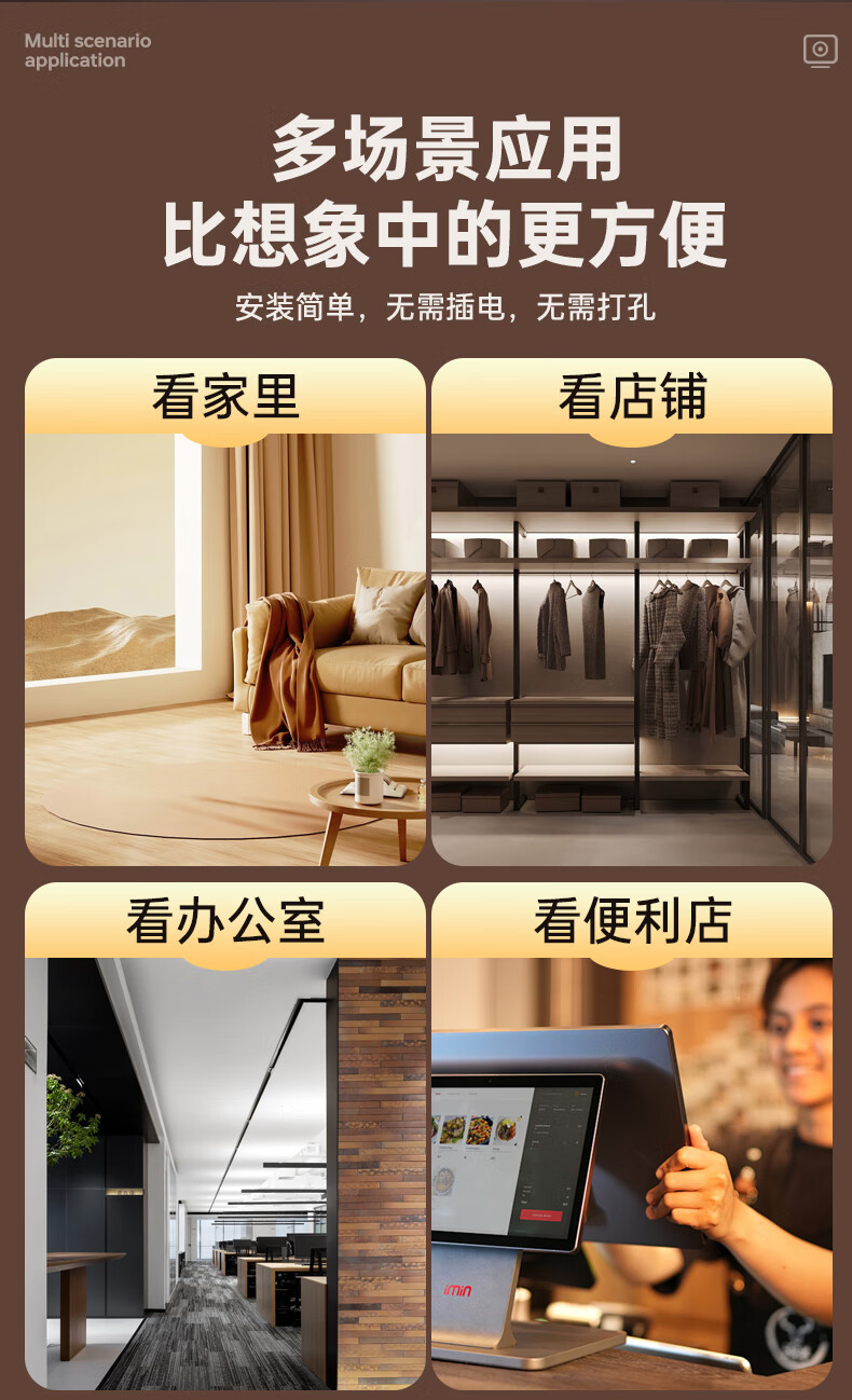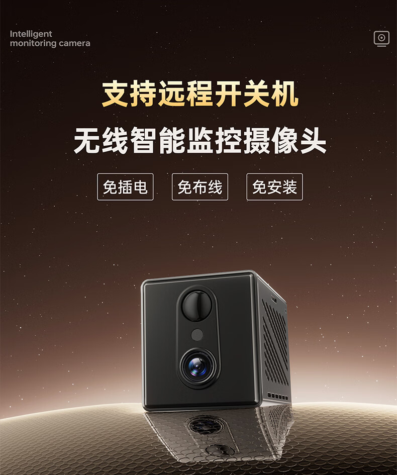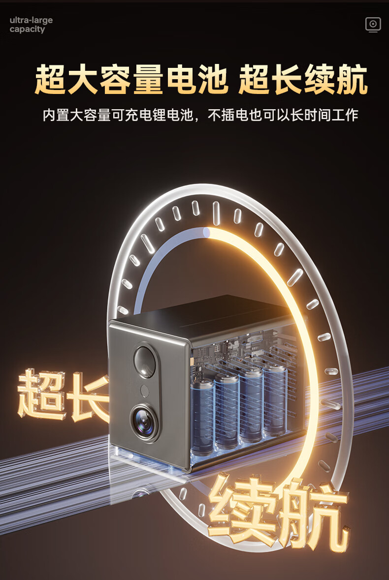 鸣胜监控摄像头家用无线免插电4K超清监控器360度无死角带夜视手机远程可充电监控门口入户门车载
