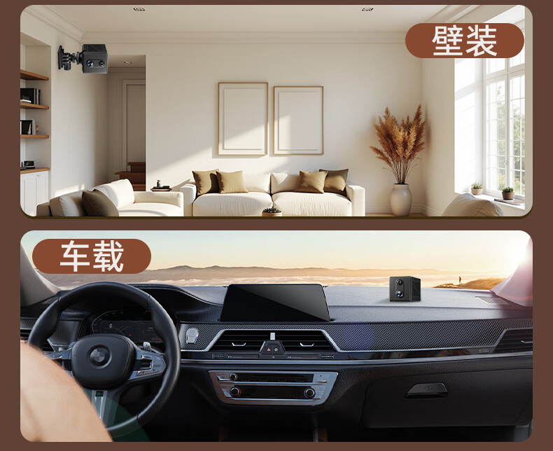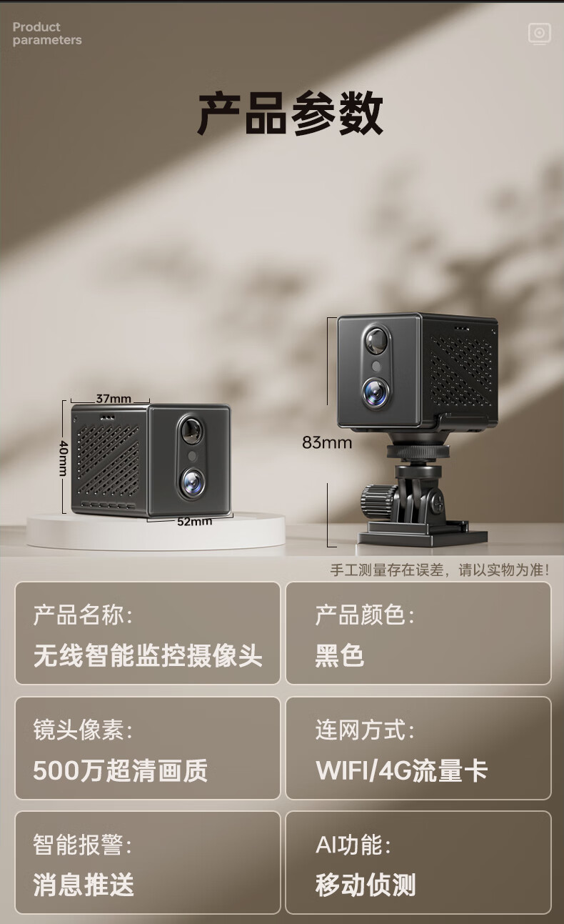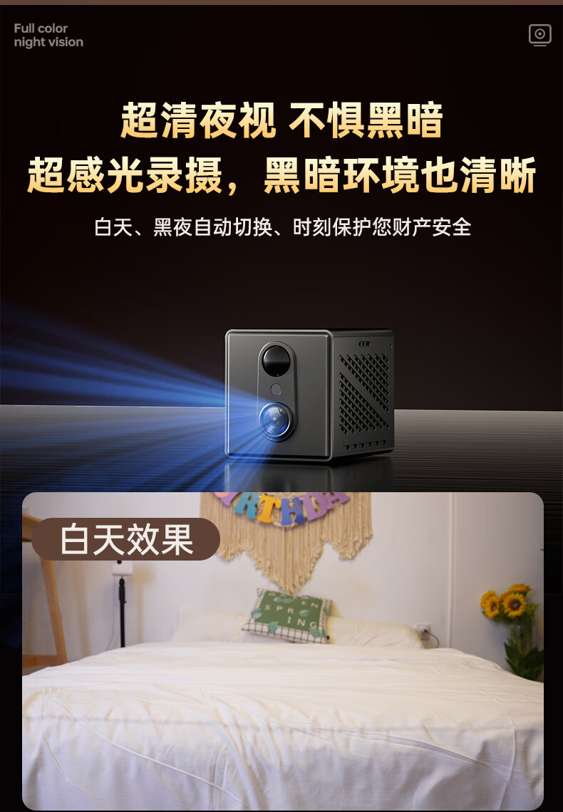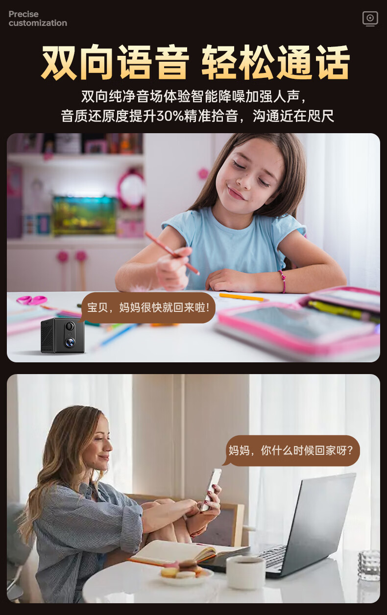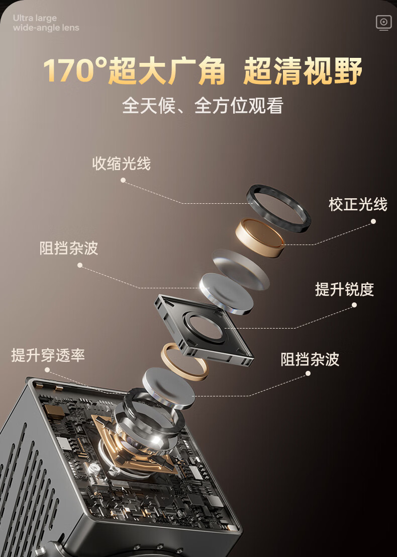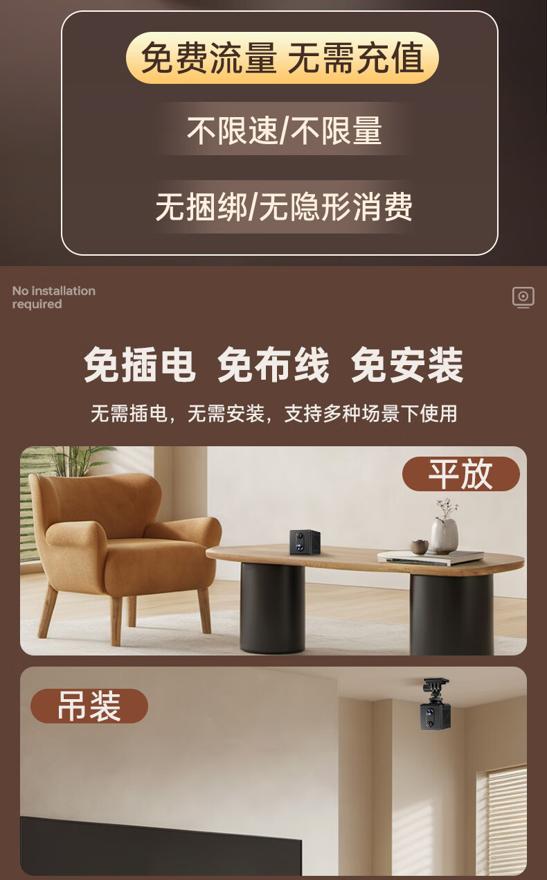 鸣胜监控摄像头家用无线免插电4K超清监控器360度无死角带夜视手机远程可充电监控门口入户门车载