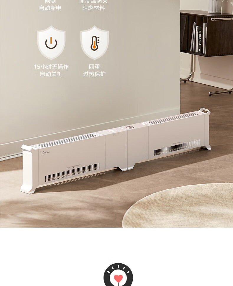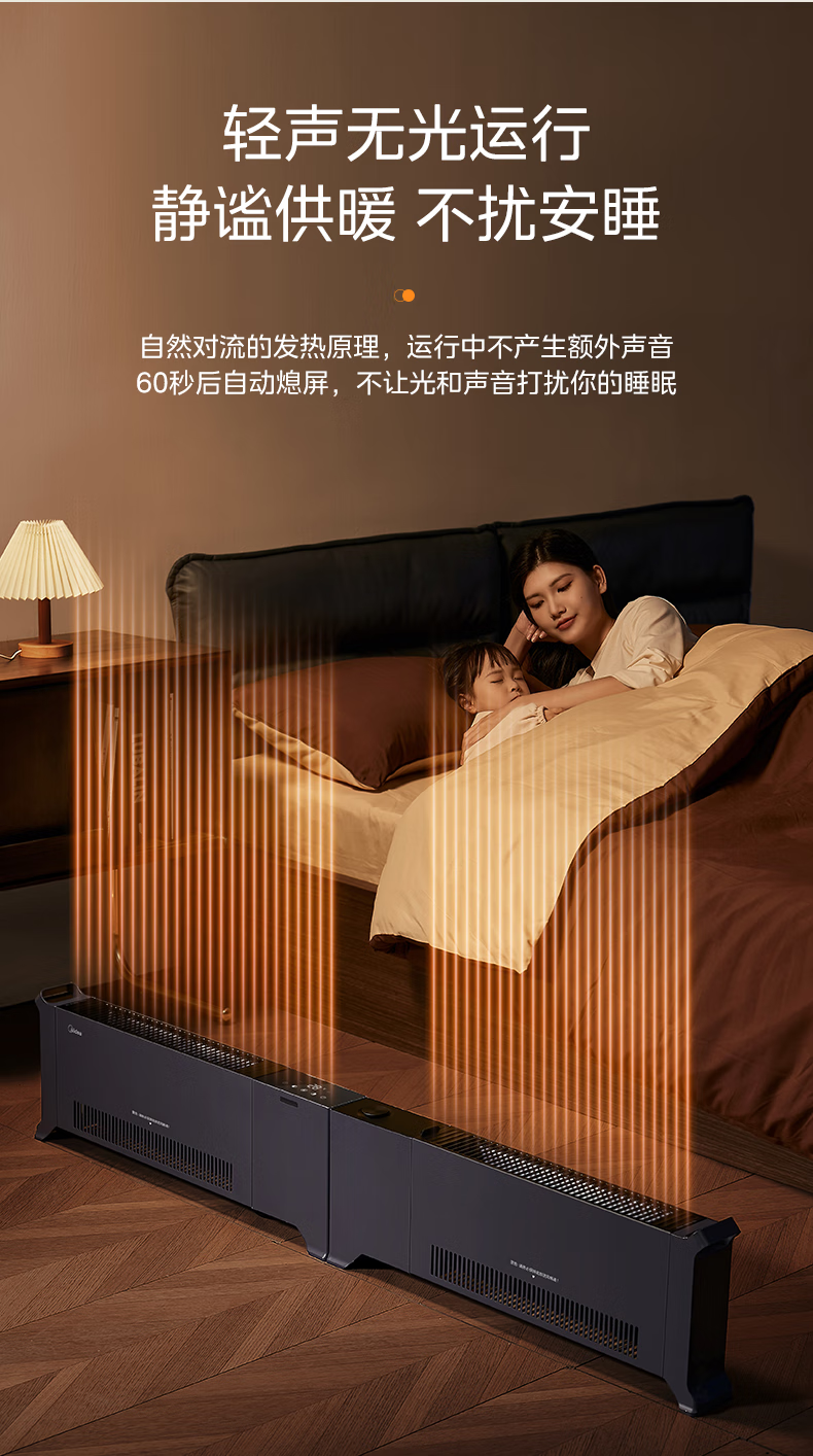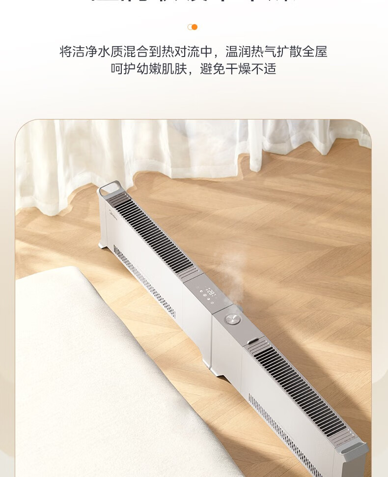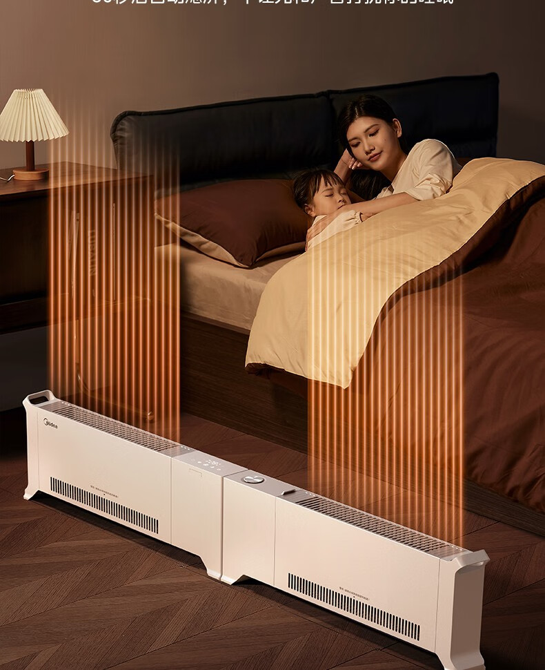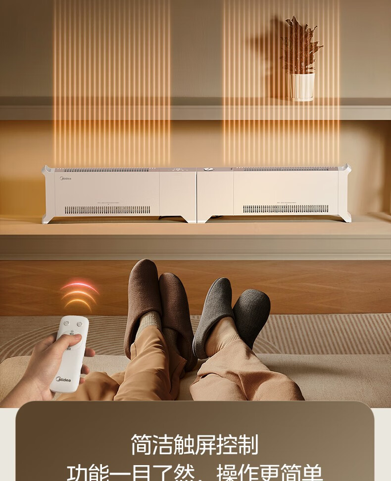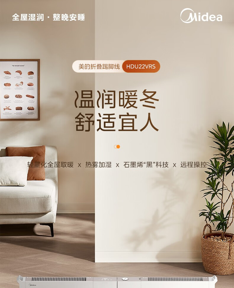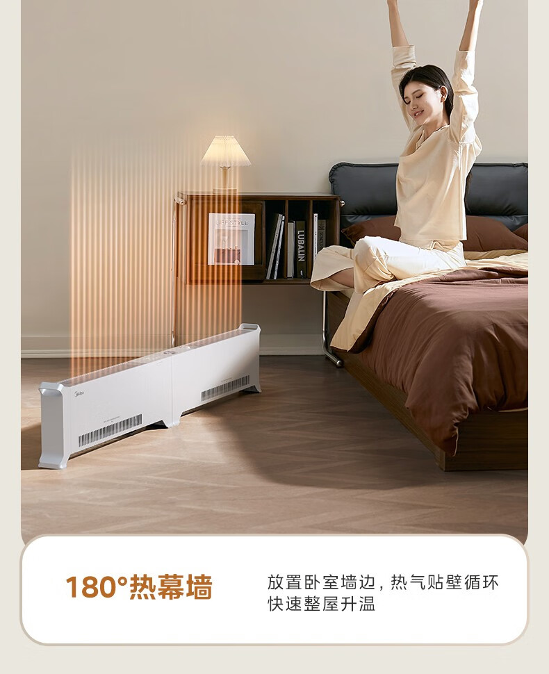 美的(Midea)石墨烯踢脚线 双擎取暖器 180°折叠电暖器 电暖气片 暖风机家用 遥控加湿IP24防水 【性价比优选】可遥控HDU20VR