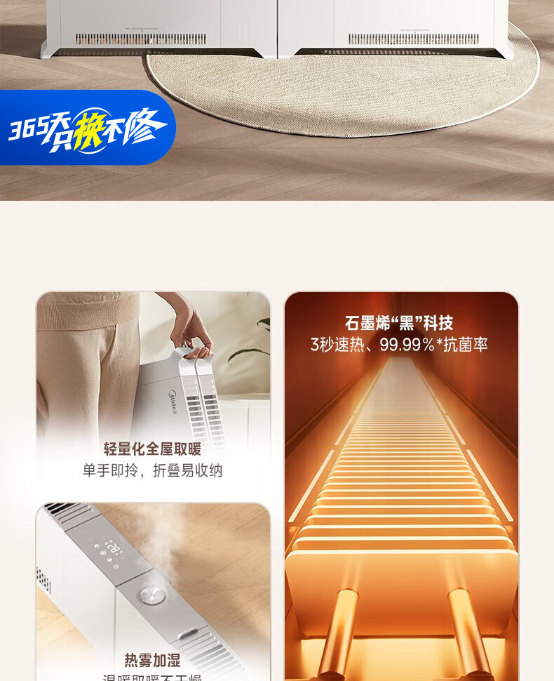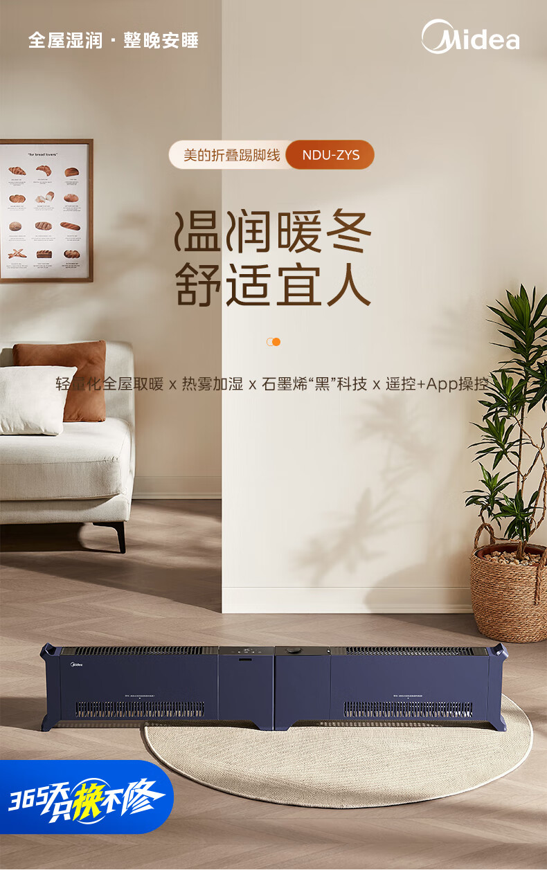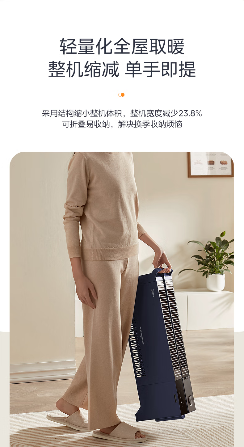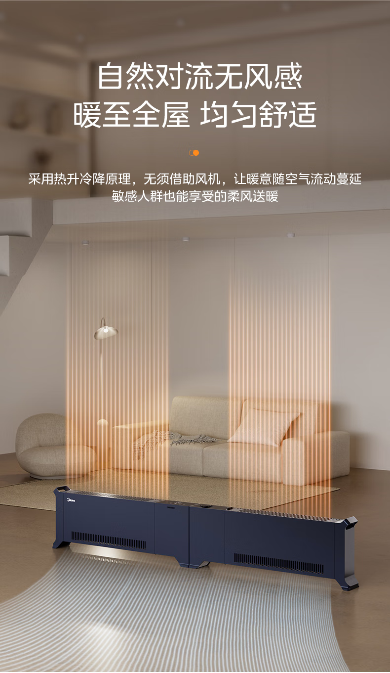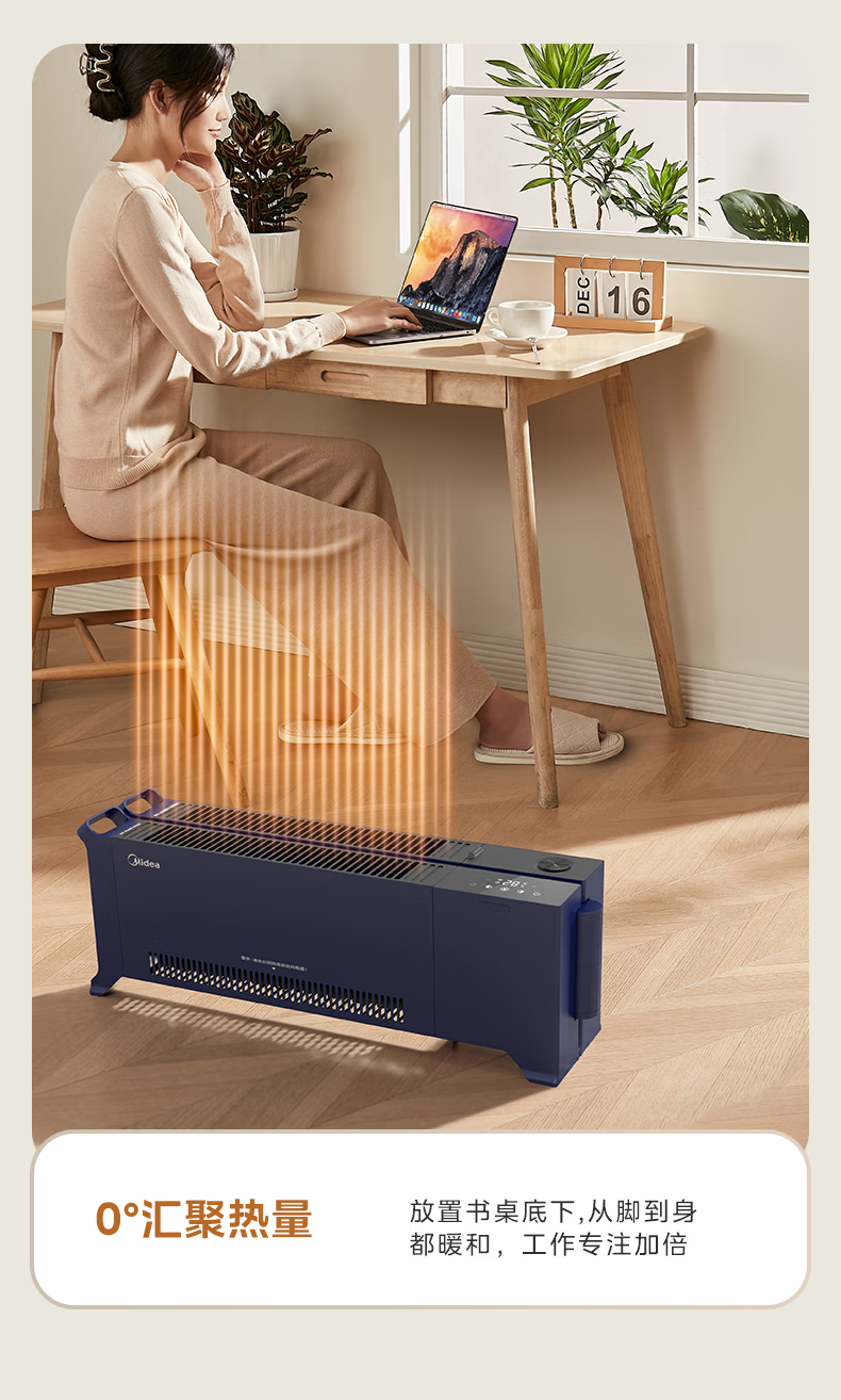 美的(Midea)石墨烯踢脚线 双擎取暖器 180°折叠电暖器 电暖气片 暖风机家用 遥控加湿IP24防水 【性价比优选】可遥控HDU20VR
