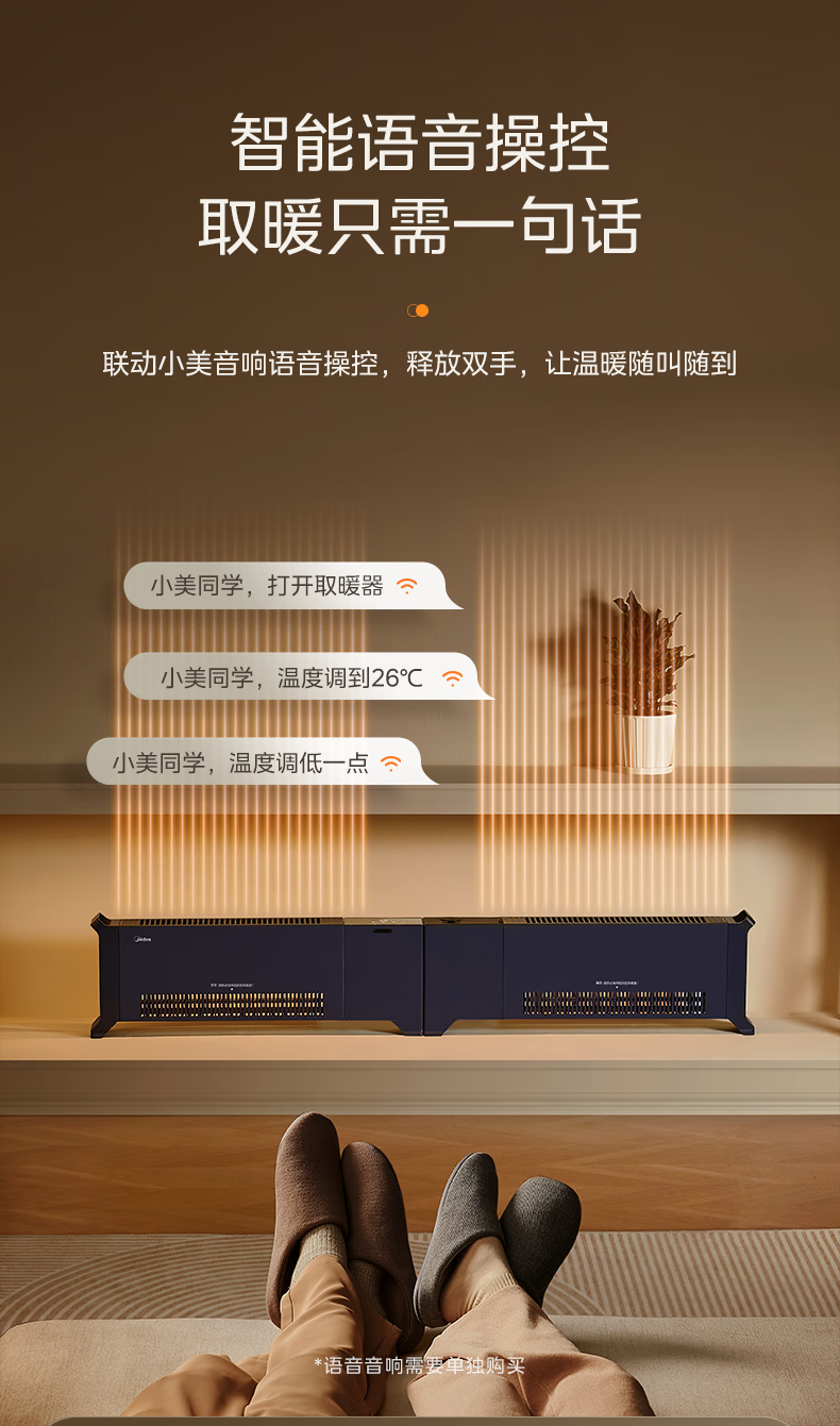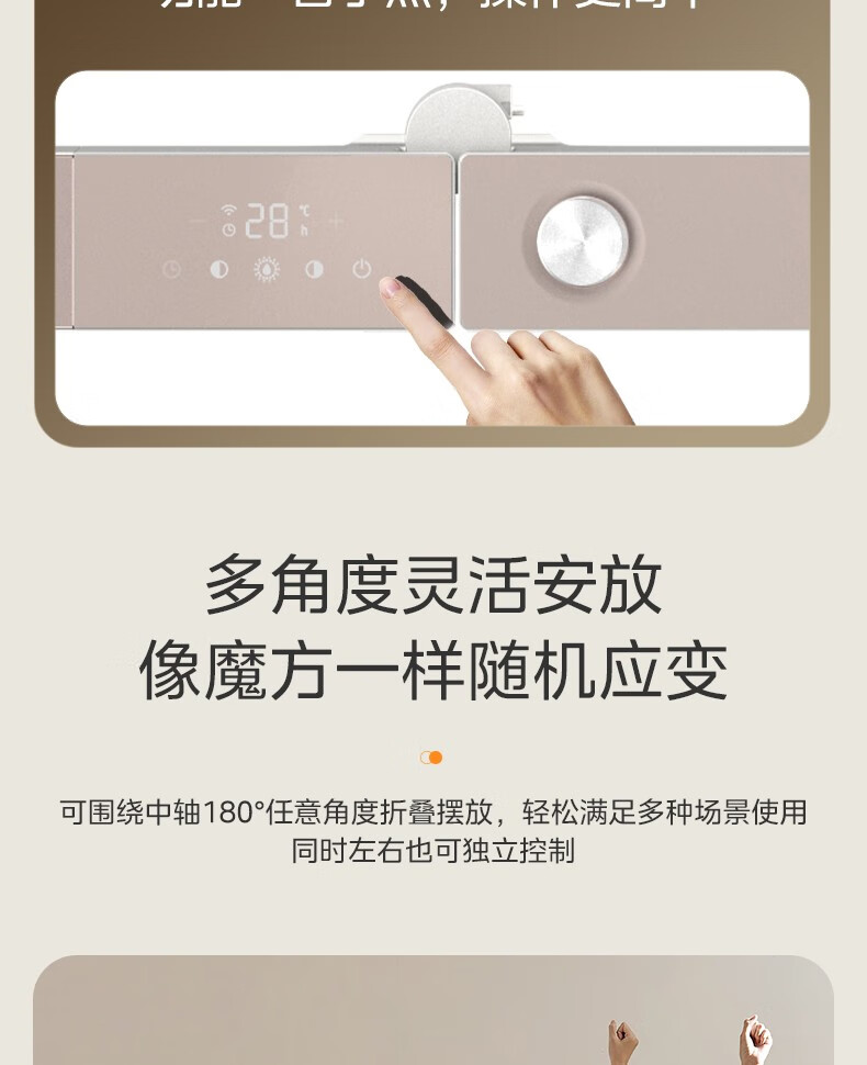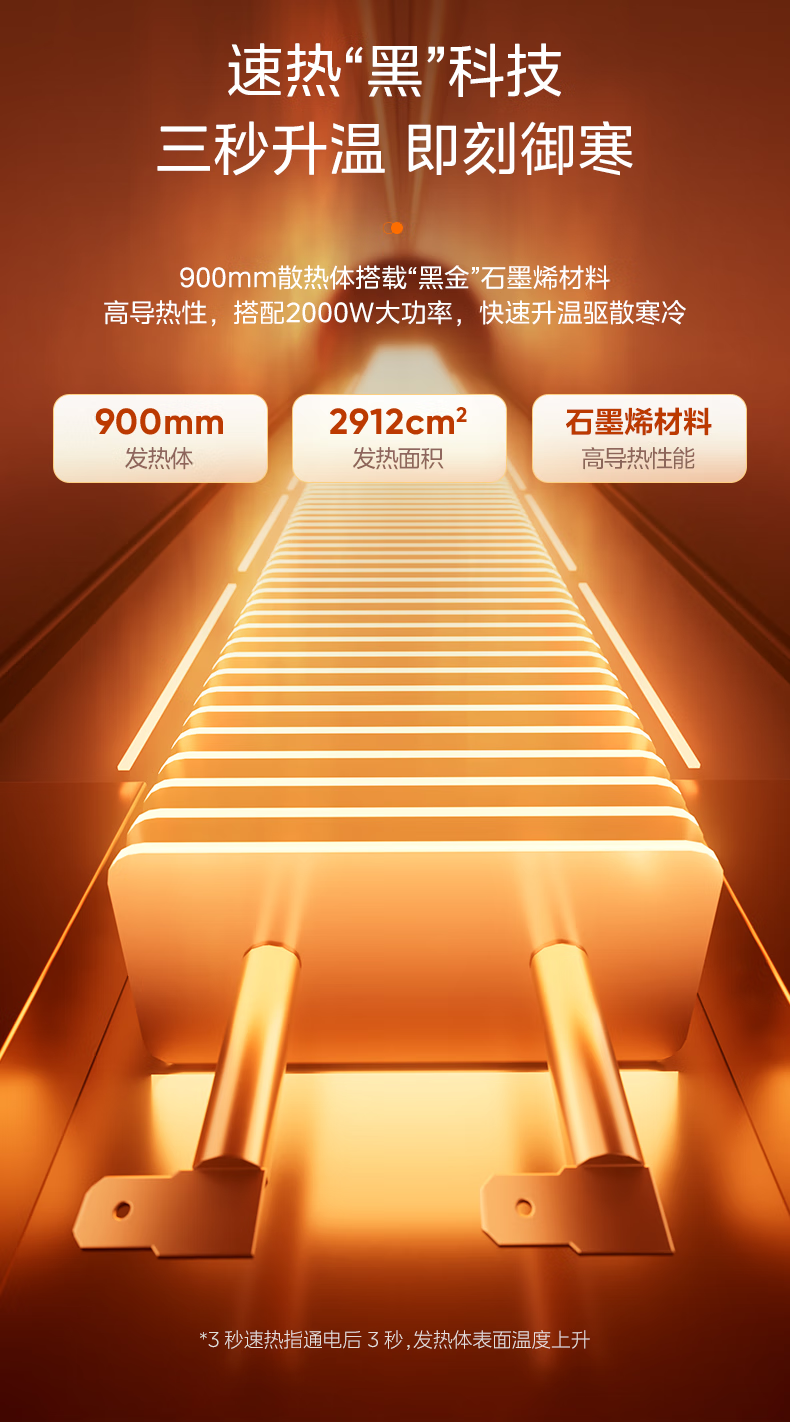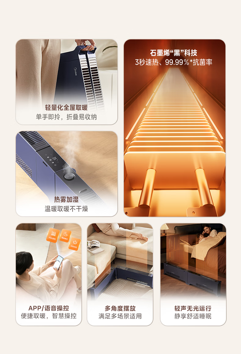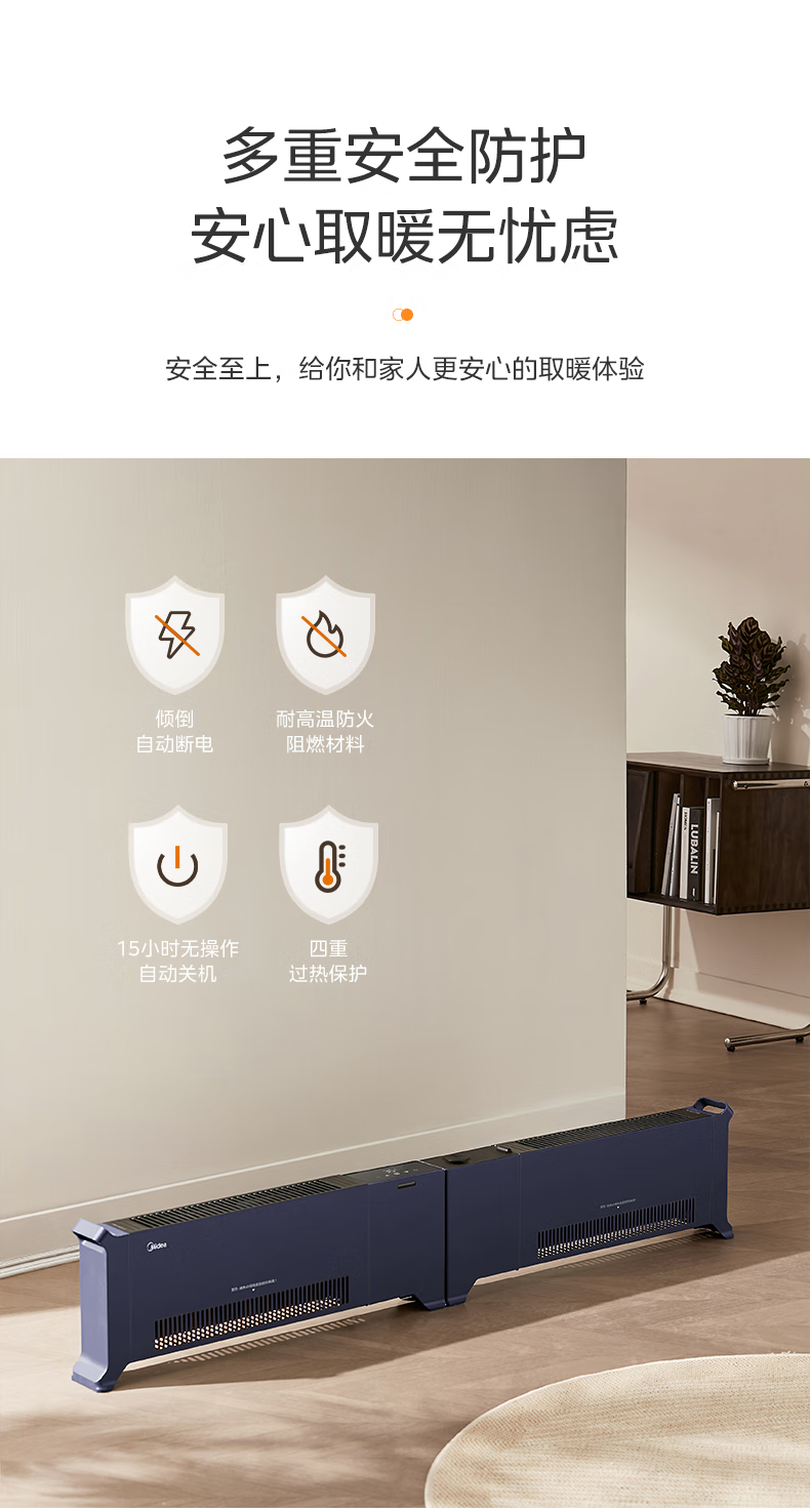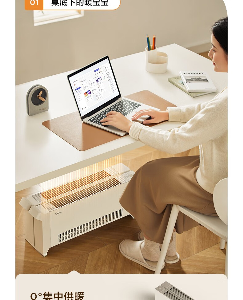 美的(Midea)石墨烯踢脚线 双擎取暖器 180°折叠电暖器 电暖气片 暖风机家用 遥控加湿IP24防水 【性价比优选】可遥控HDU20VR