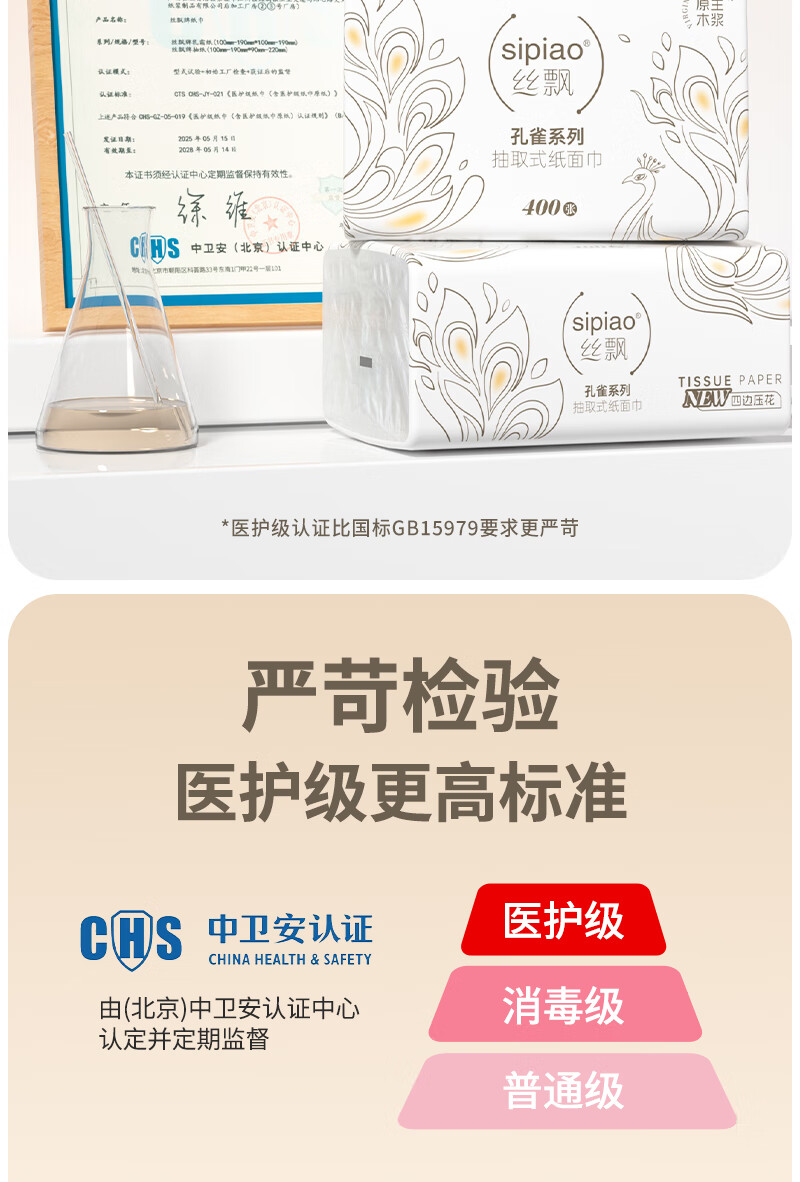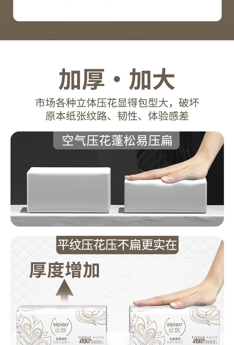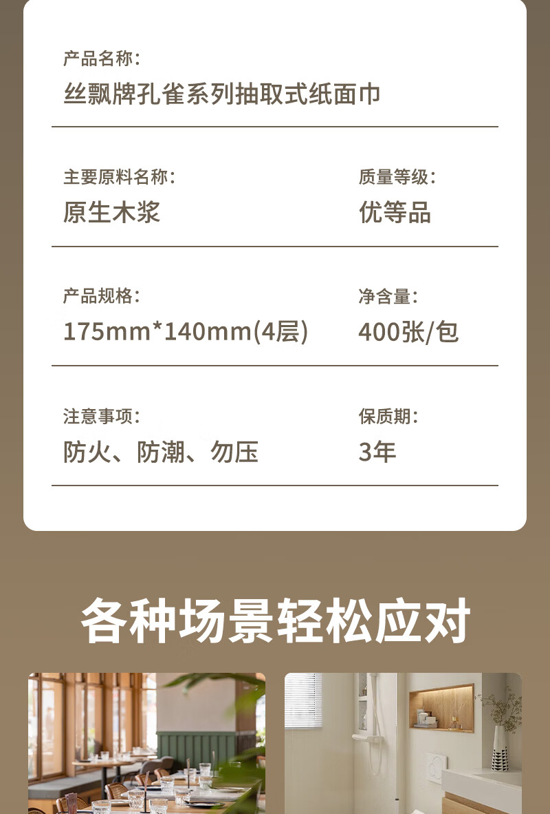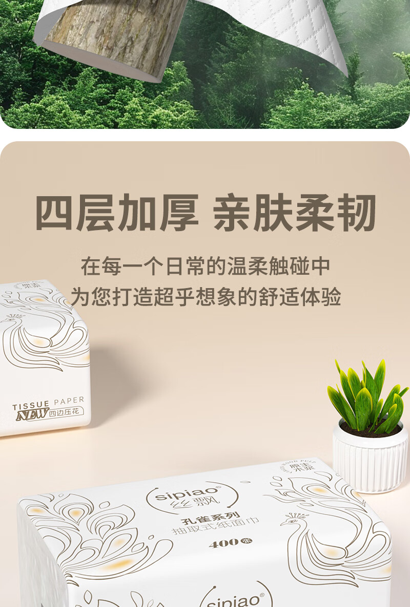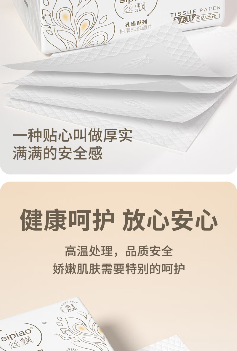 丝飘(SIPIAO)孔雀系列抽取式面巾4层柔厚400张*20包软抽餐巾纸面巾卫生纸整箱