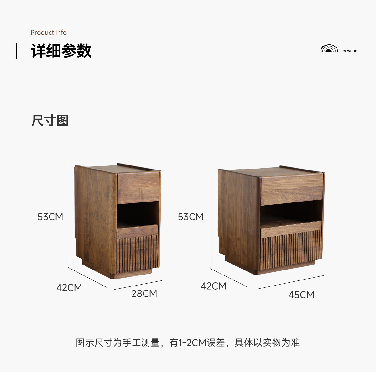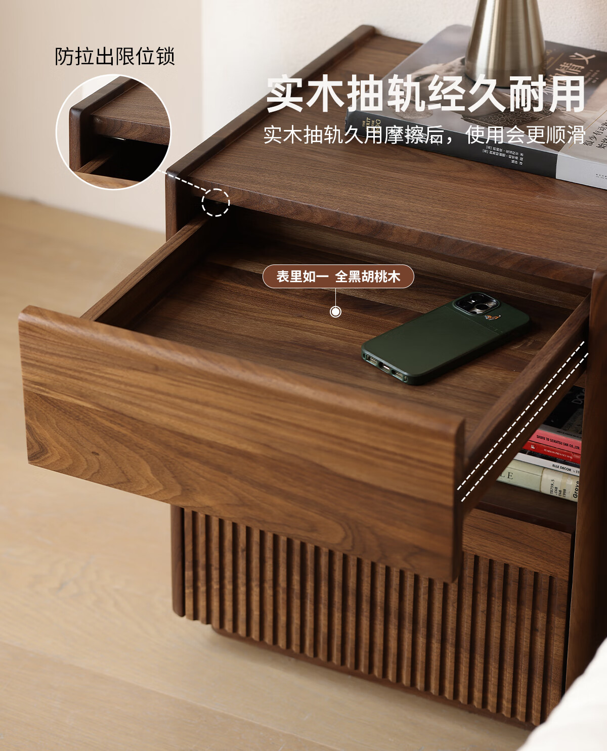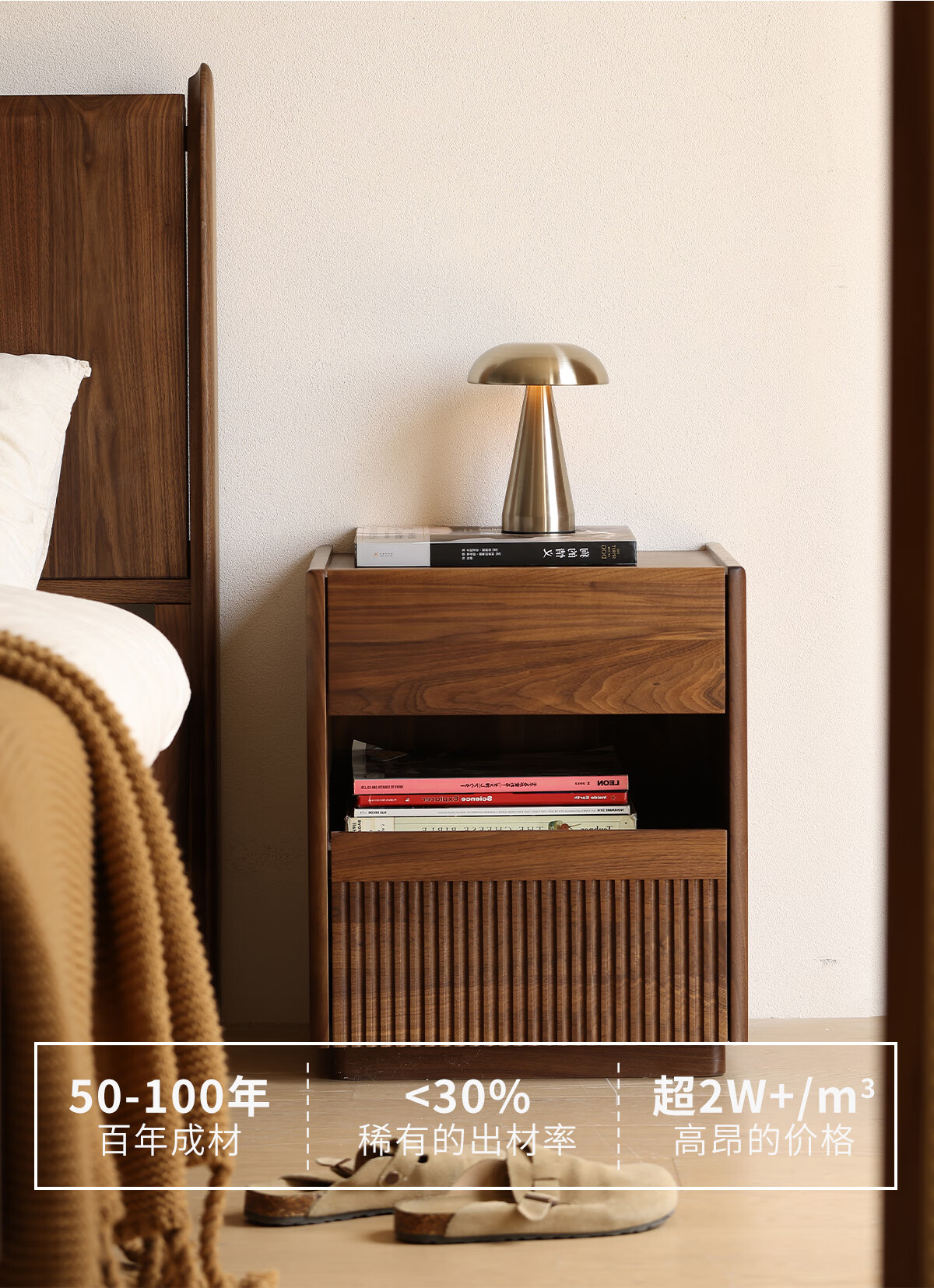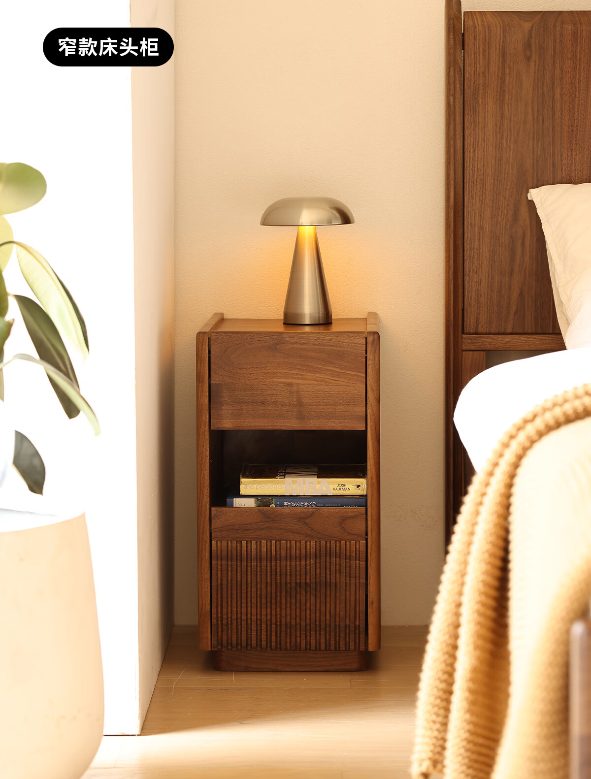 晨物北美黑胡桃木床头柜纯实木卧室置物柜床边柜床头置物架主卧收纳柜 问纤·床头柜28*42*53cm