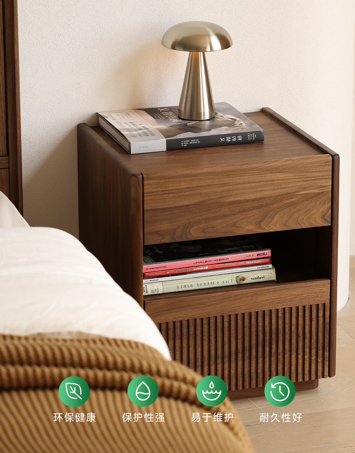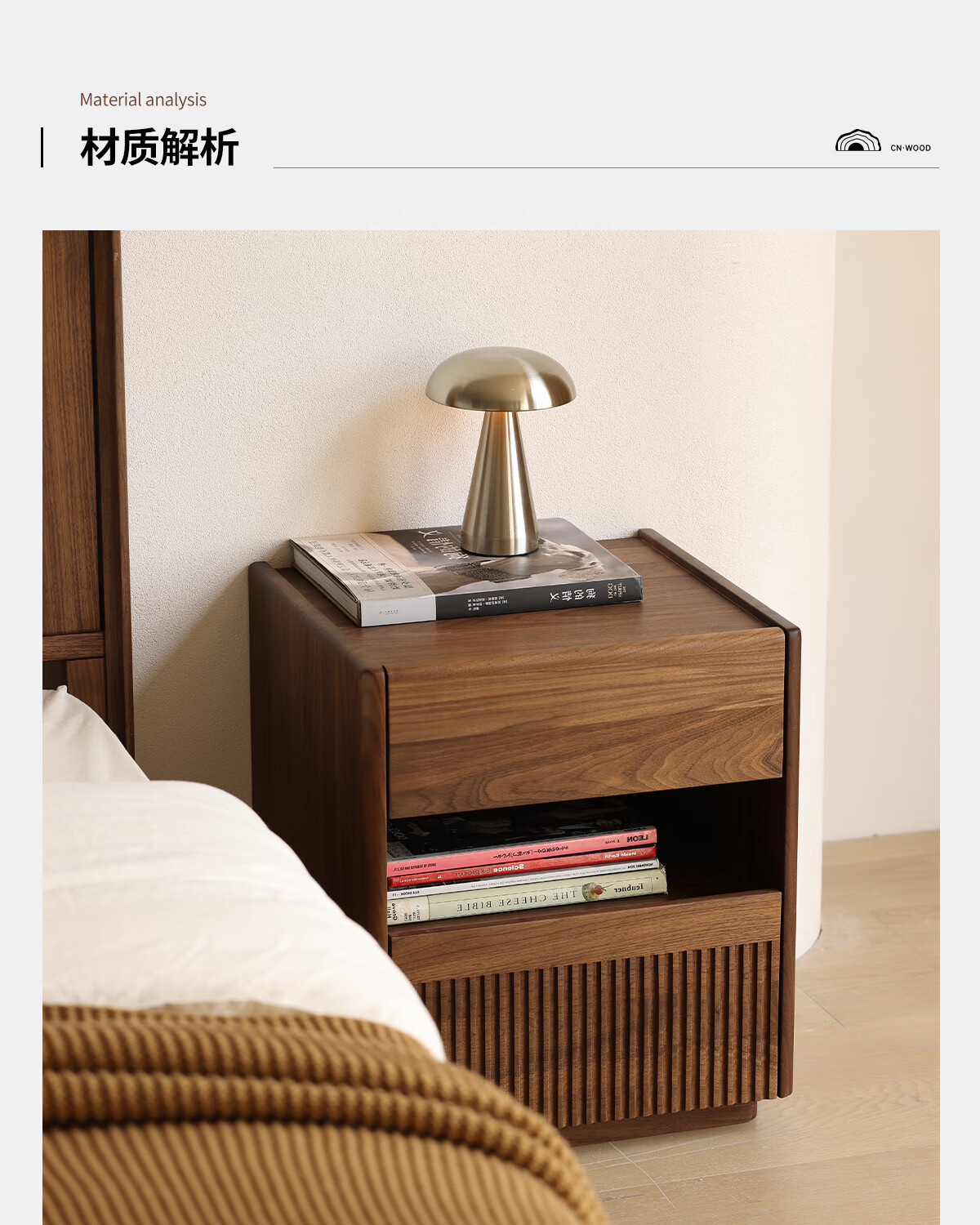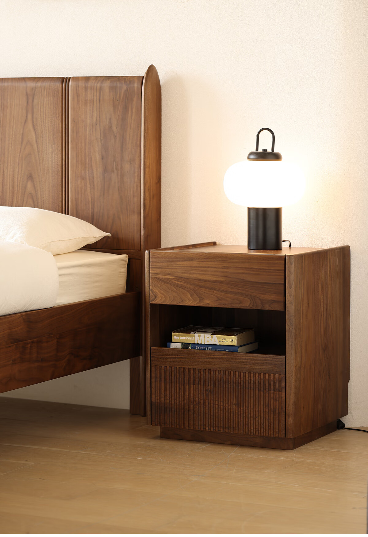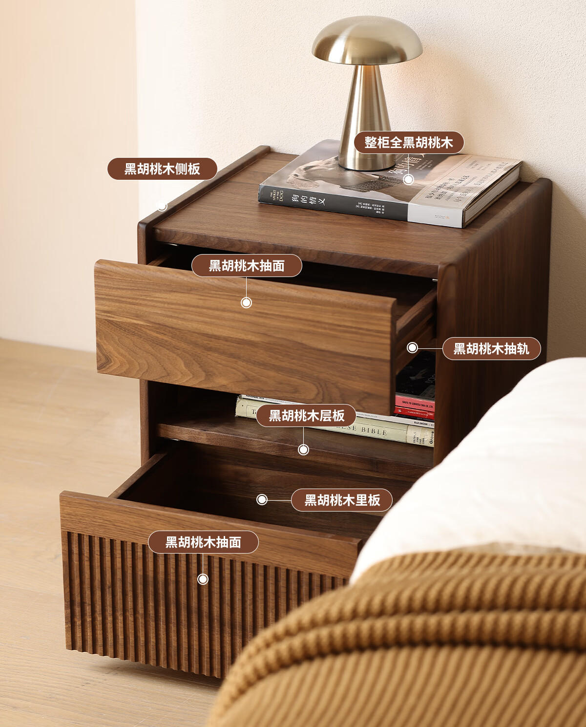 晨物北美黑胡桃木床头柜纯实木卧室置物柜床边柜床头置物架主卧收纳柜 问纤·床头柜28*42*53cm