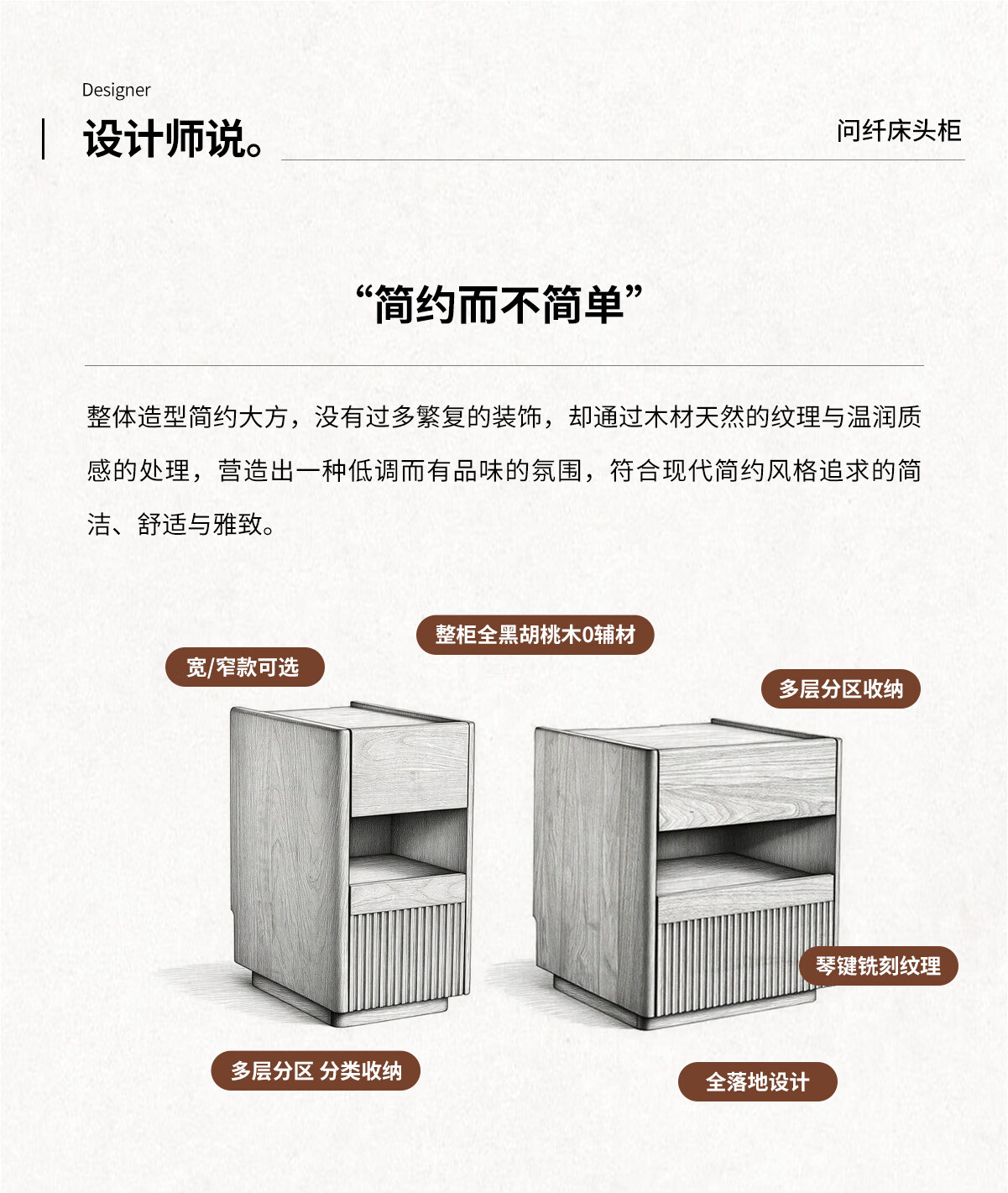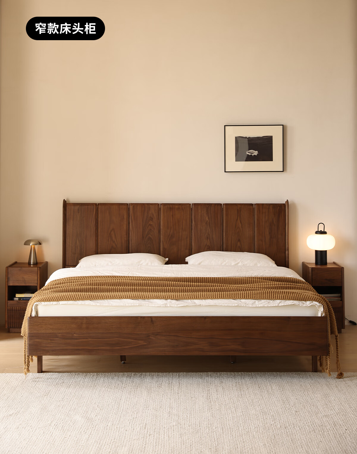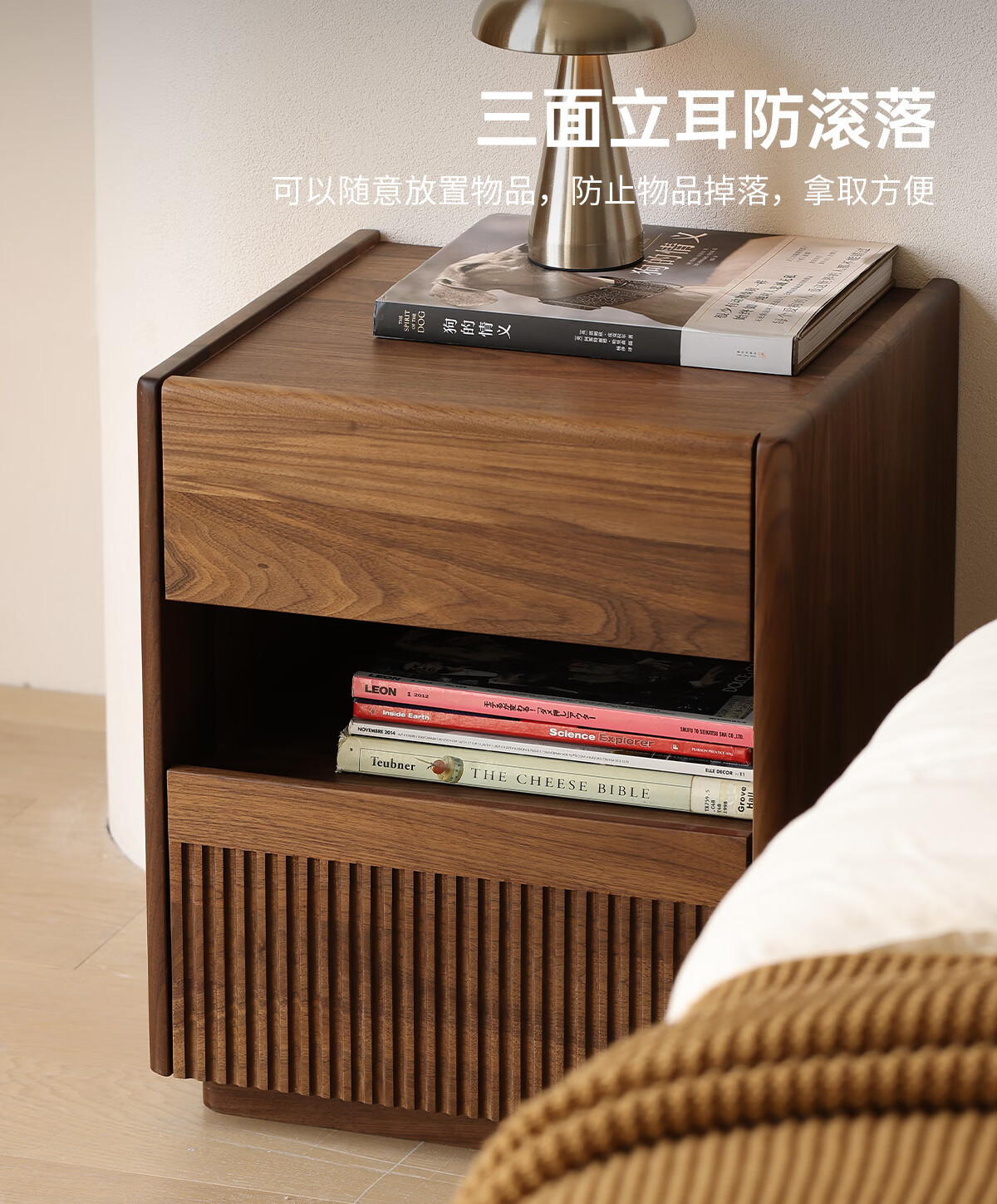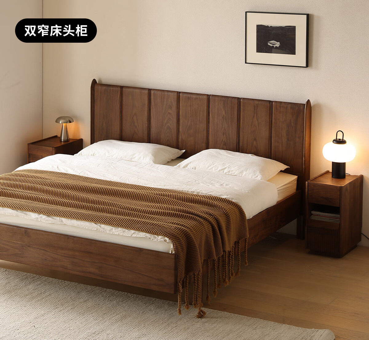 晨物北美黑胡桃木床头柜纯实木卧室置物柜床边柜床头置物架主卧收纳柜 问纤·床头柜28*42*53cm