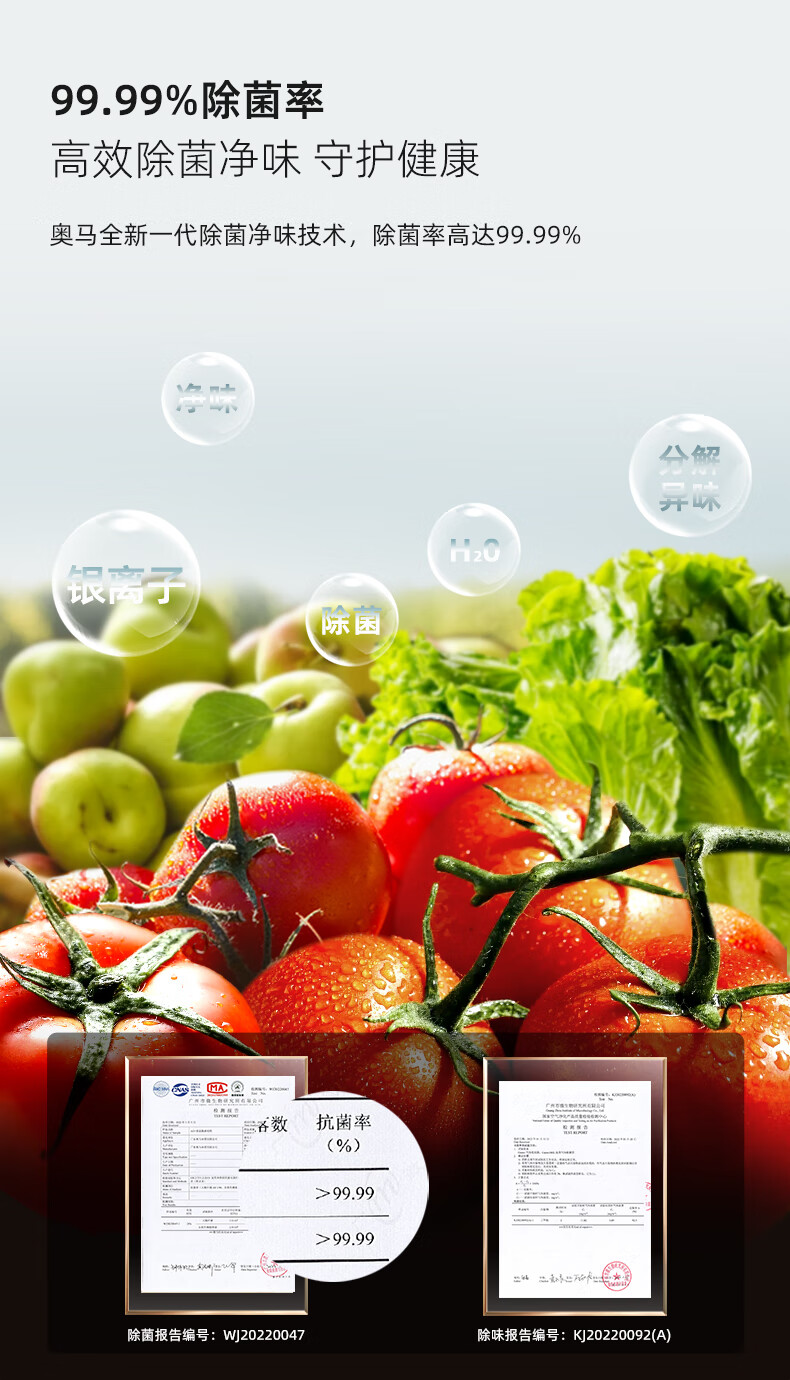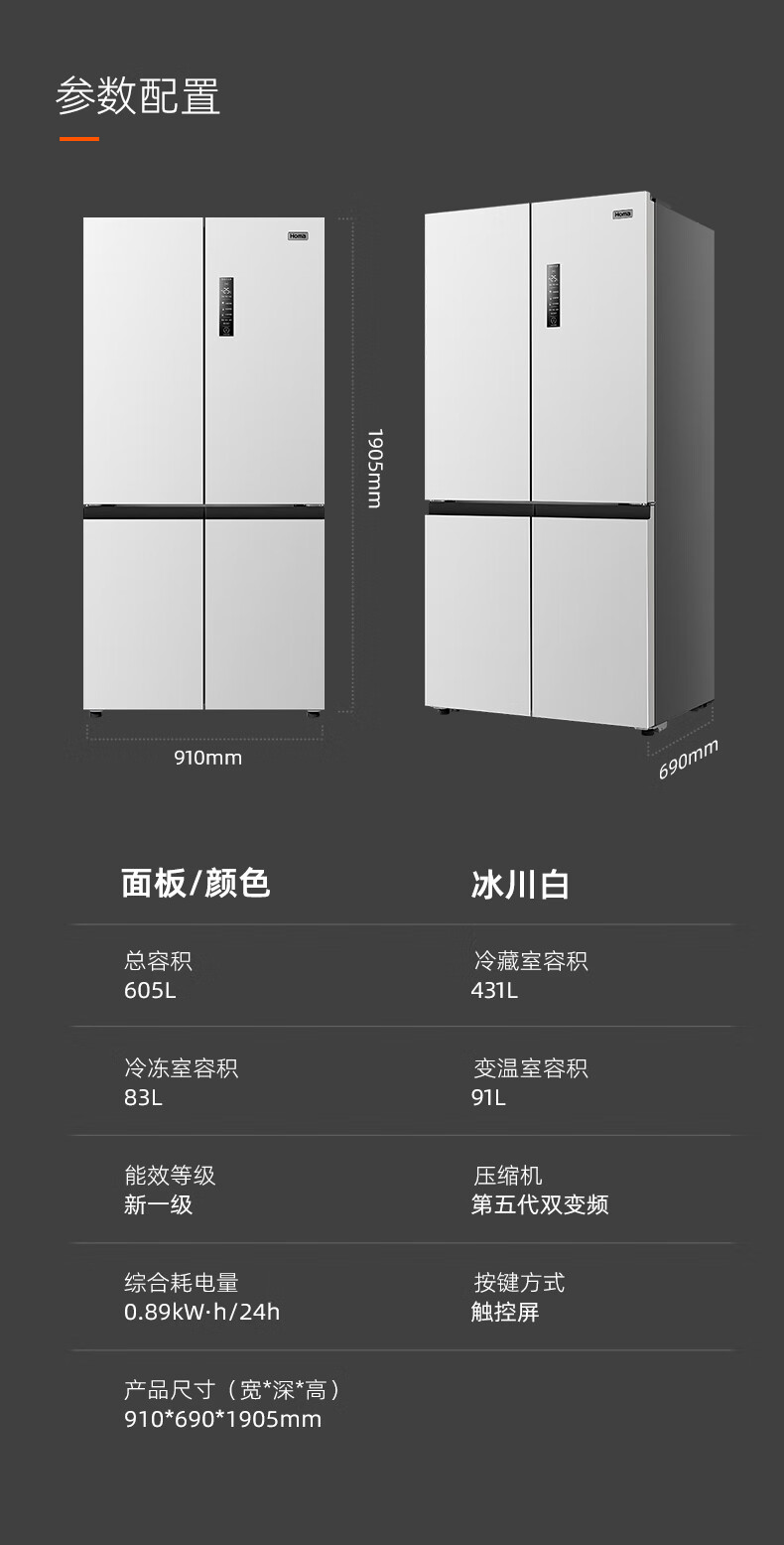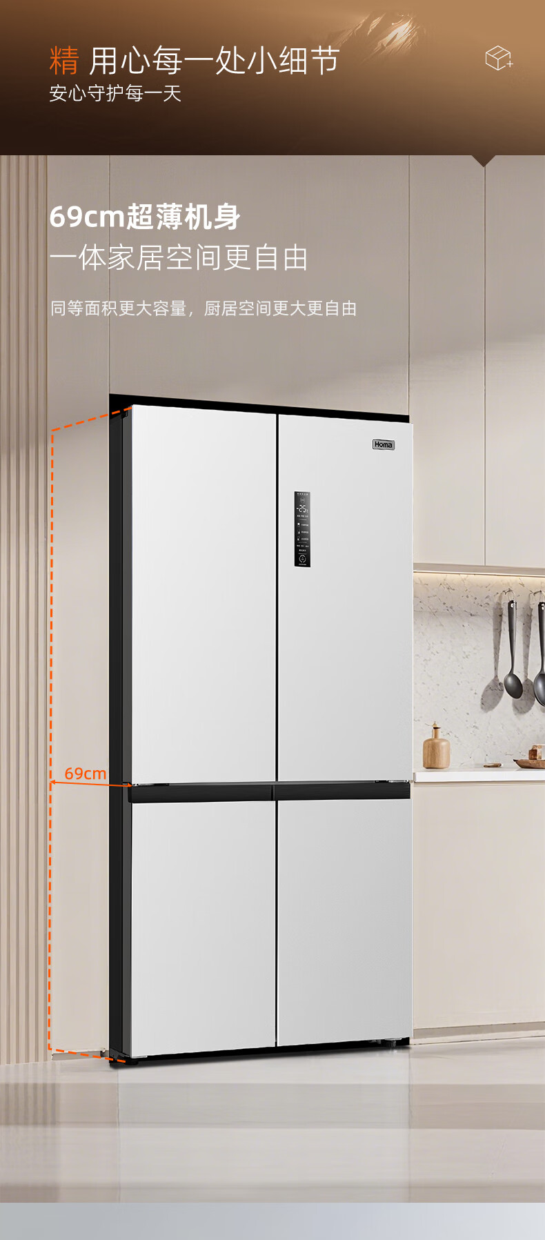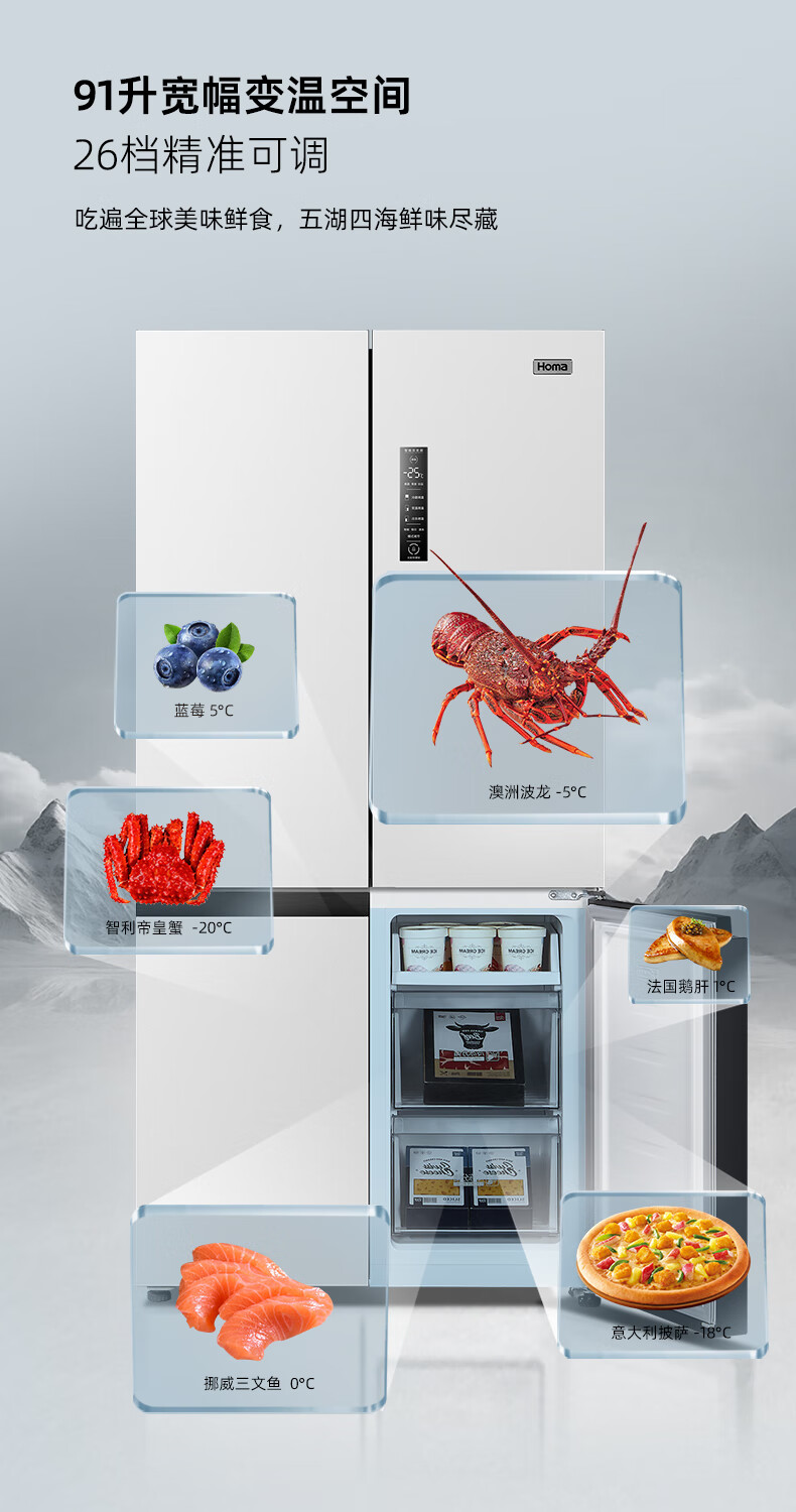 奥马(Homa) 605升超大容量一级能效双变频风冷无霜十字对开门四门双开门家用电冰箱 99.99%除菌率 605WDH/B