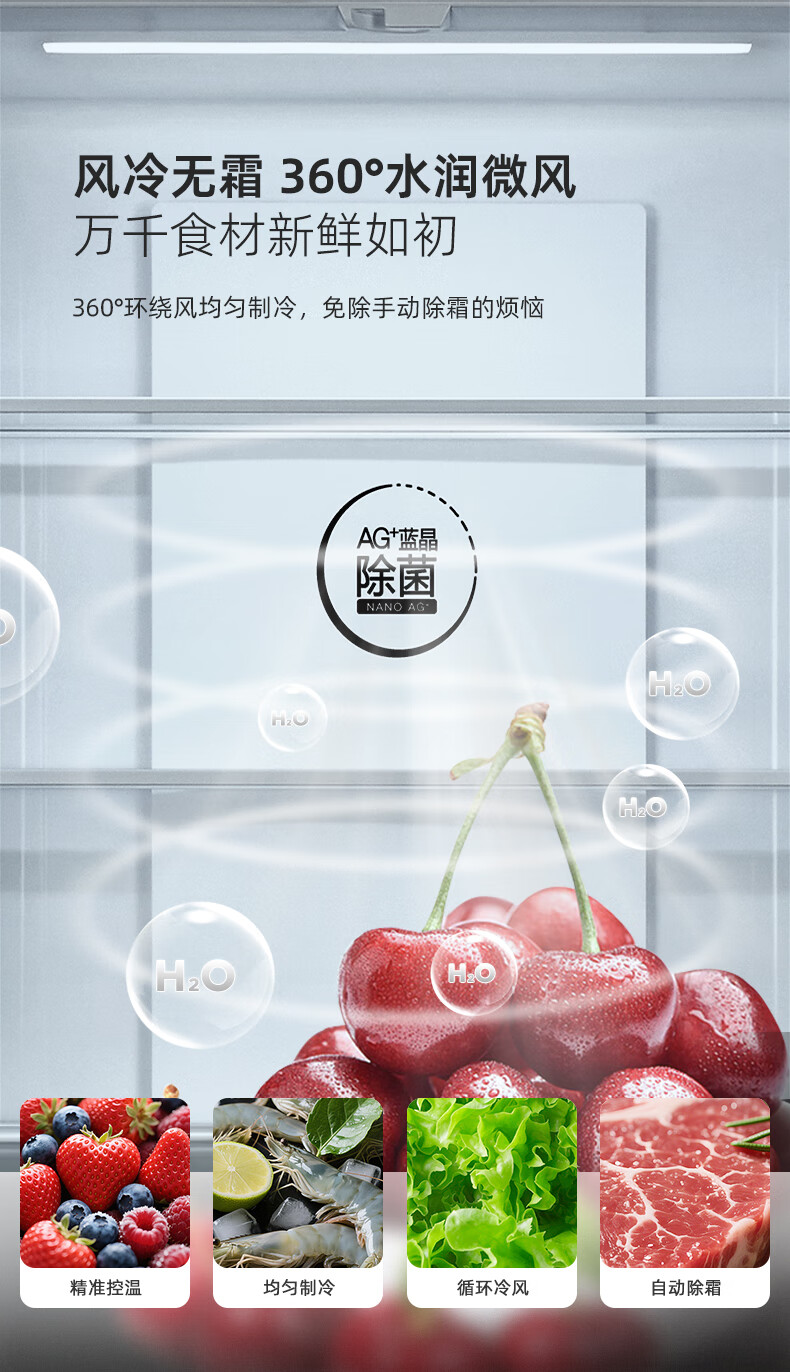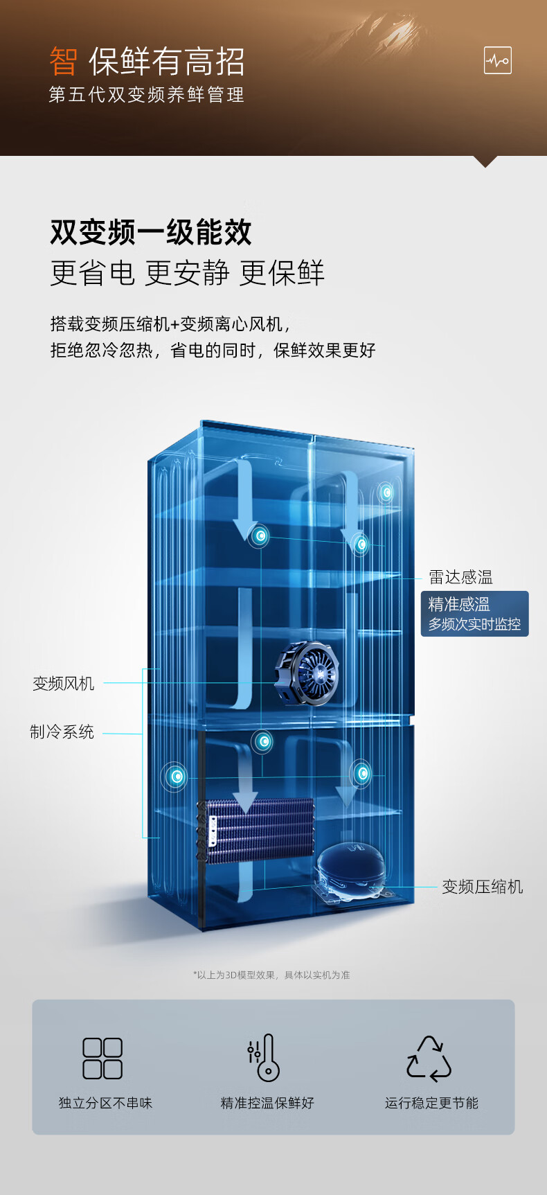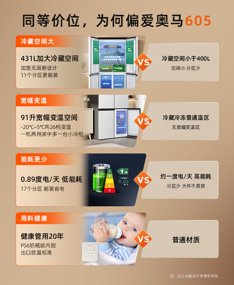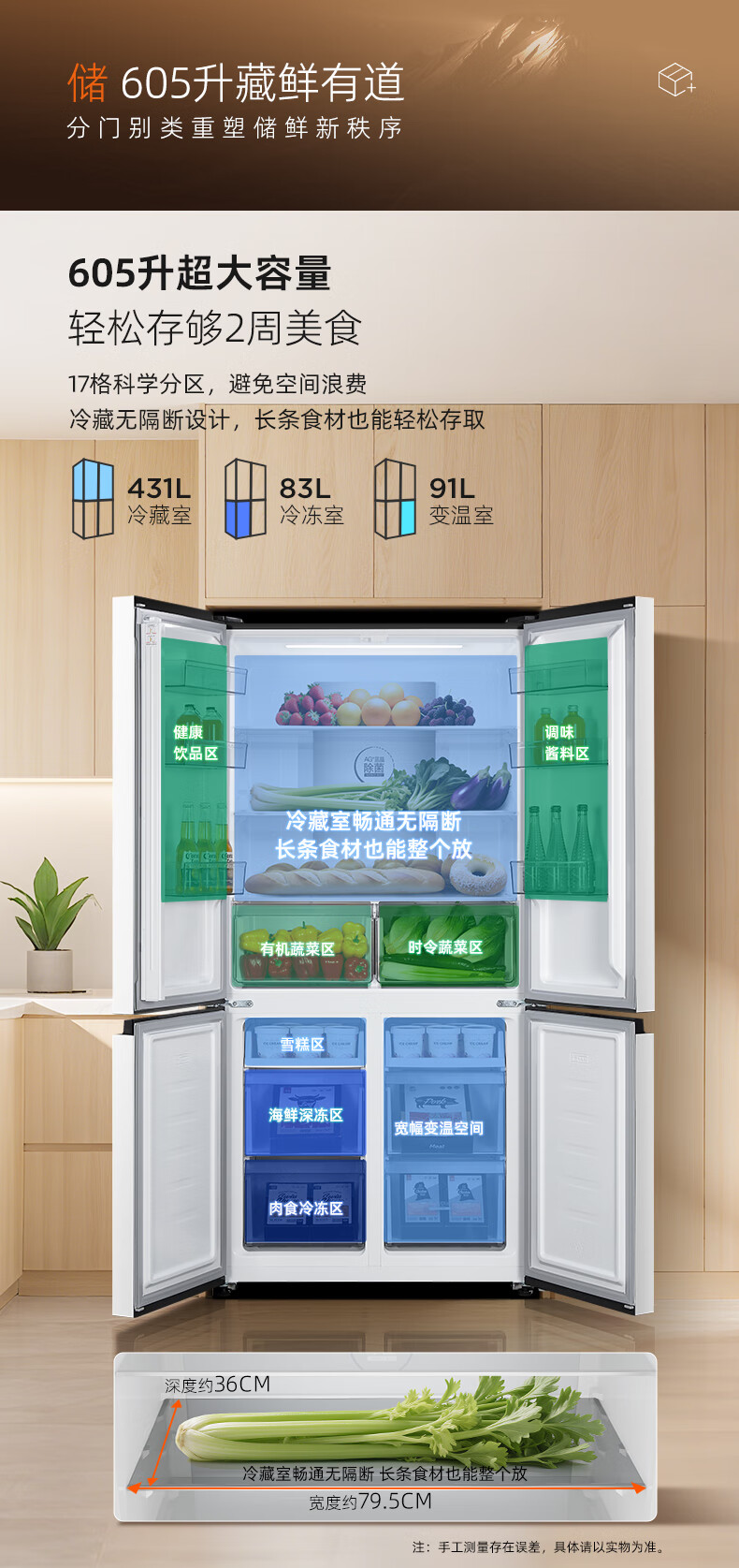 奥马(Homa) 605升超大容量一级能效双变频风冷无霜十字对开门四门双开门家用电冰箱 99.99%除菌率 605WDH/B