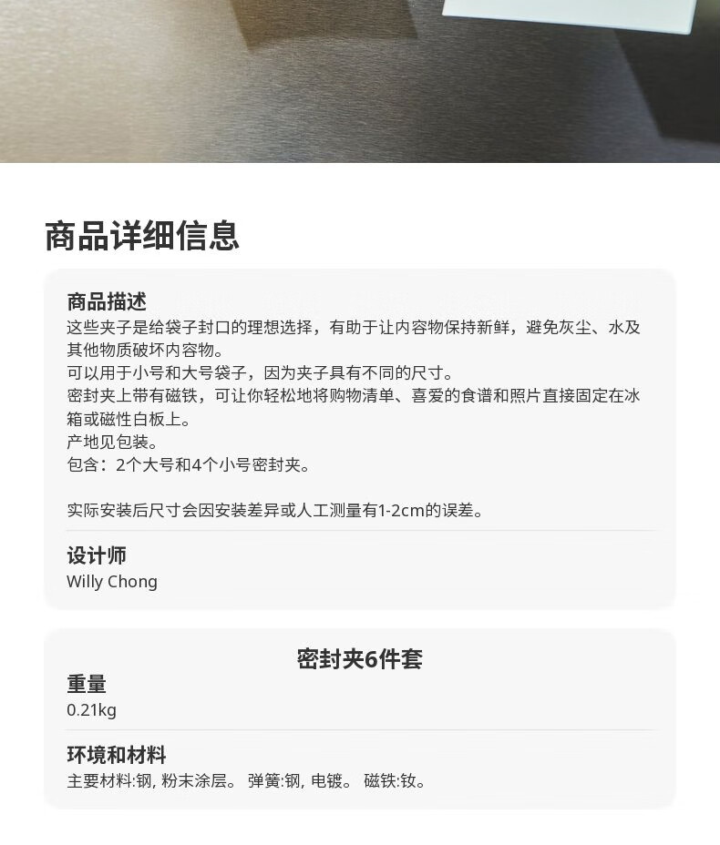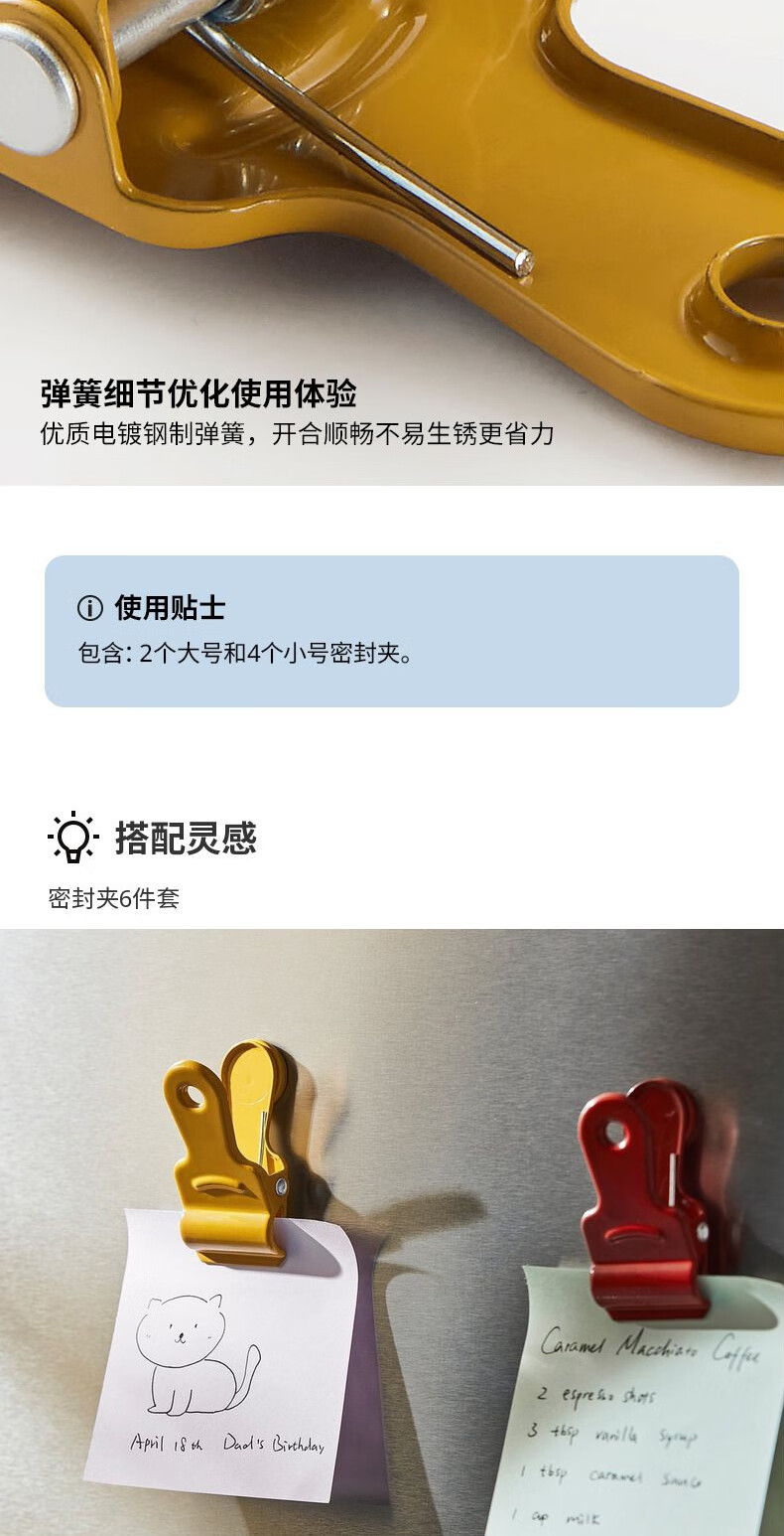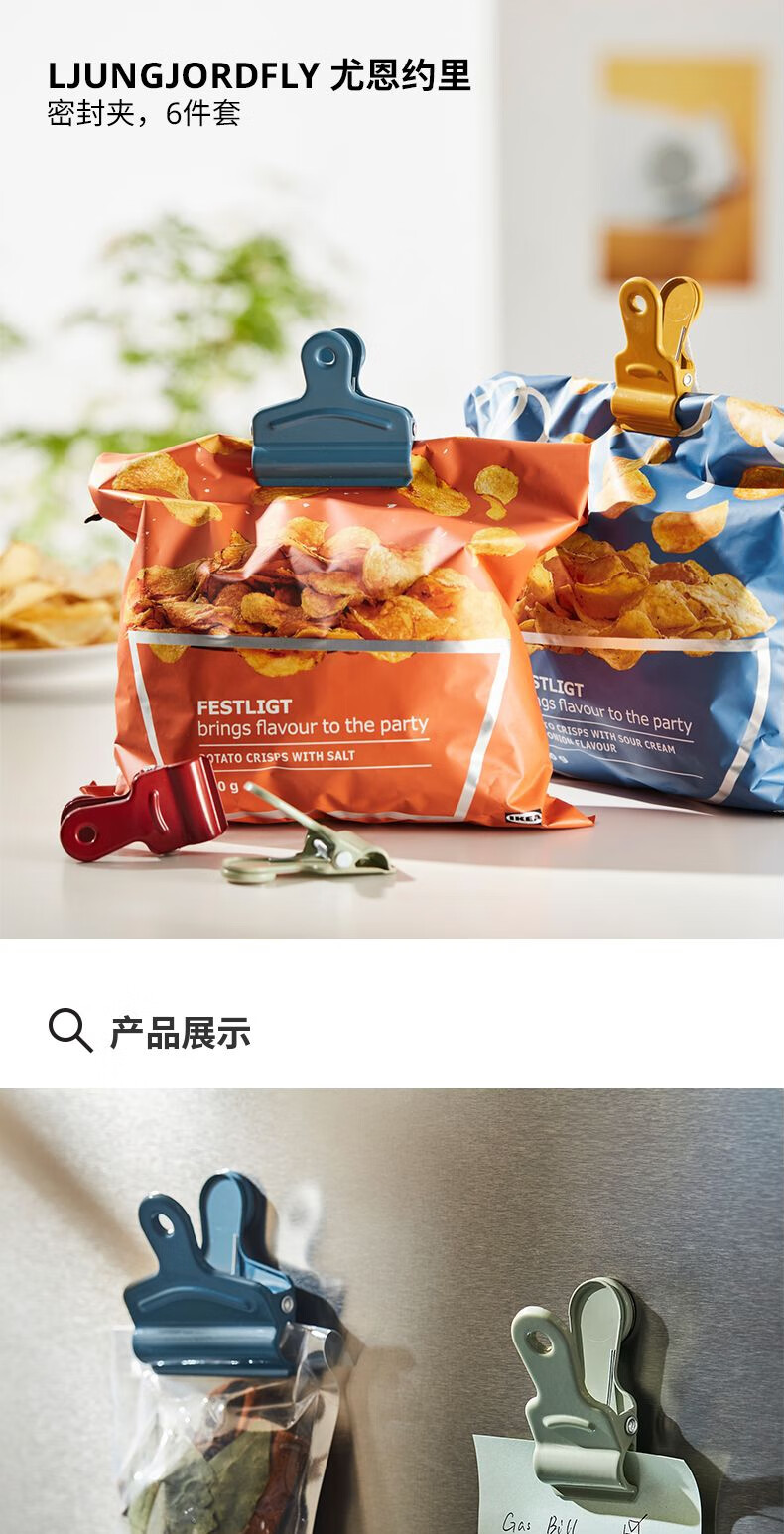 宜家(IKEA)【新品】LJUNGJORDFLY尤恩约里密封夹食品保鲜封口夹 多色密封夹6件套