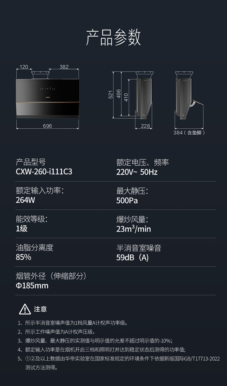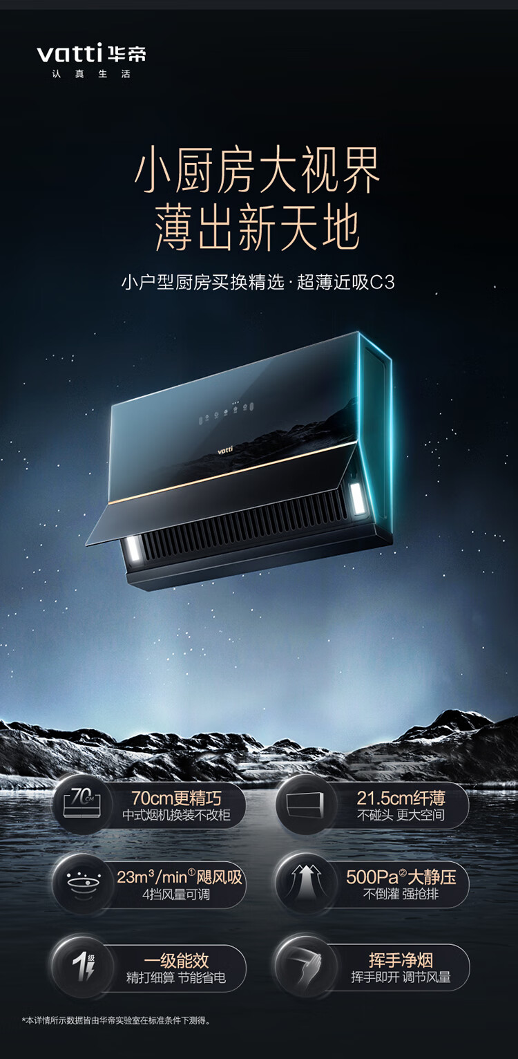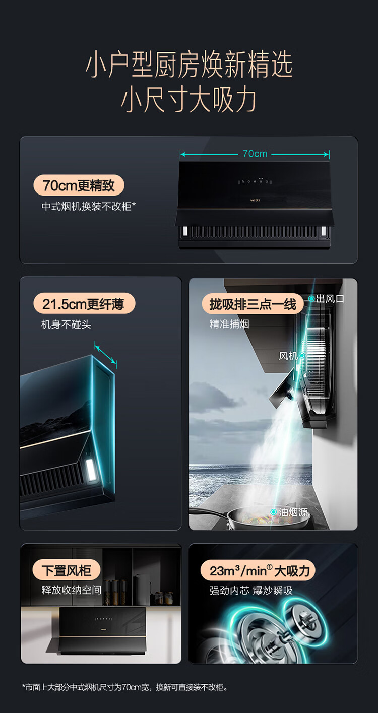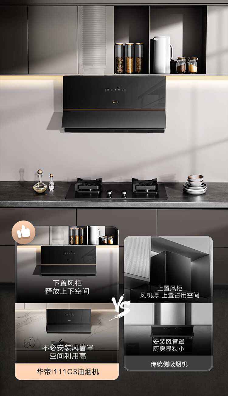 华帝(VATTI)补贴20%抽油烟机官方家用侧吸超薄小魔盒大吸力挥手智控换装吸油烟机 i111C3单品丨23风量700mm小尺寸 天然气(液化气咨询客服备注)