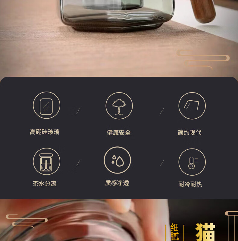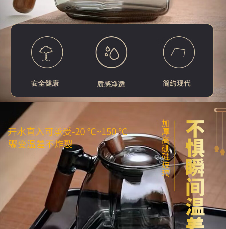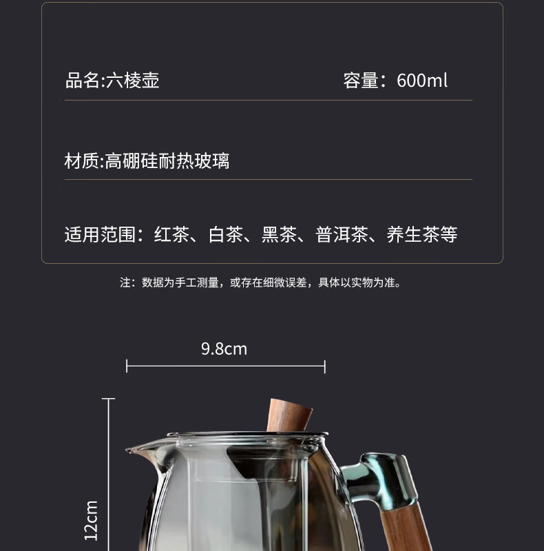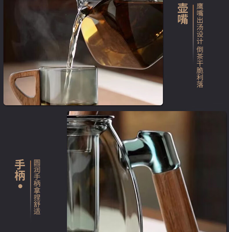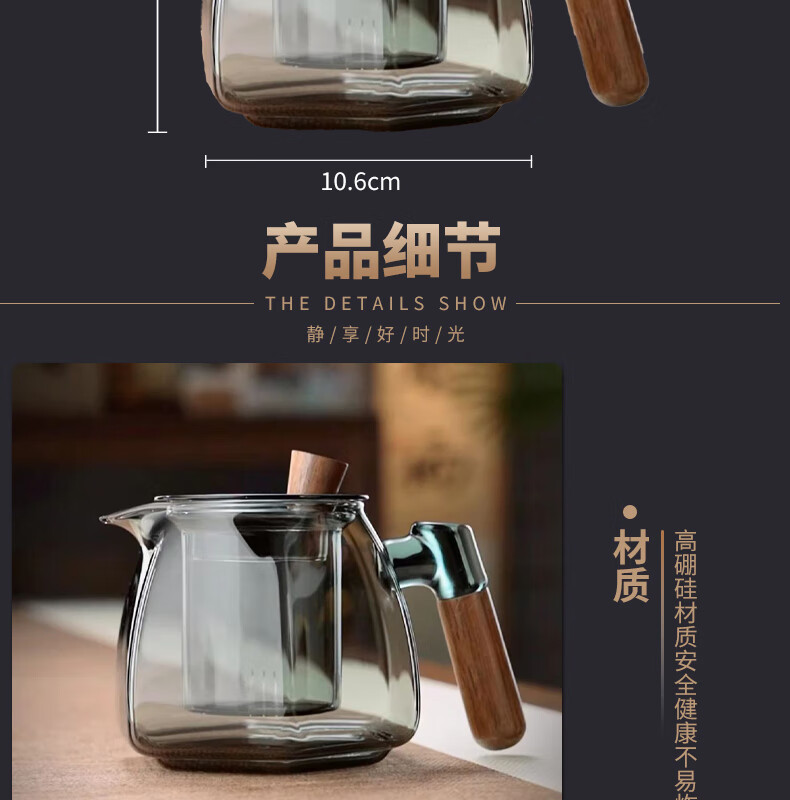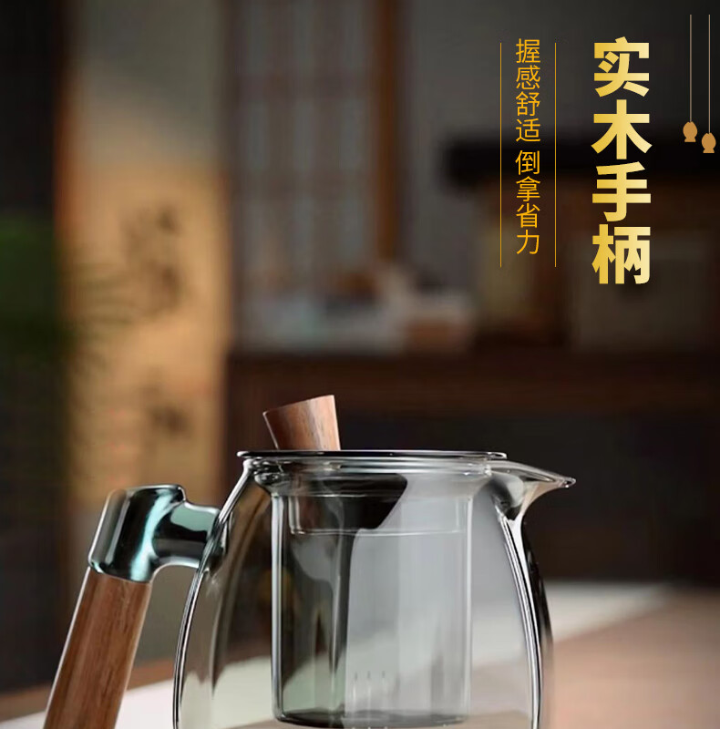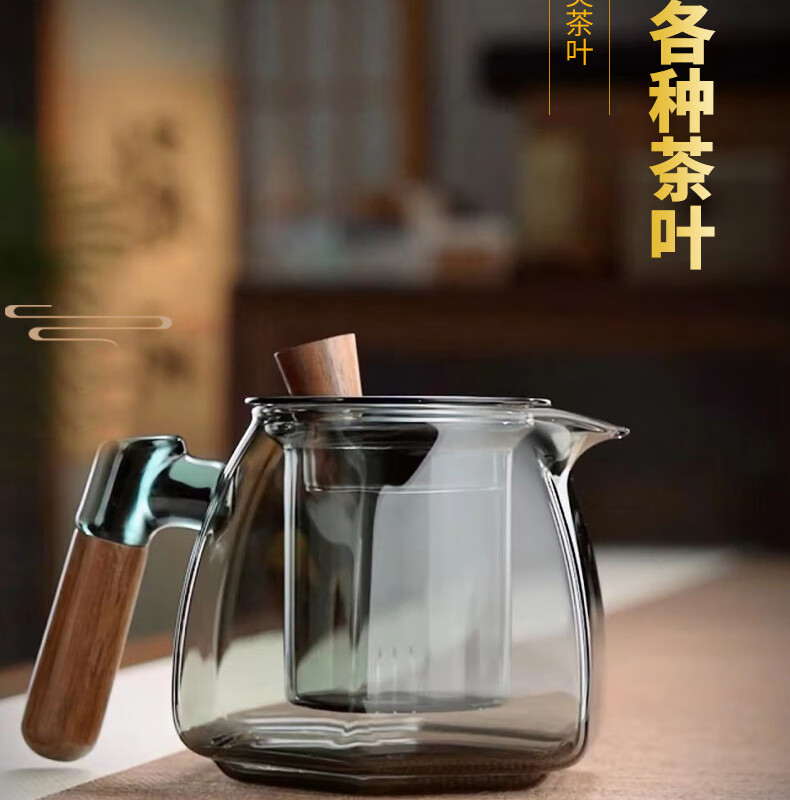 全度(Quandu) 加厚玻璃茶壶泡茶器耐高温烟灰色玻璃花茶壶过滤壶功夫茶具