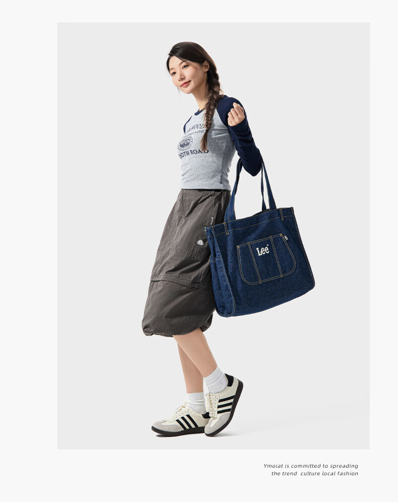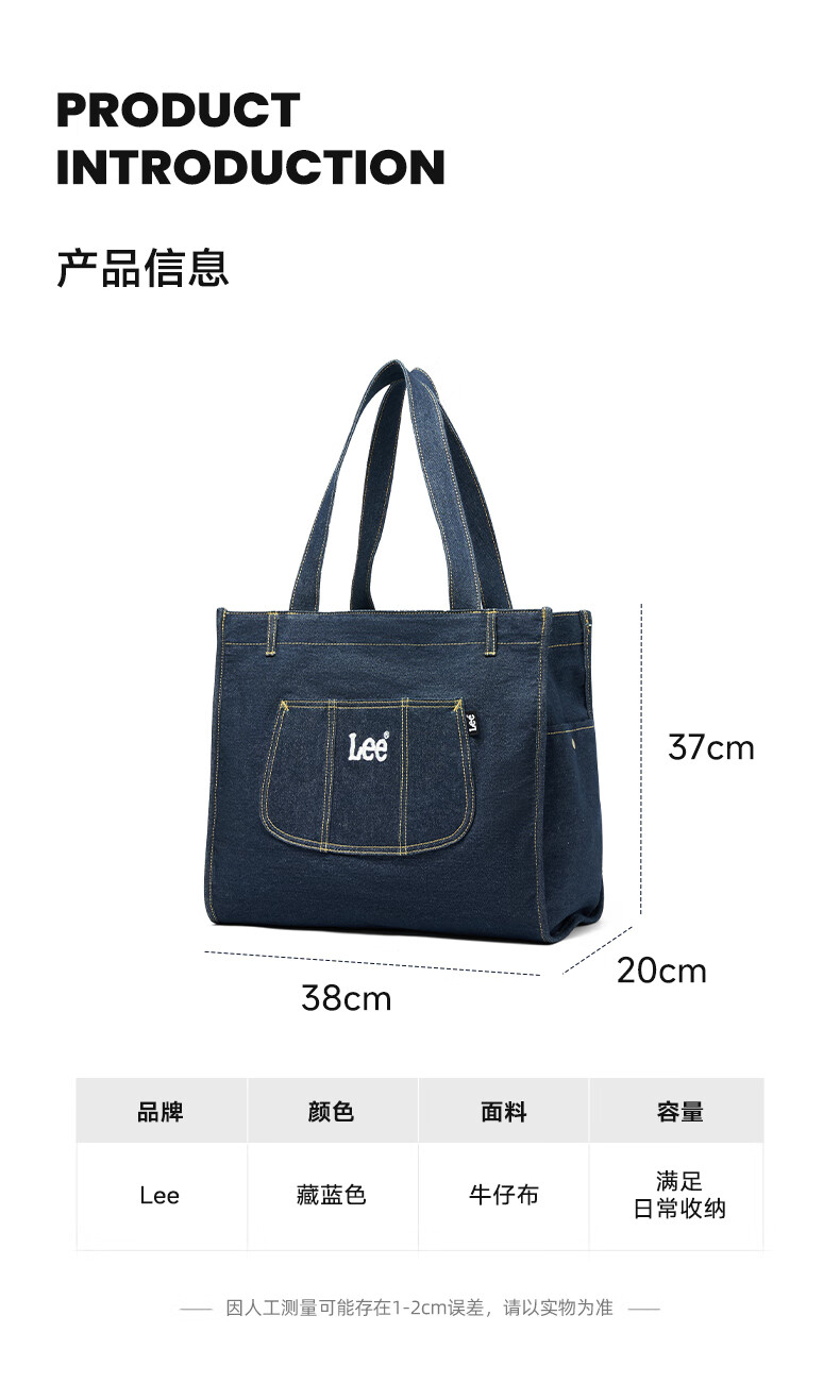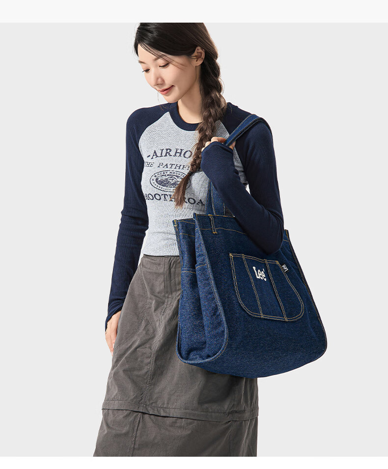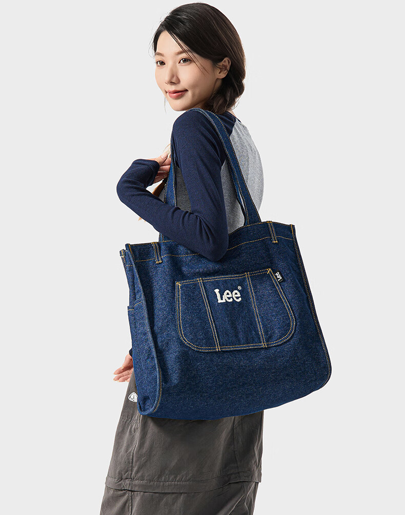 Lee高颜值托特包新款百搭通勤大容量包包女简约时尚单肩包 藏蓝色