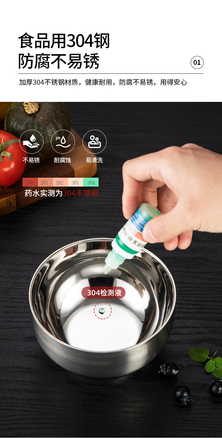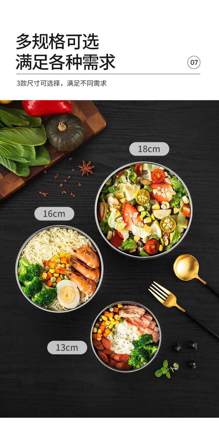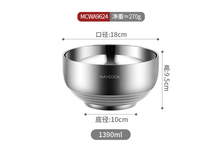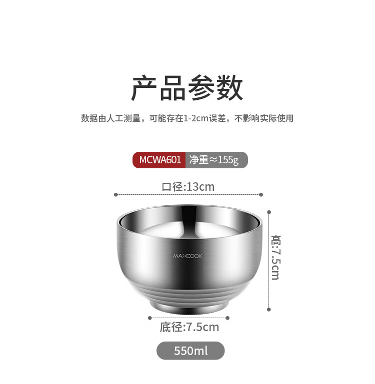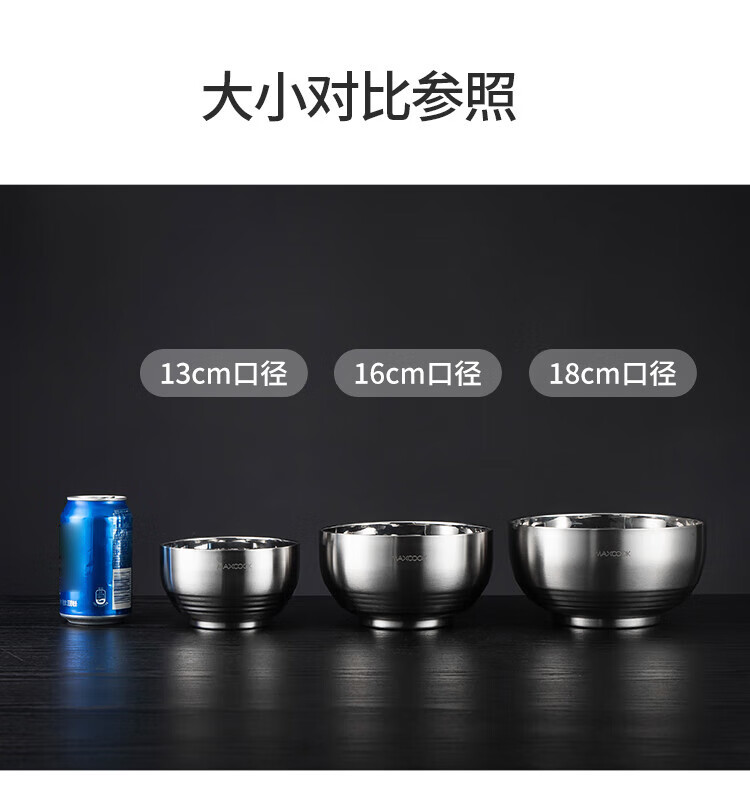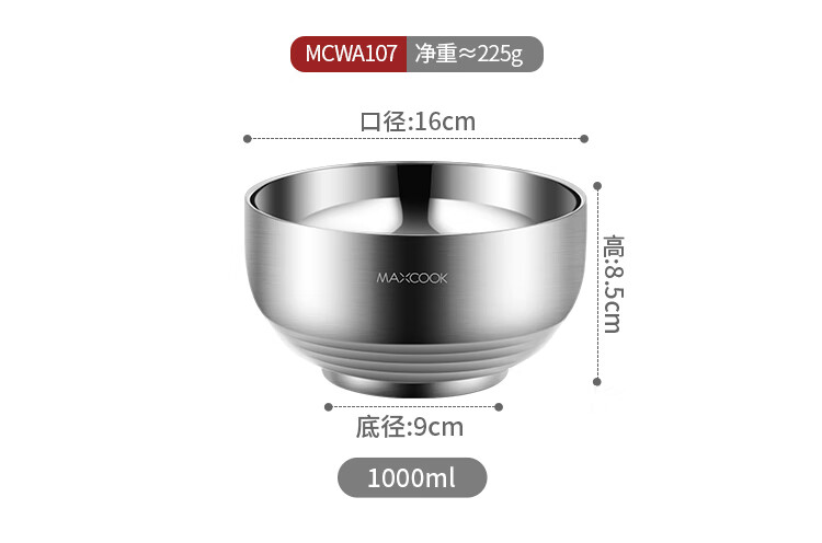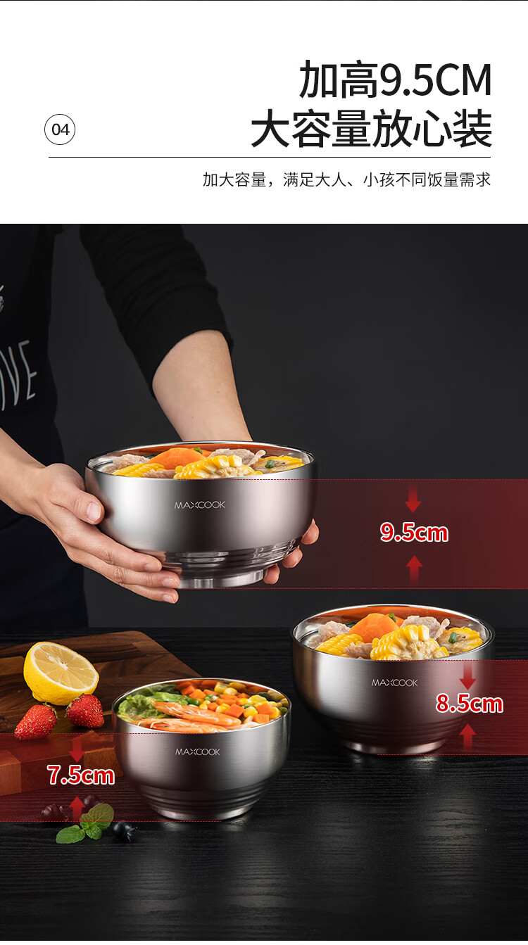 美厨(MAXCOOK)304不锈钢碗 汤碗双层隔热餐具面碗16CM MCWA107