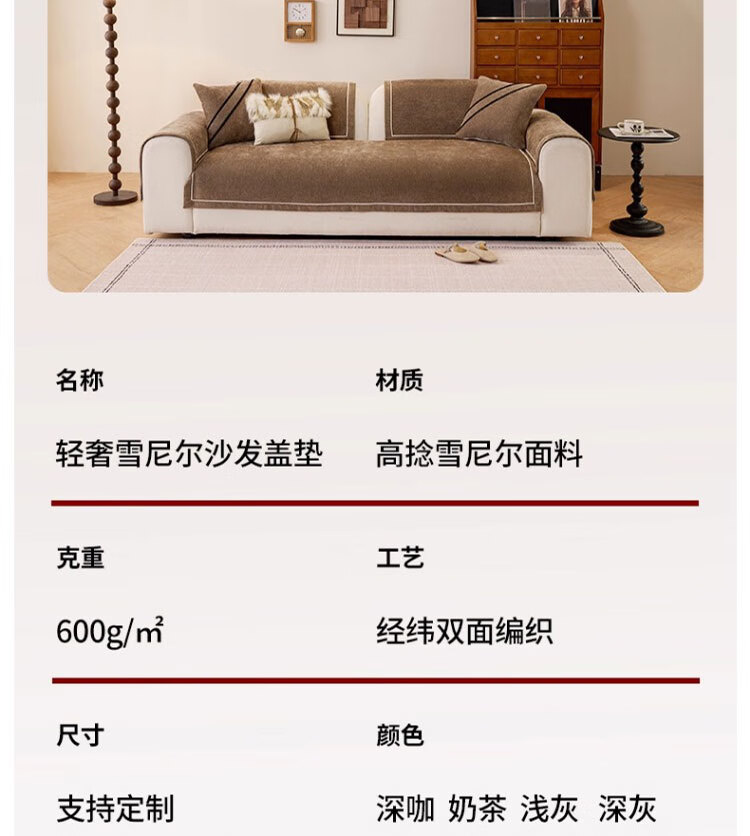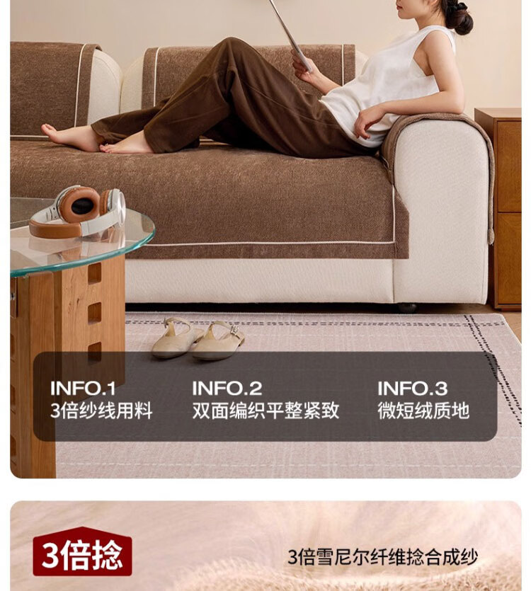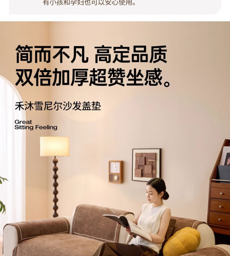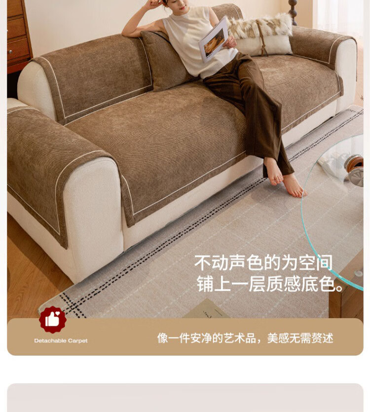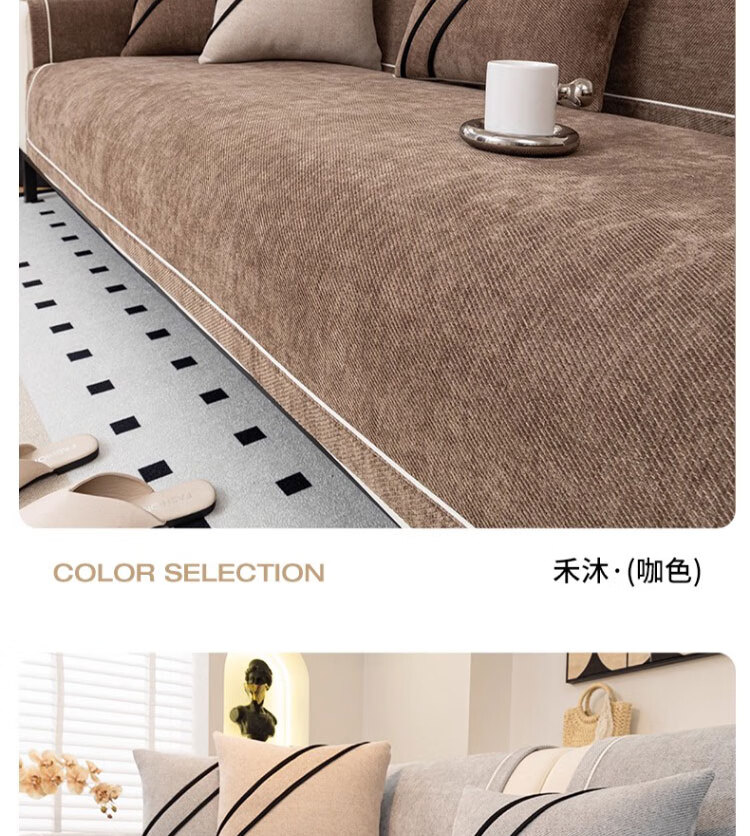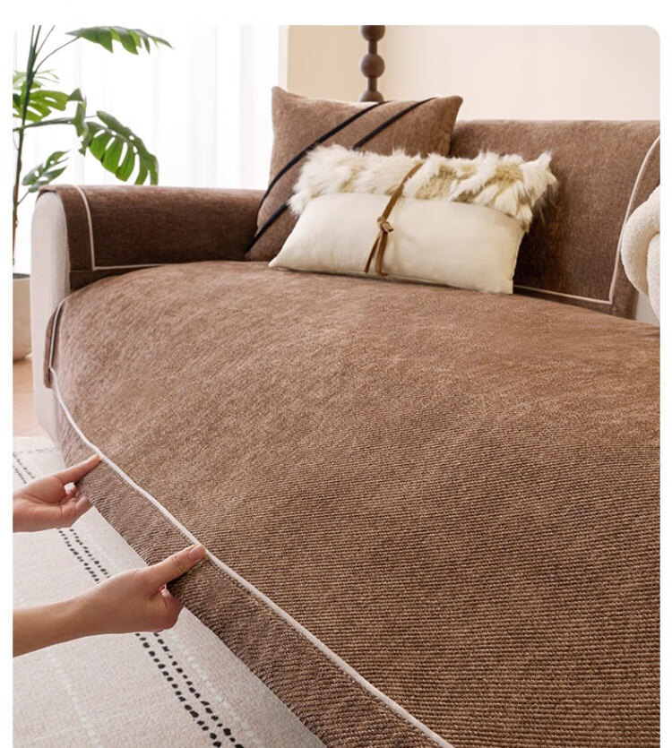 无印良品沙发垫四季通用防滑2025年新款雪尼尔耐磨皮沙发专用座垫罩套盖布 细腻雪尼尔-禾沐-深咖(耐抓不起球 加密硅胶底防滑) 90X240cm (大三人位/四人位)
