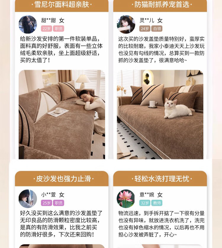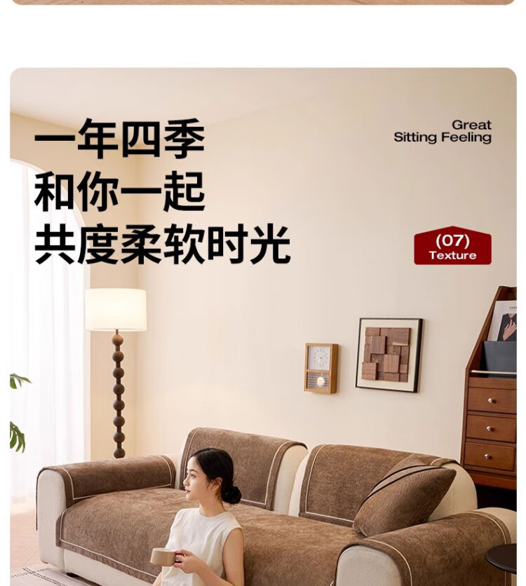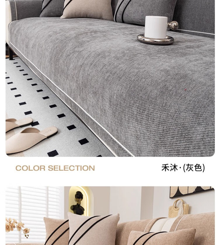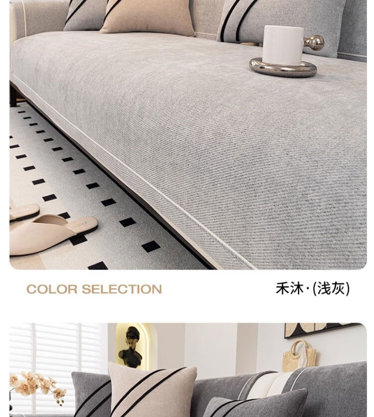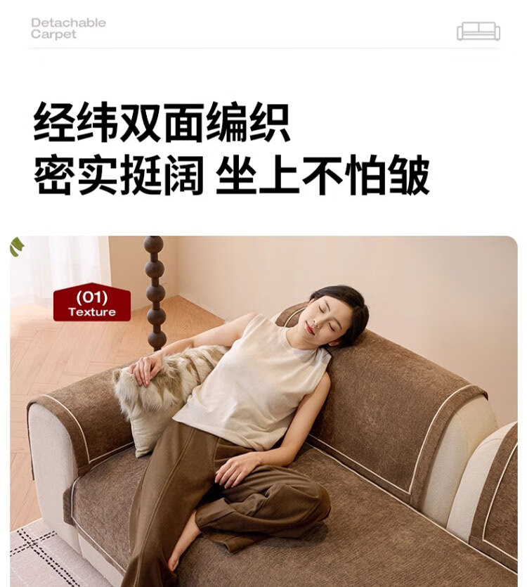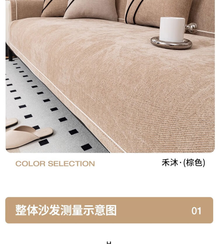 无印良品沙发垫四季通用防滑2025年新款雪尼尔耐磨皮沙发专用座垫罩套盖布 细腻雪尼尔-禾沐-深咖(耐抓不起球 加密硅胶底防滑) 90X240cm (大三人位/四人位)