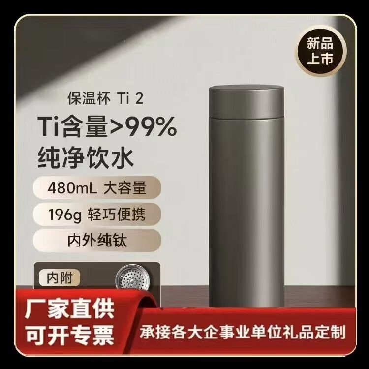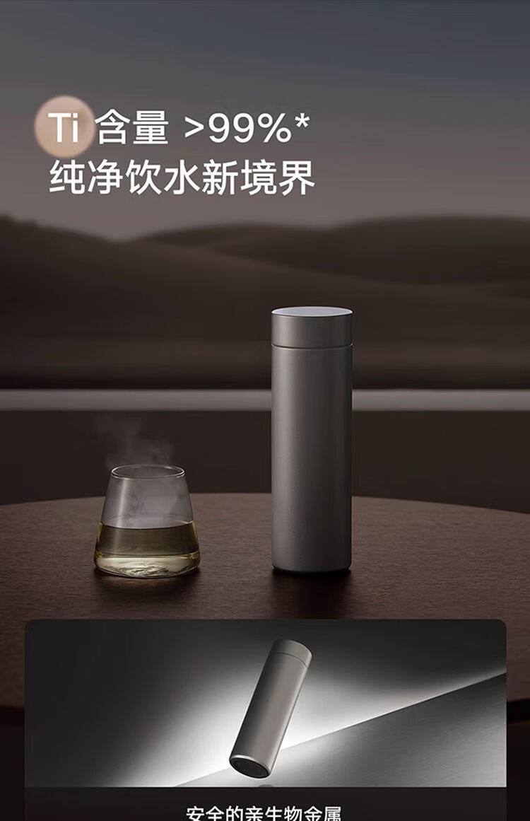 简漾纯钛保温杯男女2025新款高档水杯子便携泡茶杯茶水分离钛杯 纯钛灰色 500毫升