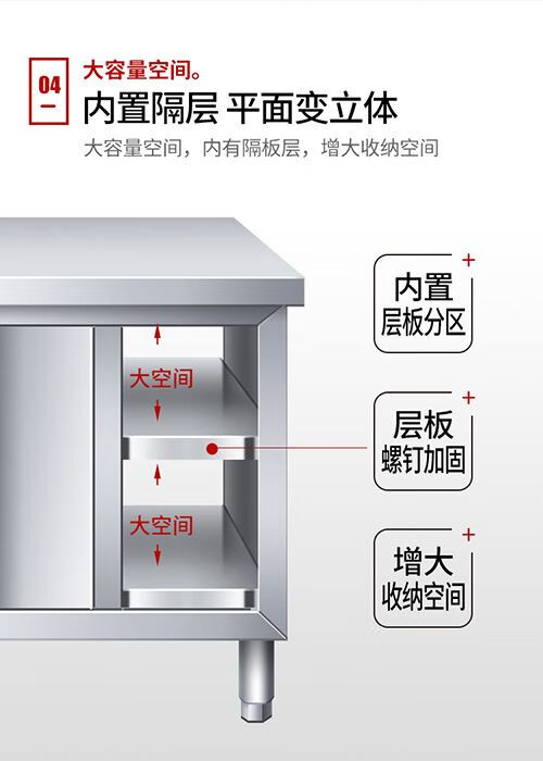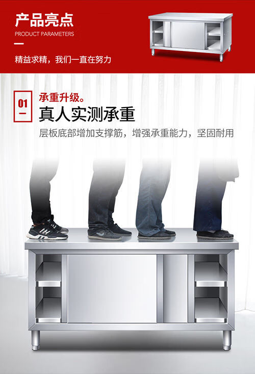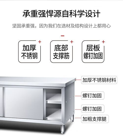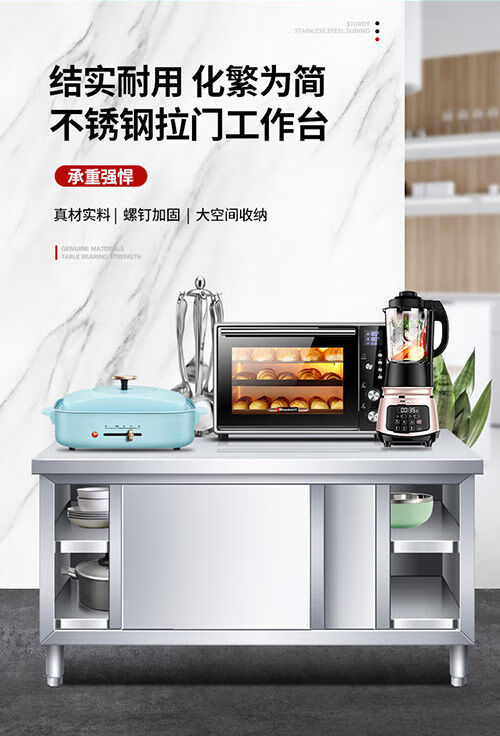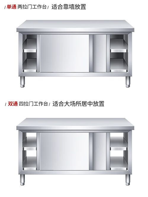 咏夏304不锈钢工作台厨房橱柜商用餐饮店桌子家用操作台推拉门置物架 不锈钢单通拉门 304长80宽50高80