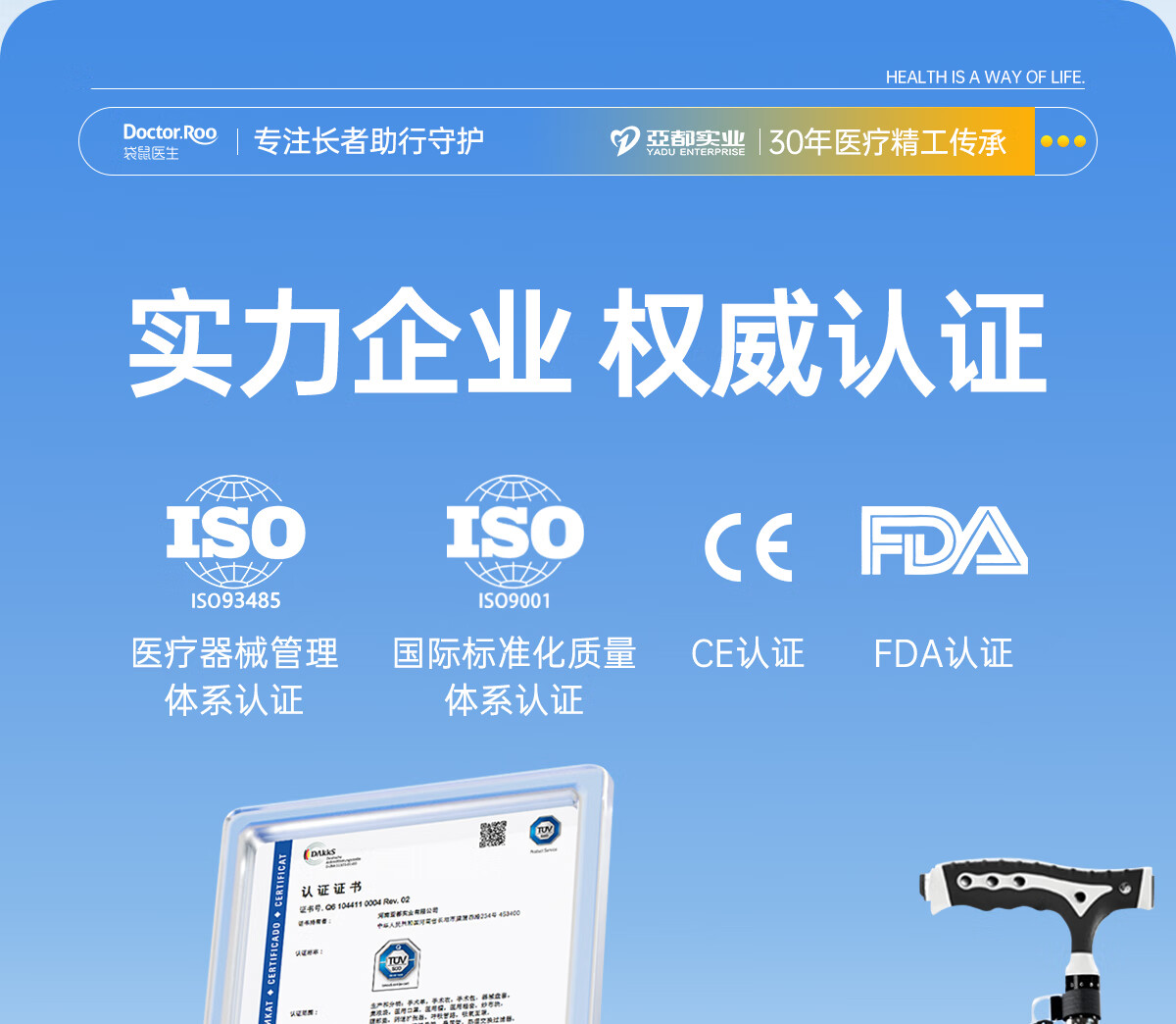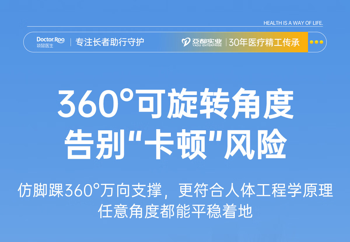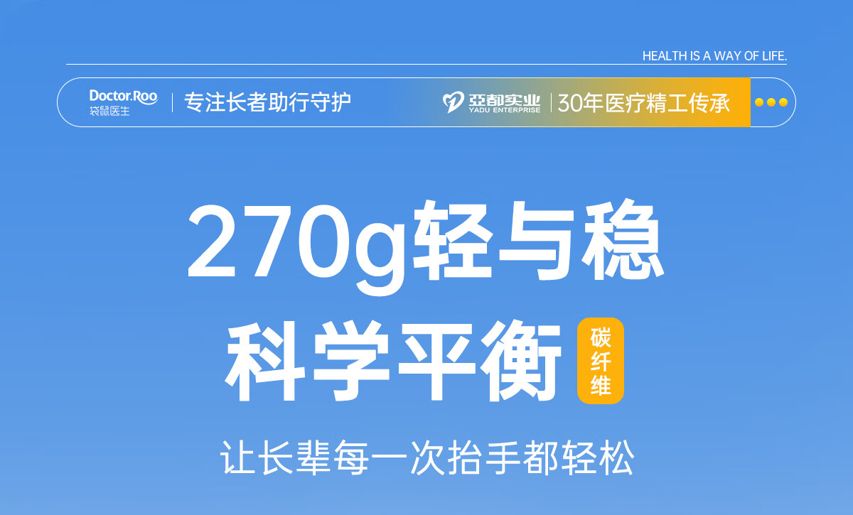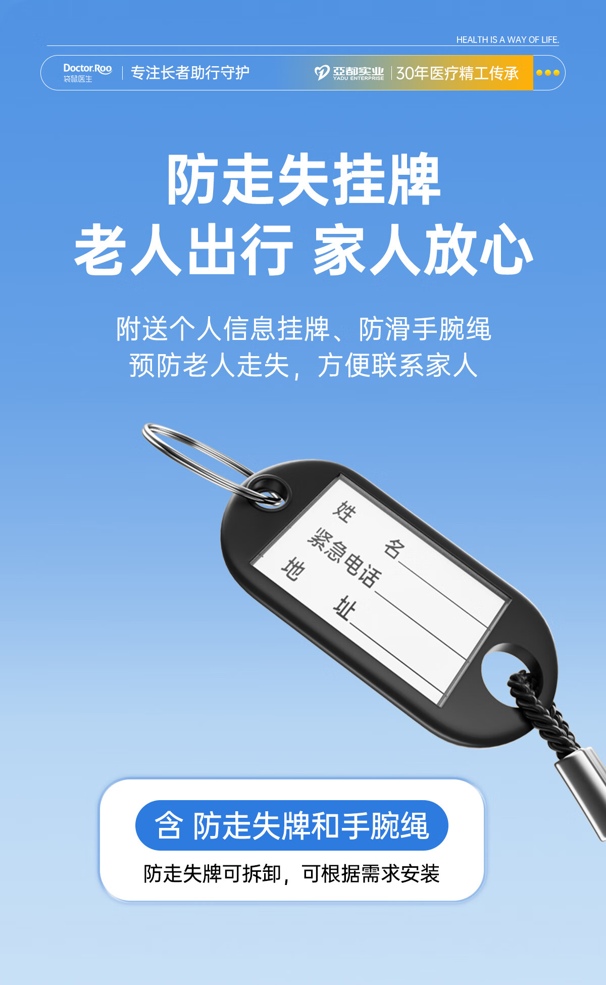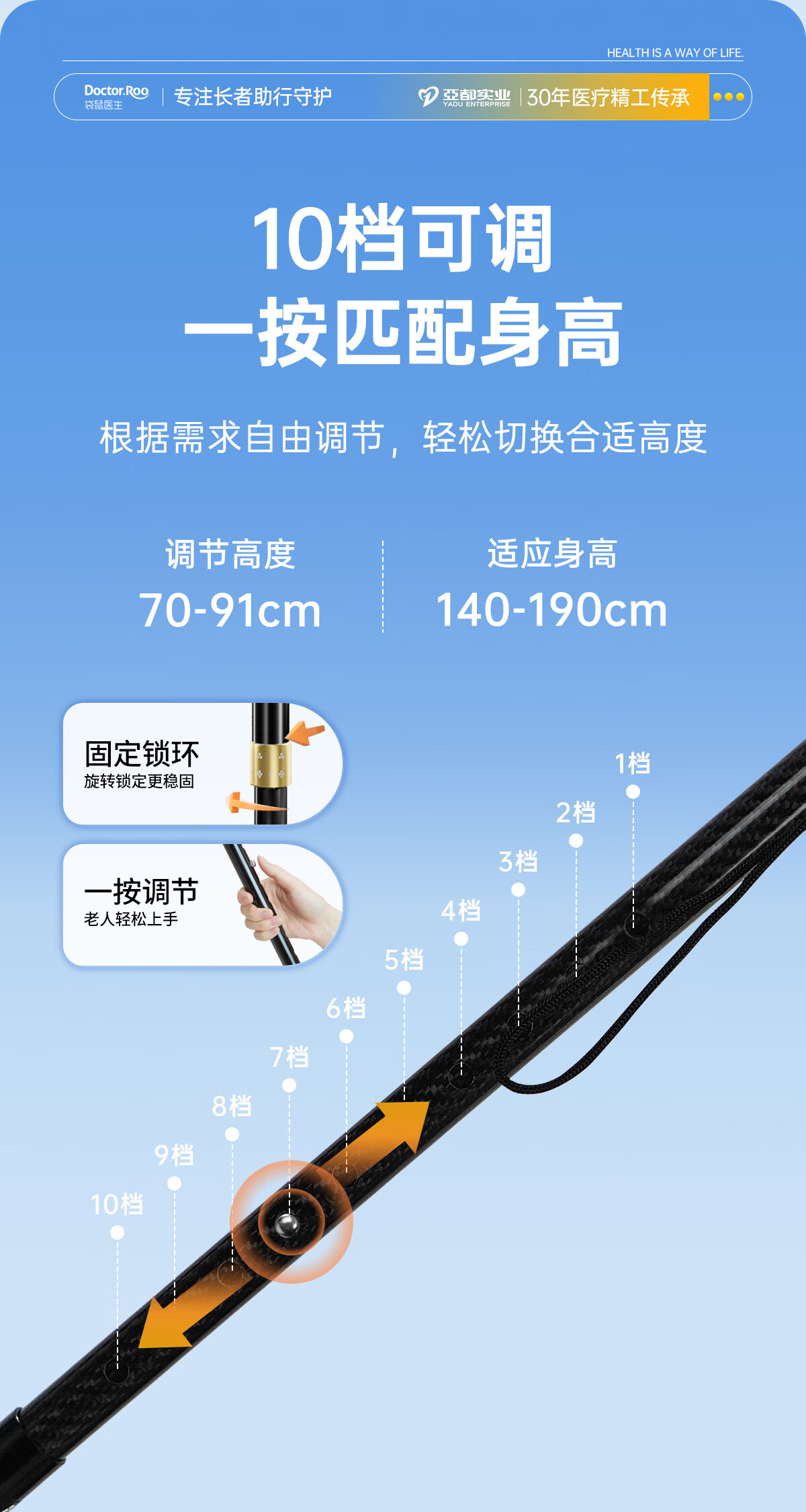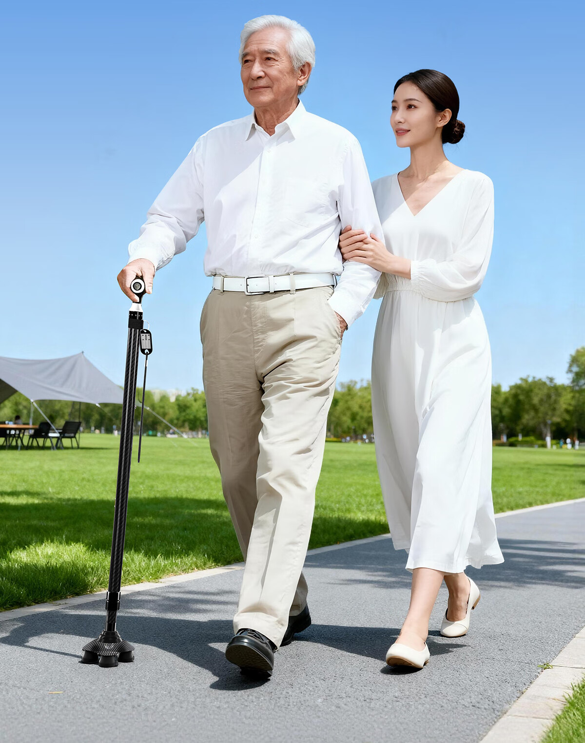 袋鼠医生 拐杖老人专用碳纤维拐棍骨折医用防摔防滑四脚手杖 带灯 双底座