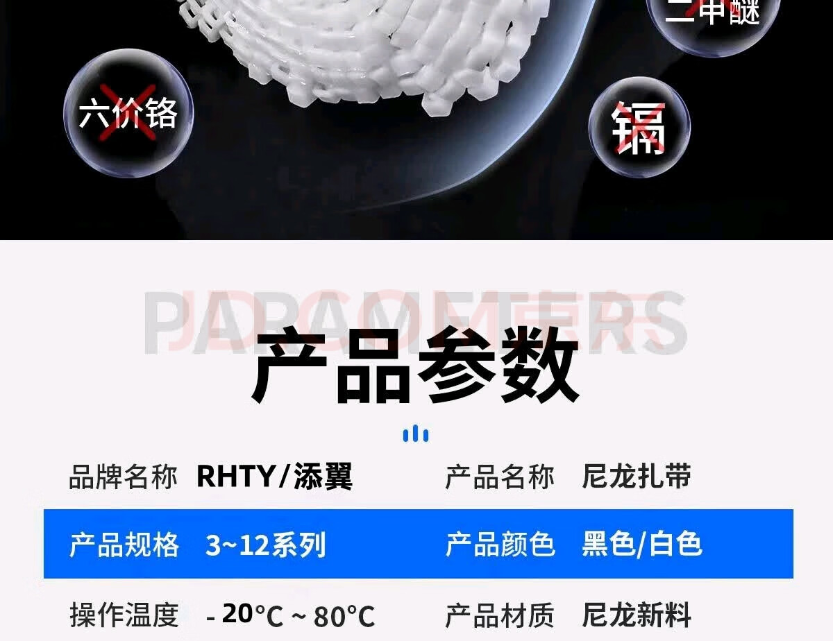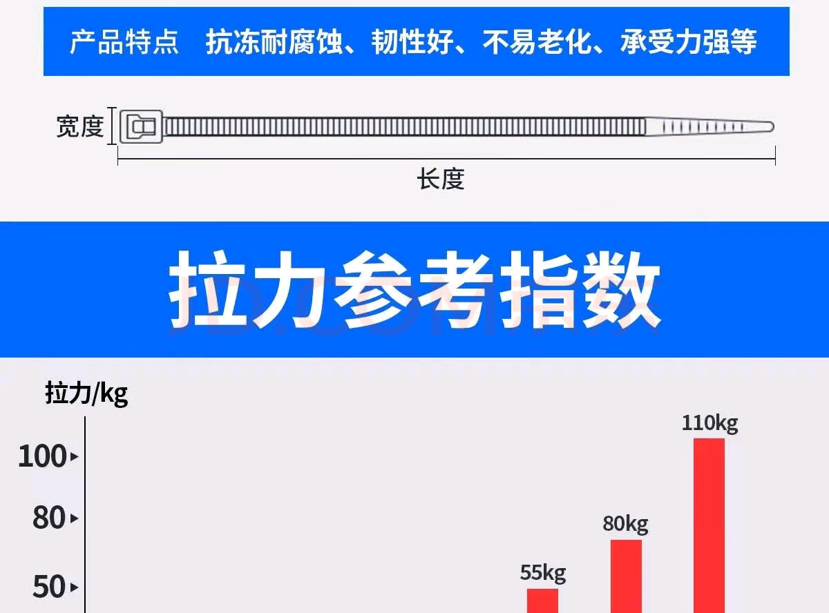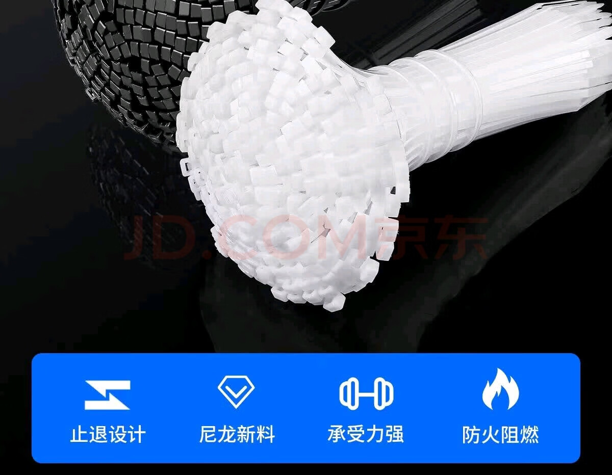 添翼 自锁式尼龙扎带 理线带 主机装机 园艺 线缆桌面理线束线捆扎绑带 白色4.7*300mm 100根