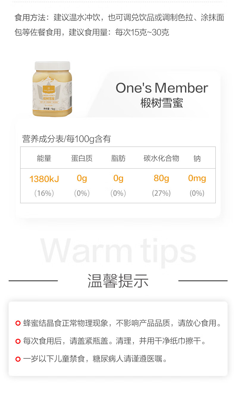 1号会员店(OM)椴树雪蜜1kg 长白山真蜂蜜年节送礼长辈礼物