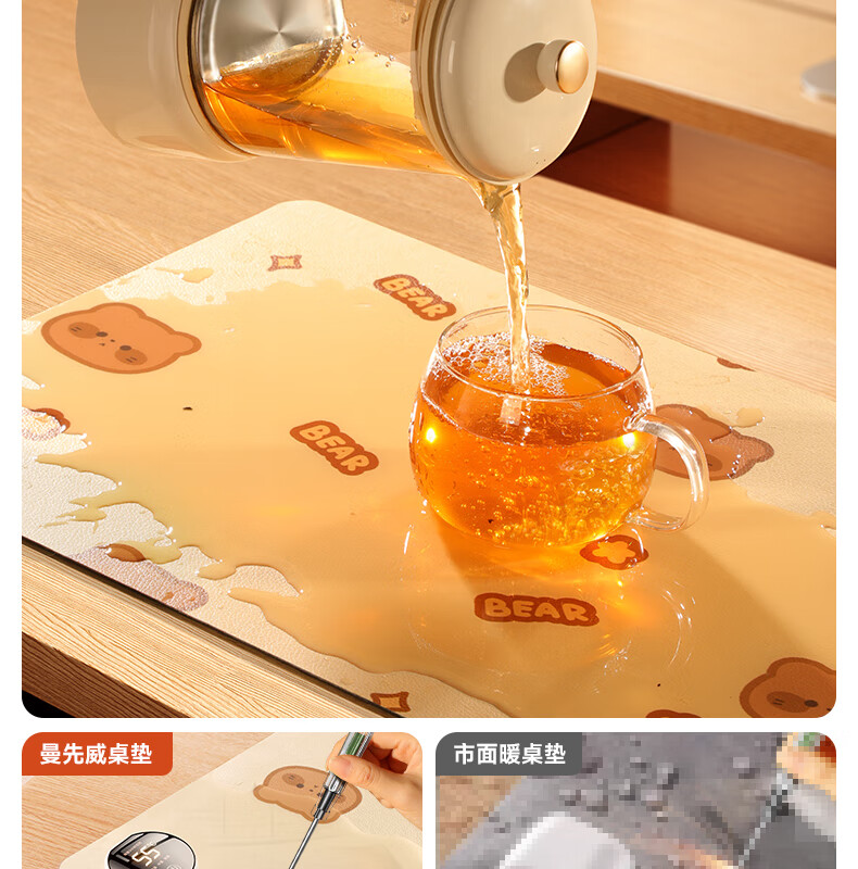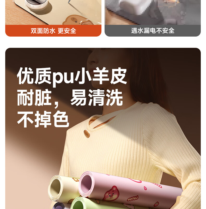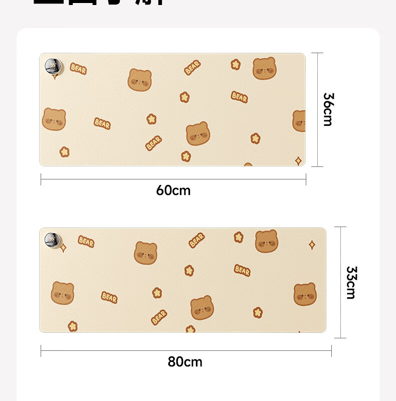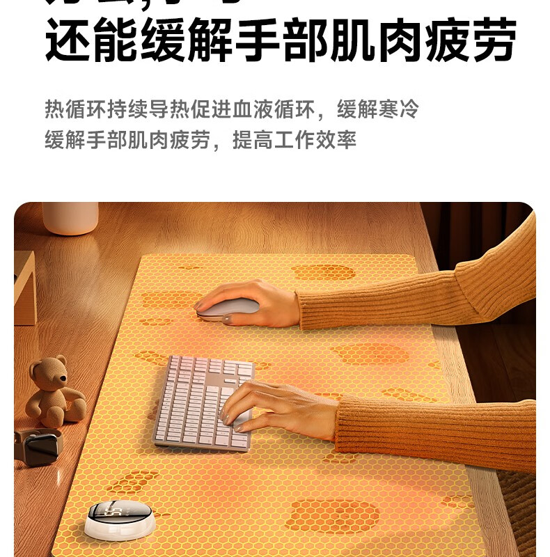 AILUKI日本高端加热鼠标垫暖桌垫办公室冬天写字暖手超大学生宿舍电脑桌 泰迪-60*36CM 防水防滑