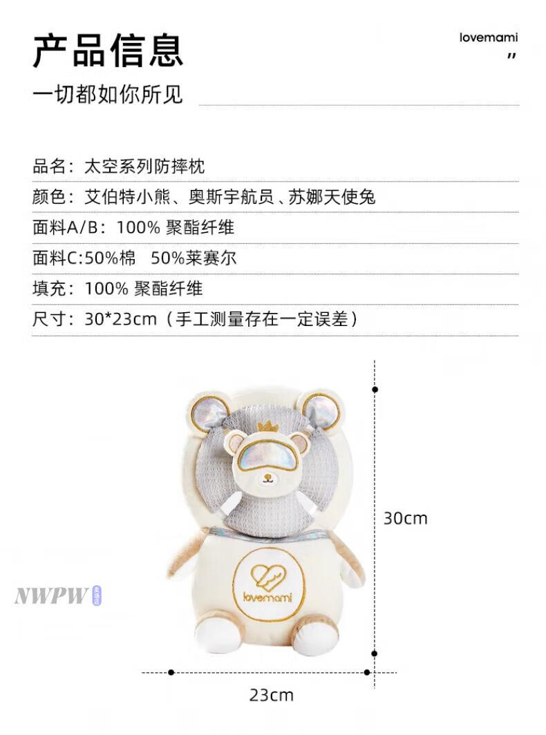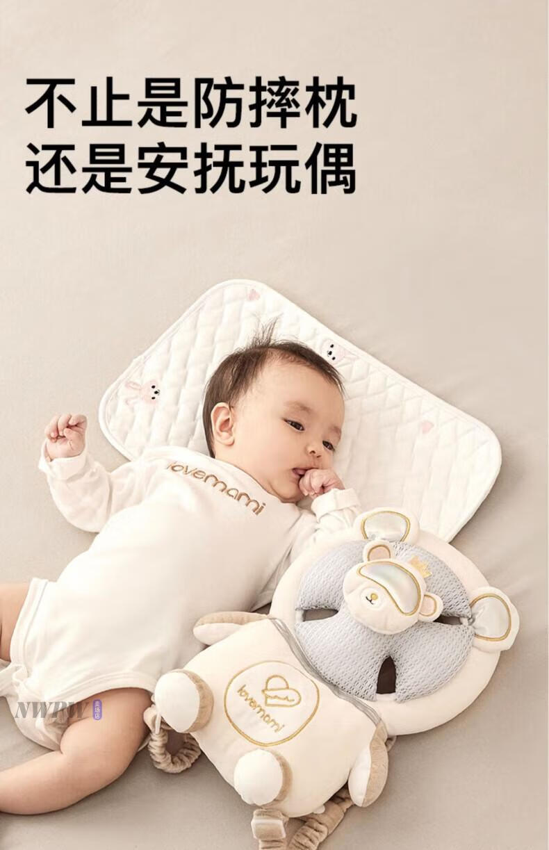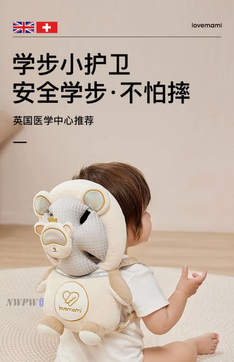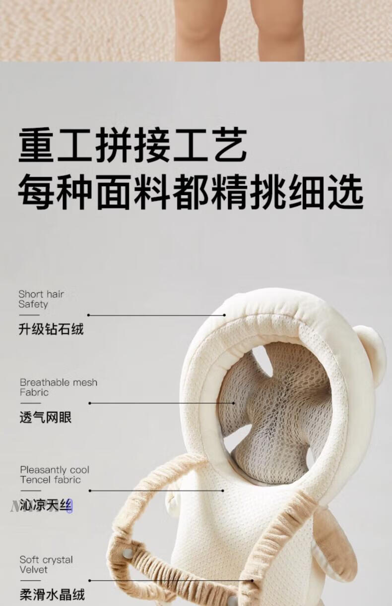 DEATKN德国防摔神器宝宝护头婴儿防摔帽学步护头神器防撞头部保护垫 艾伯特小熊【升级透气款】 30x23x1cm