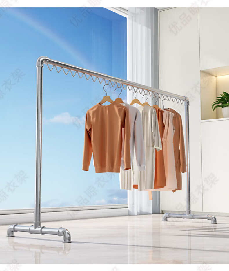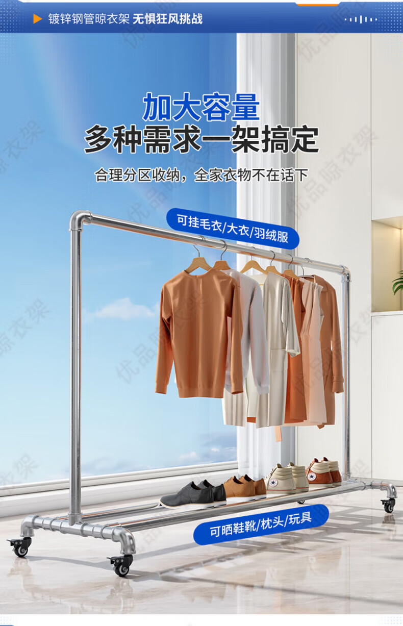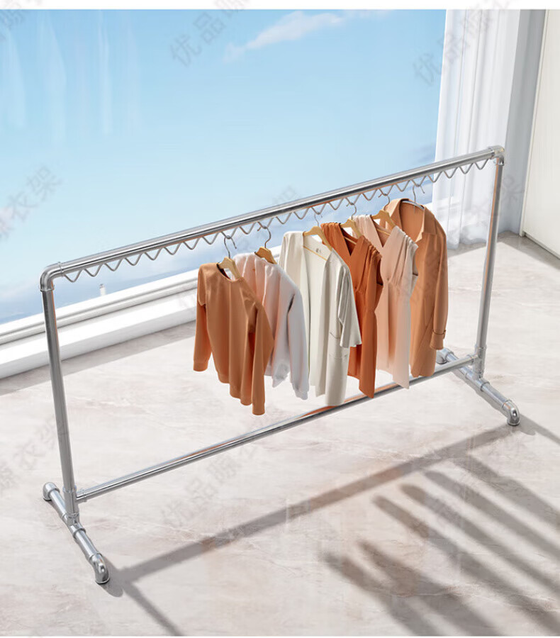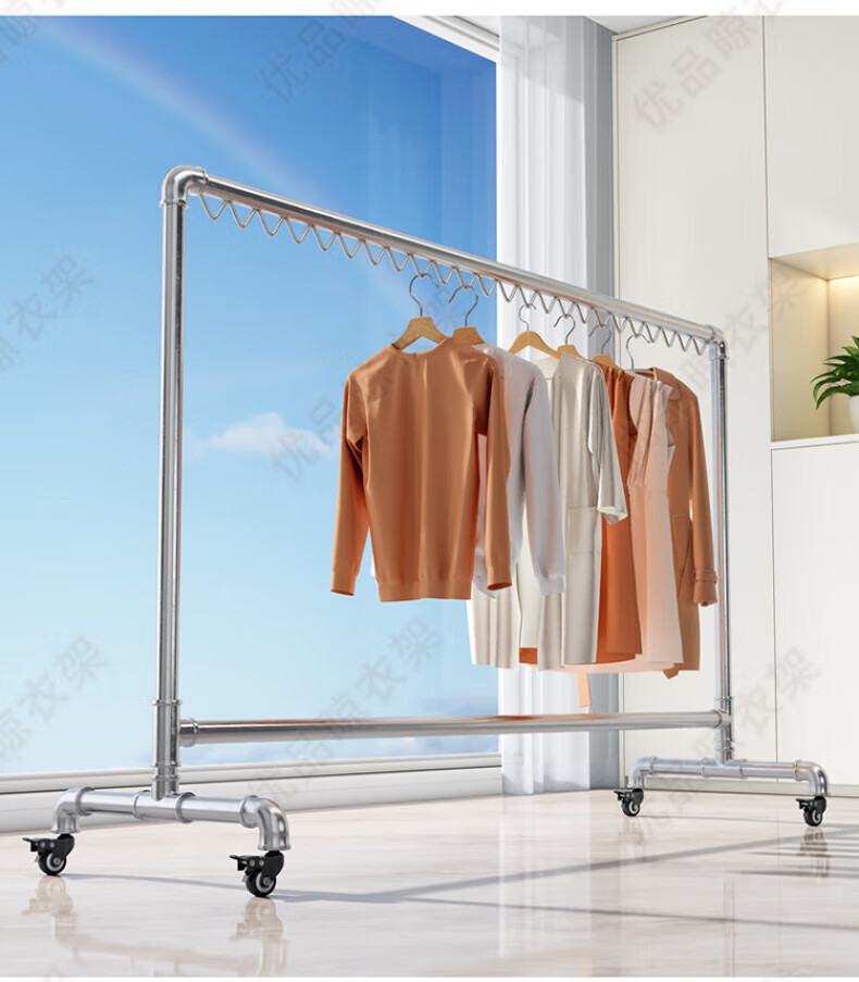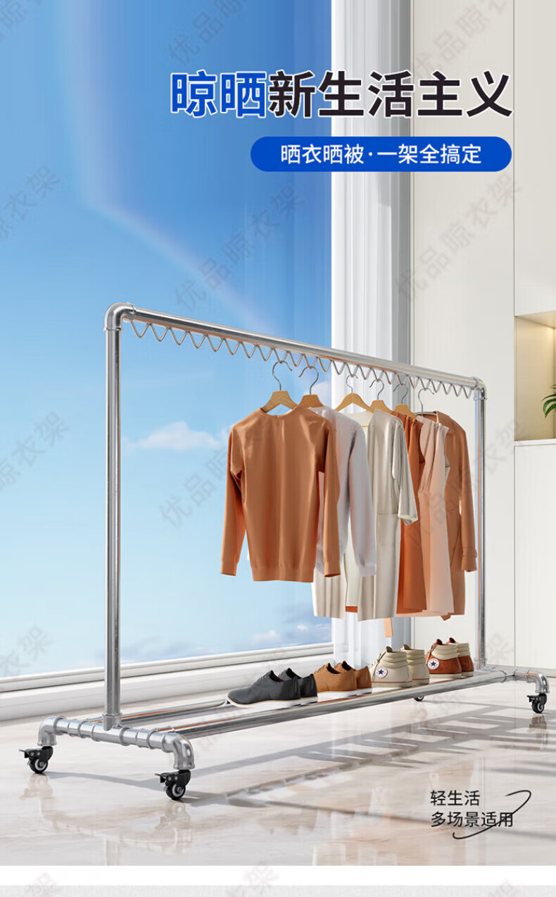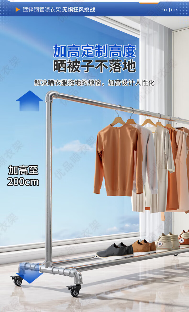 DEATKN加粗钢管晾衣架凉衣架晾衣杆落地阳台户外挂衣服防风晒被带轮 加粗钢管长100*高100
