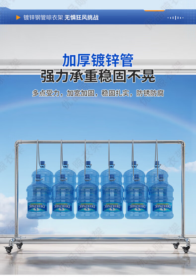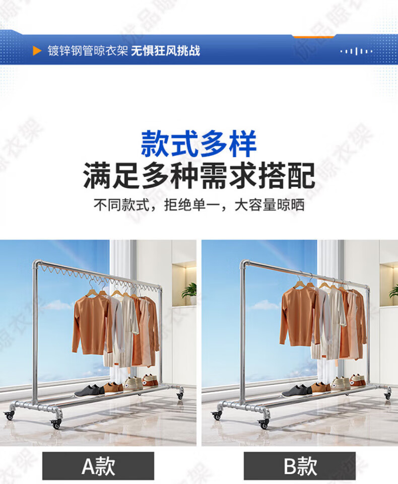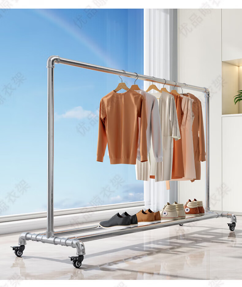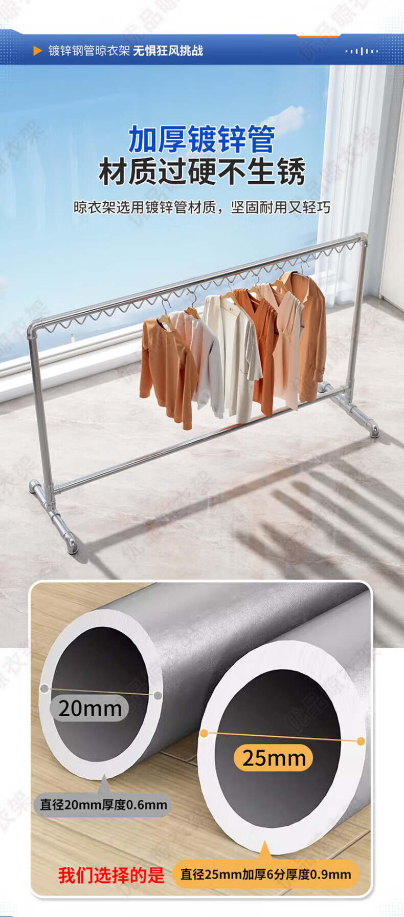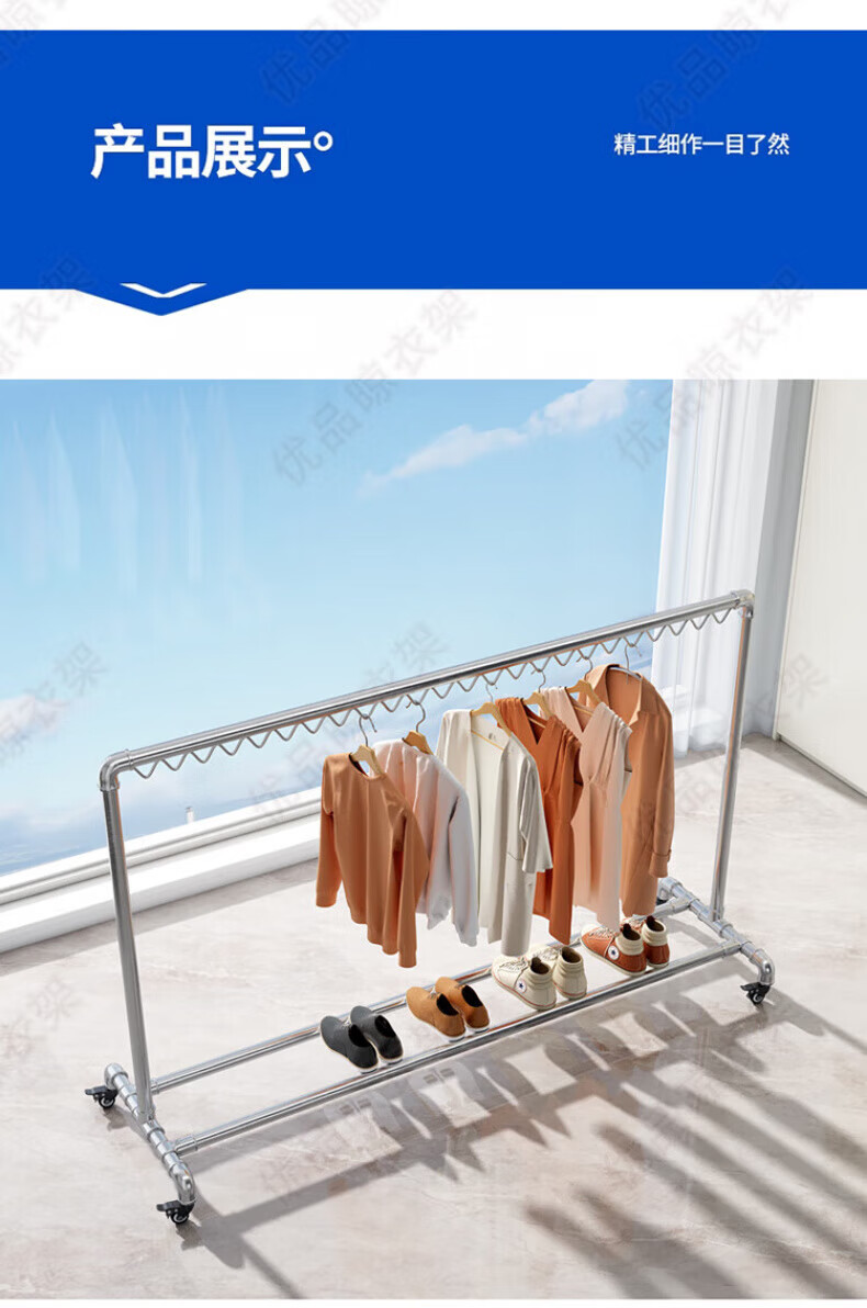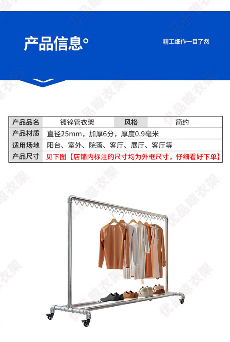 DEATKN加粗钢管晾衣架凉衣架晾衣杆落地阳台户外挂衣服防风晒被带轮 加粗钢管长100*高100