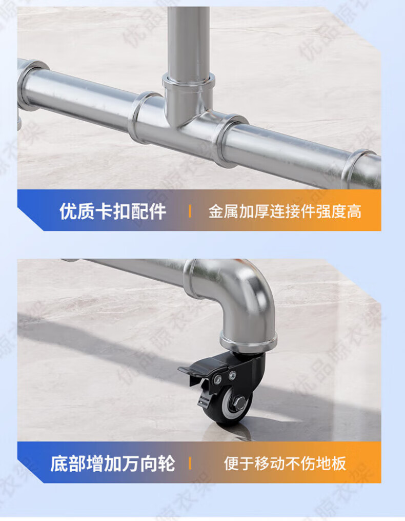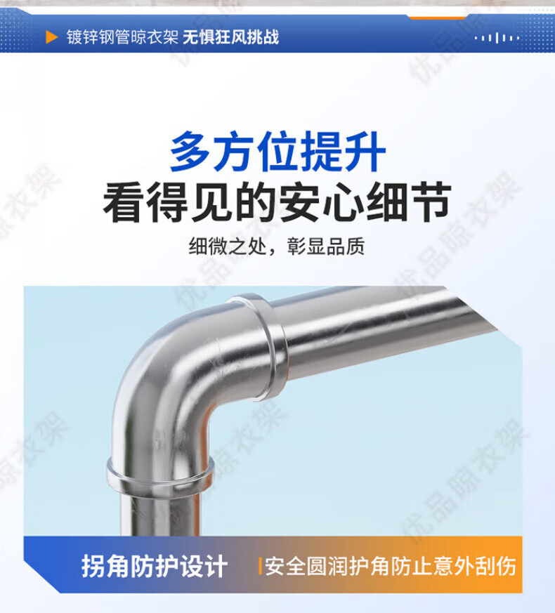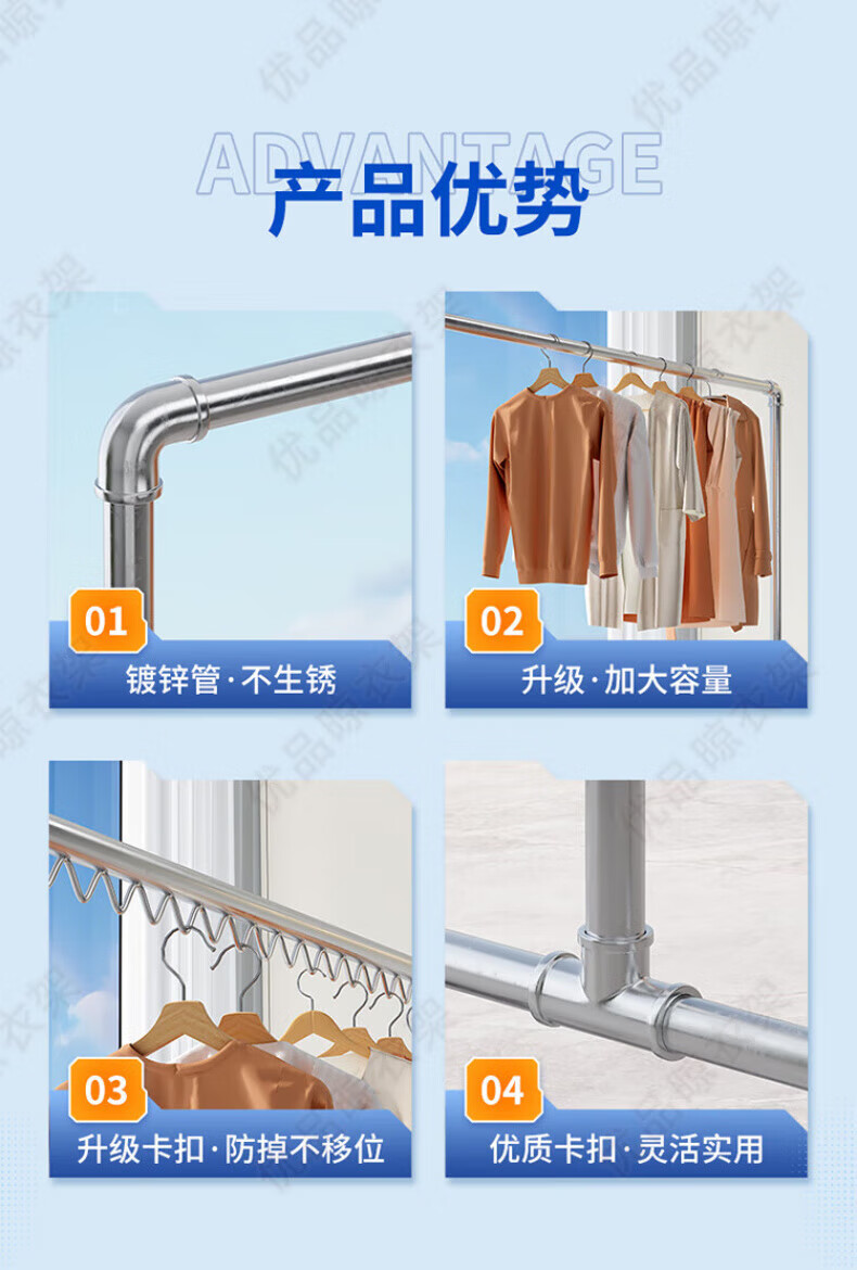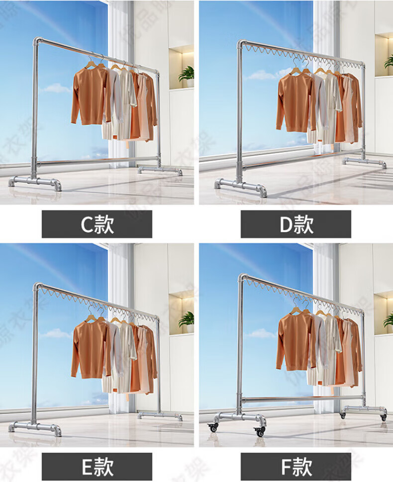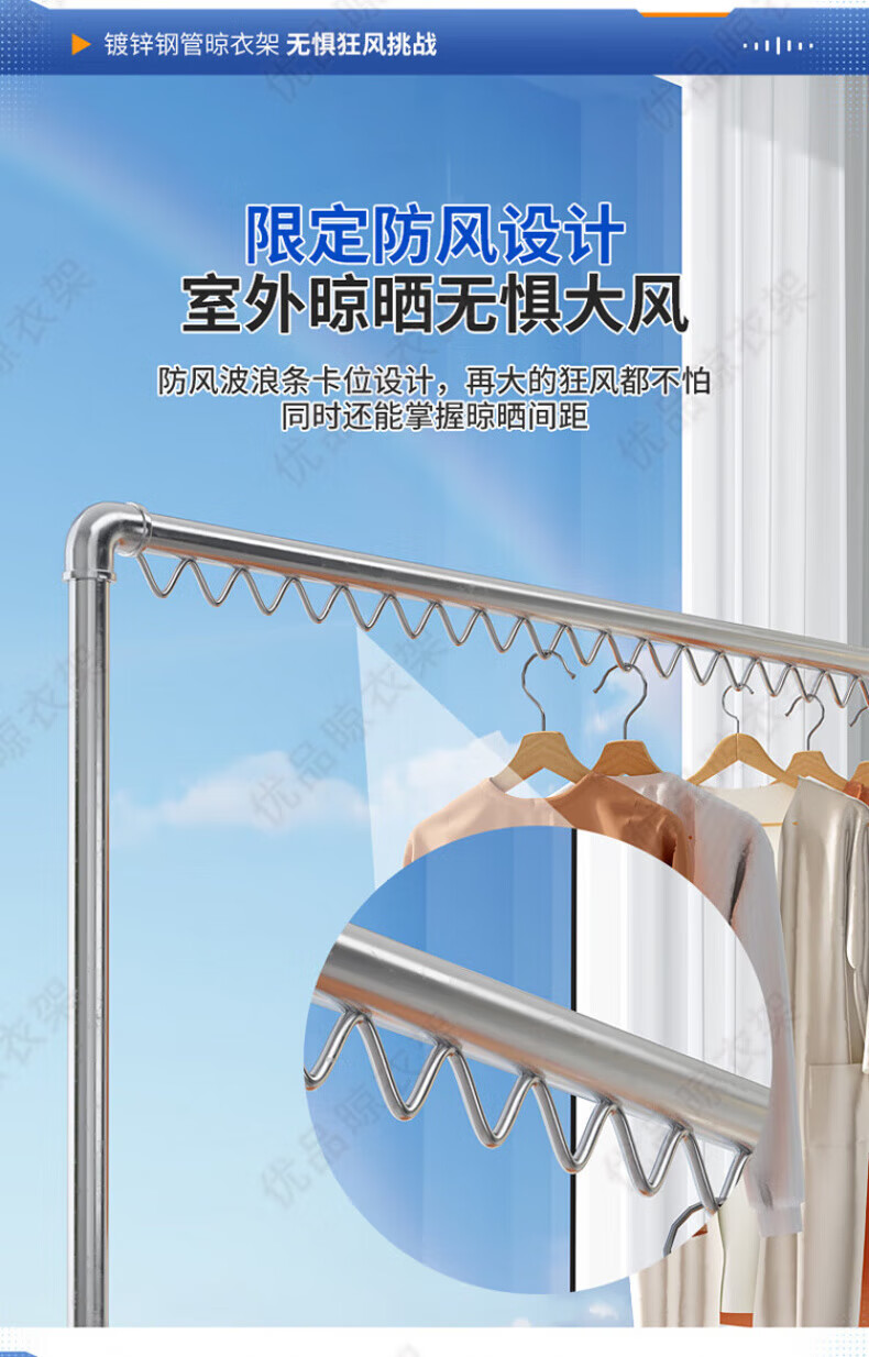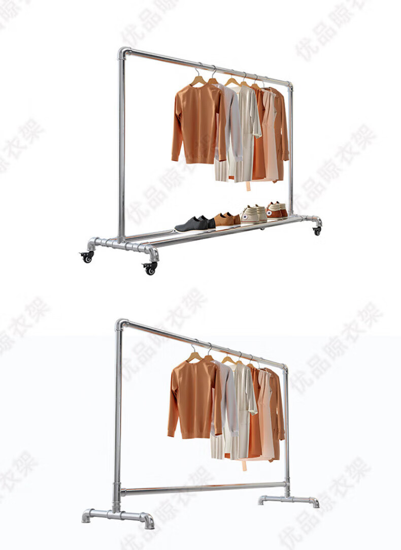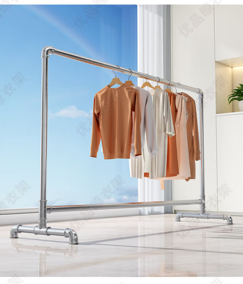 DEATKN加粗钢管晾衣架凉衣架晾衣杆落地阳台户外挂衣服防风晒被带轮 加粗钢管长100*高100