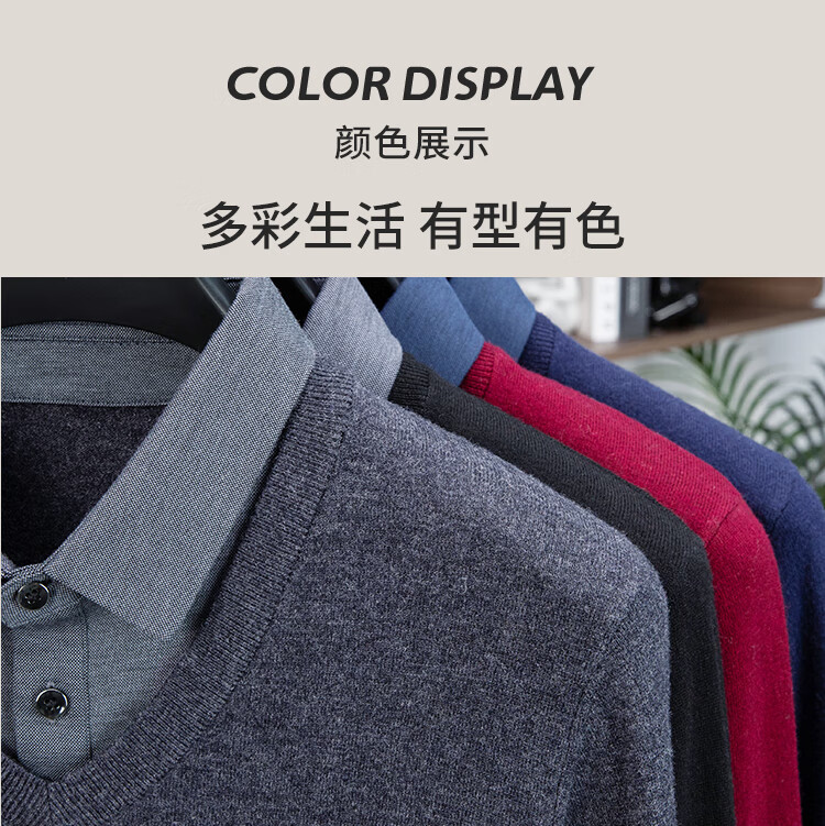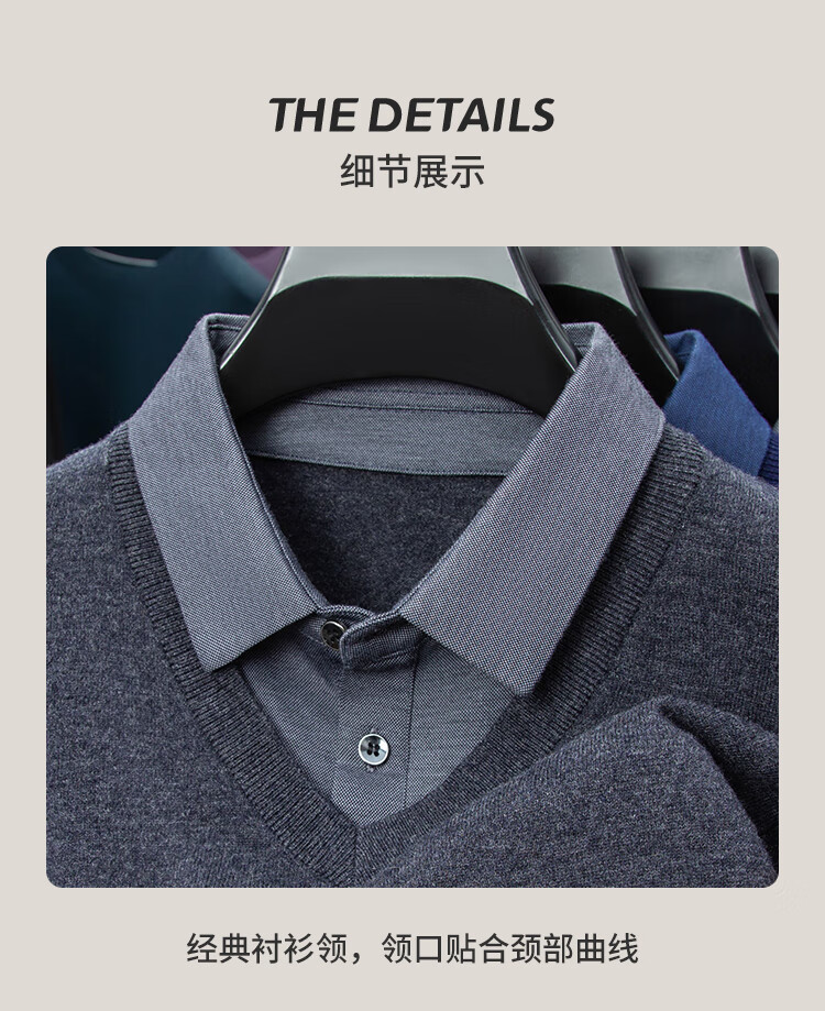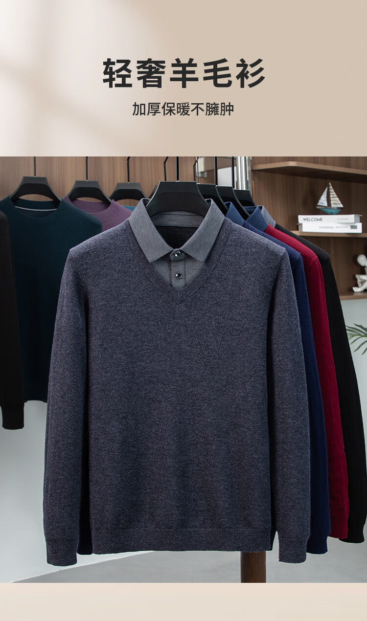 乔沃(JOW)【100%绵羊毛商务款】秋冬保暖衬衫领纯羊毛衫男式通勤假两件毛衣