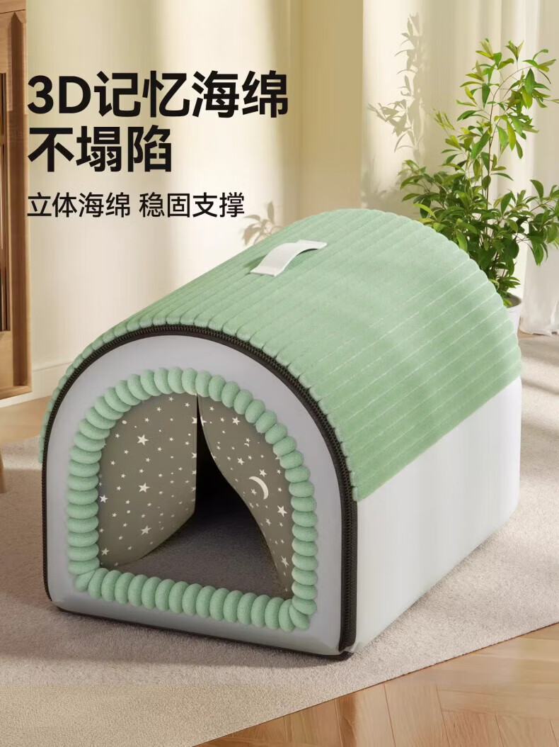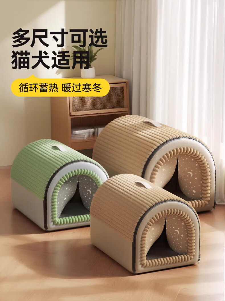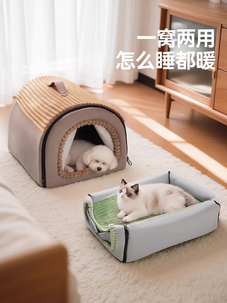 AILUKI日本高端狗窝冬季保暖封闭式狗床睡觉狗屋猫窝安全感可拆洗大小型 【L码】栗子棕带门帘【升级绒/一窝两用】