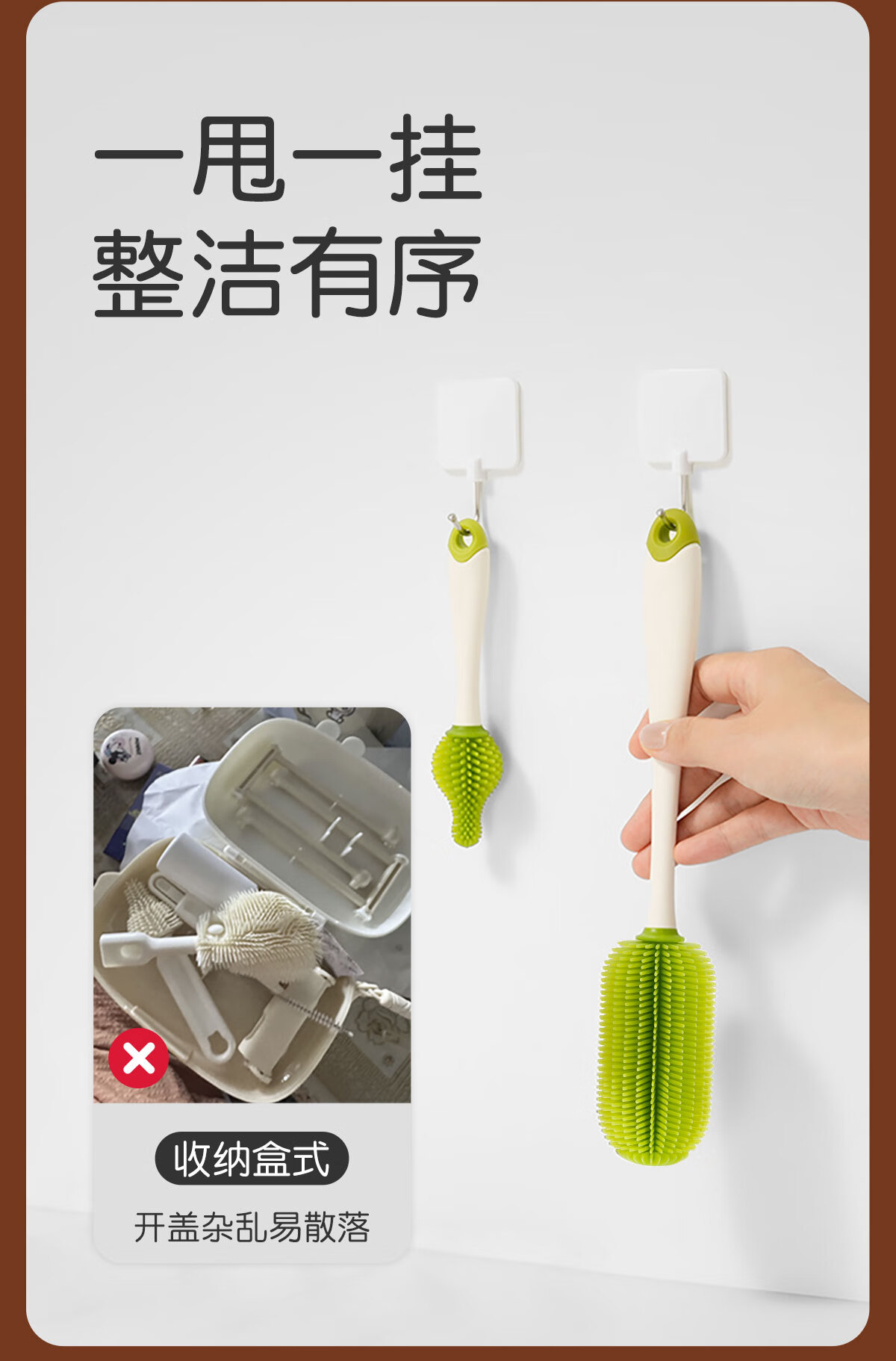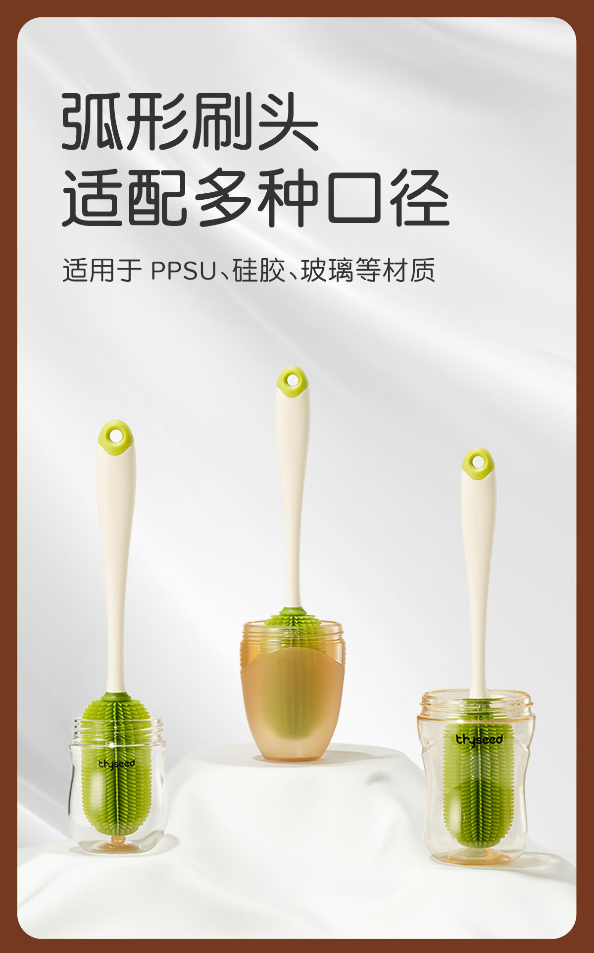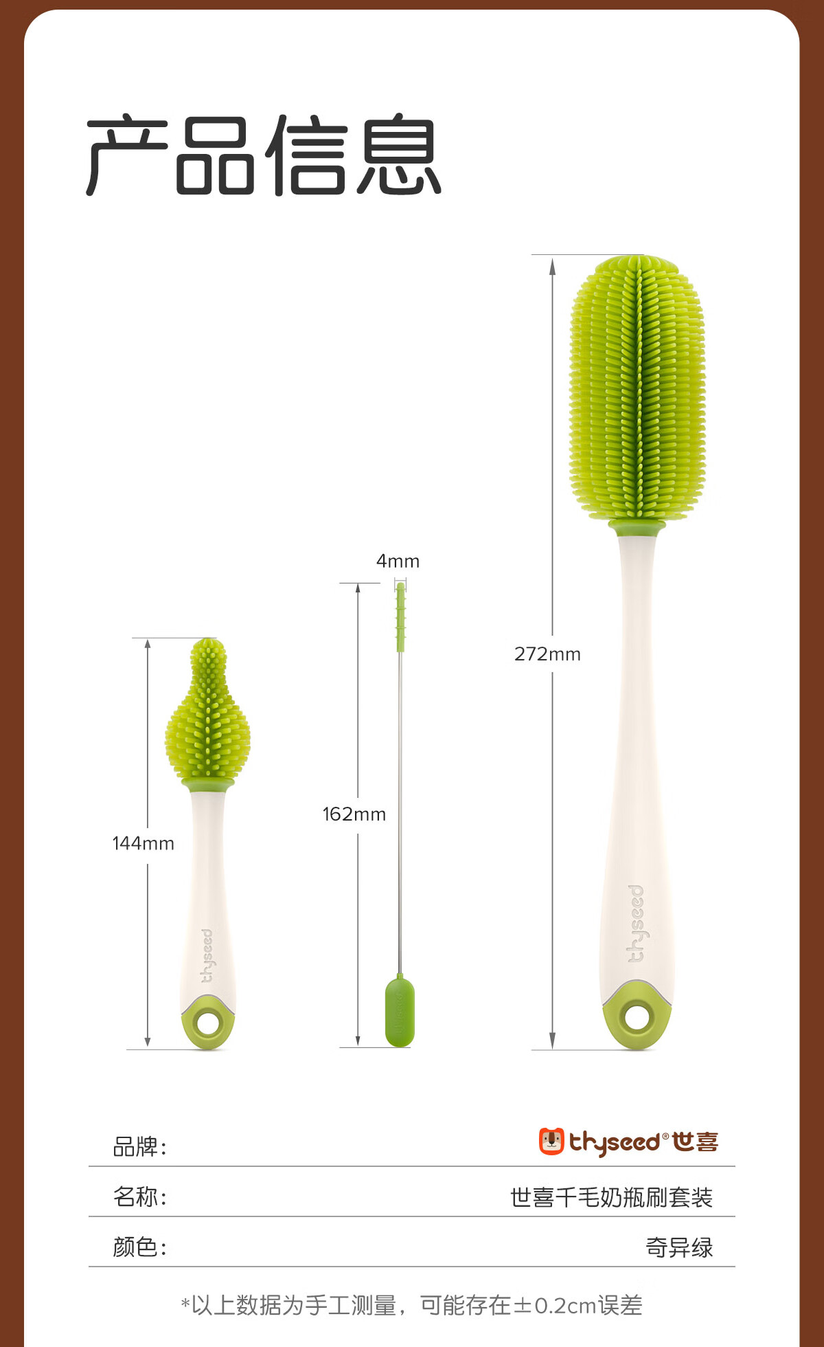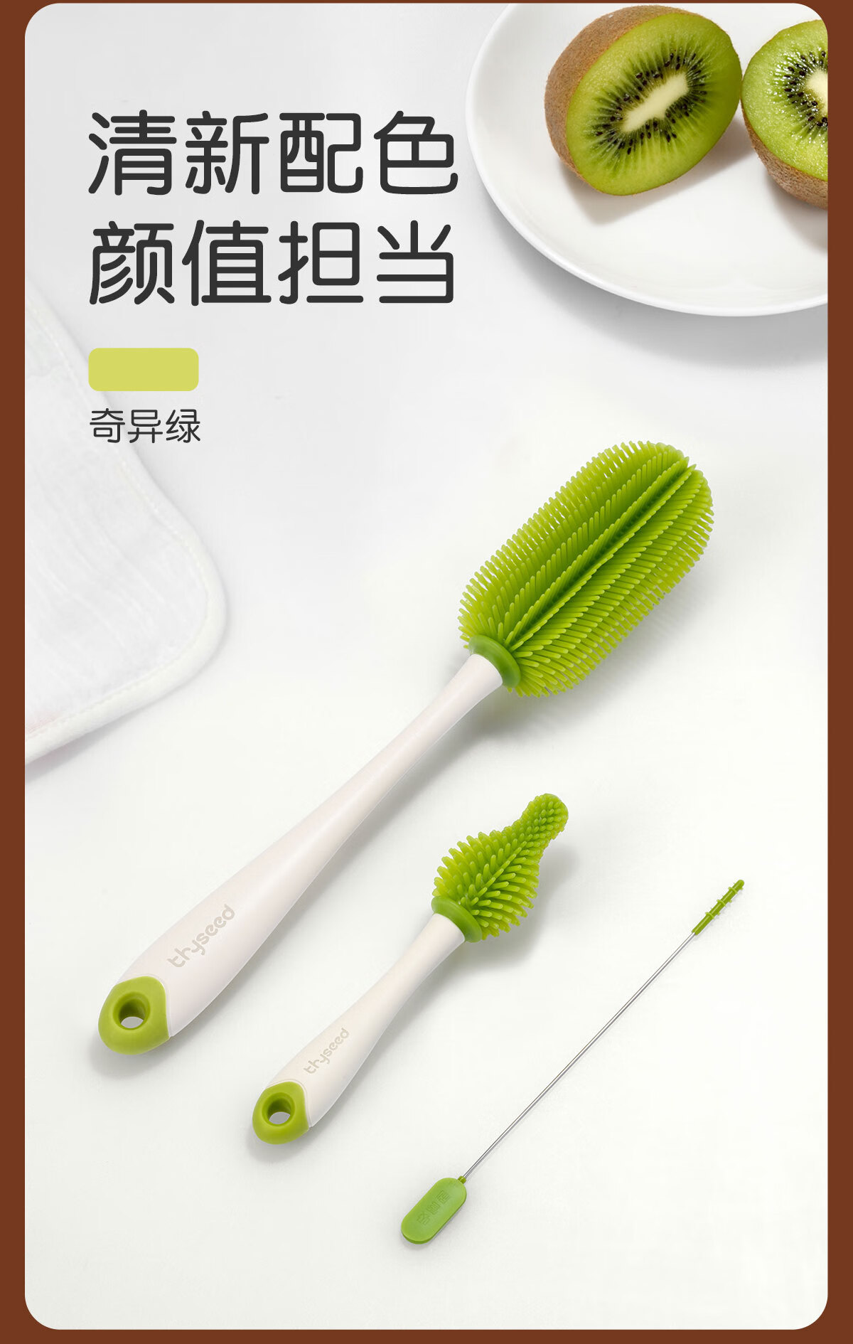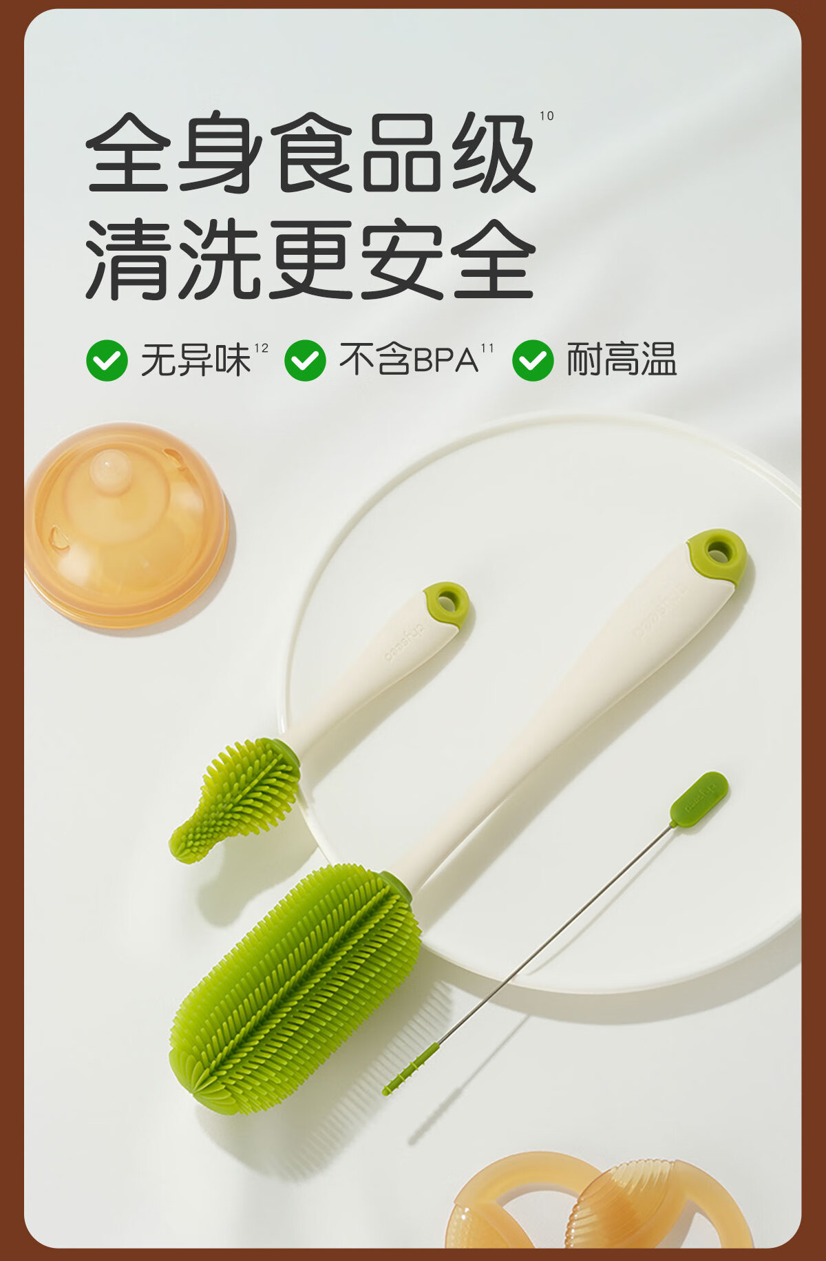 世喜婴儿奶瓶刷硅胶奶嘴刷洗奶瓶清洗刷吸管刷子便携杯刷3件套装