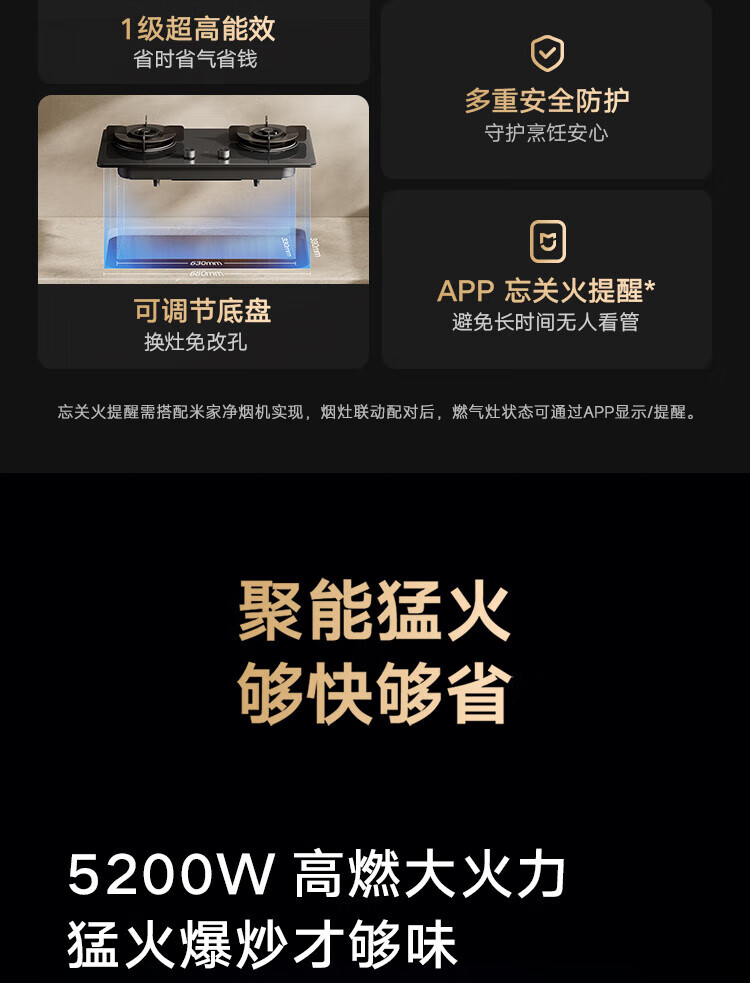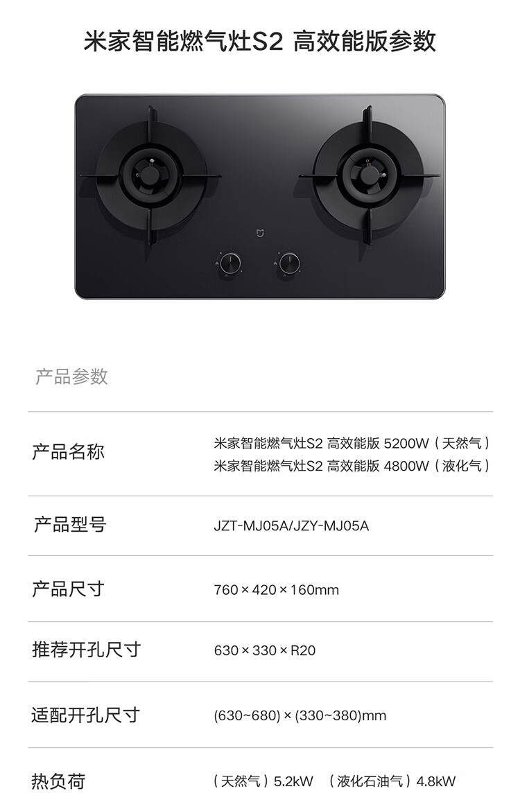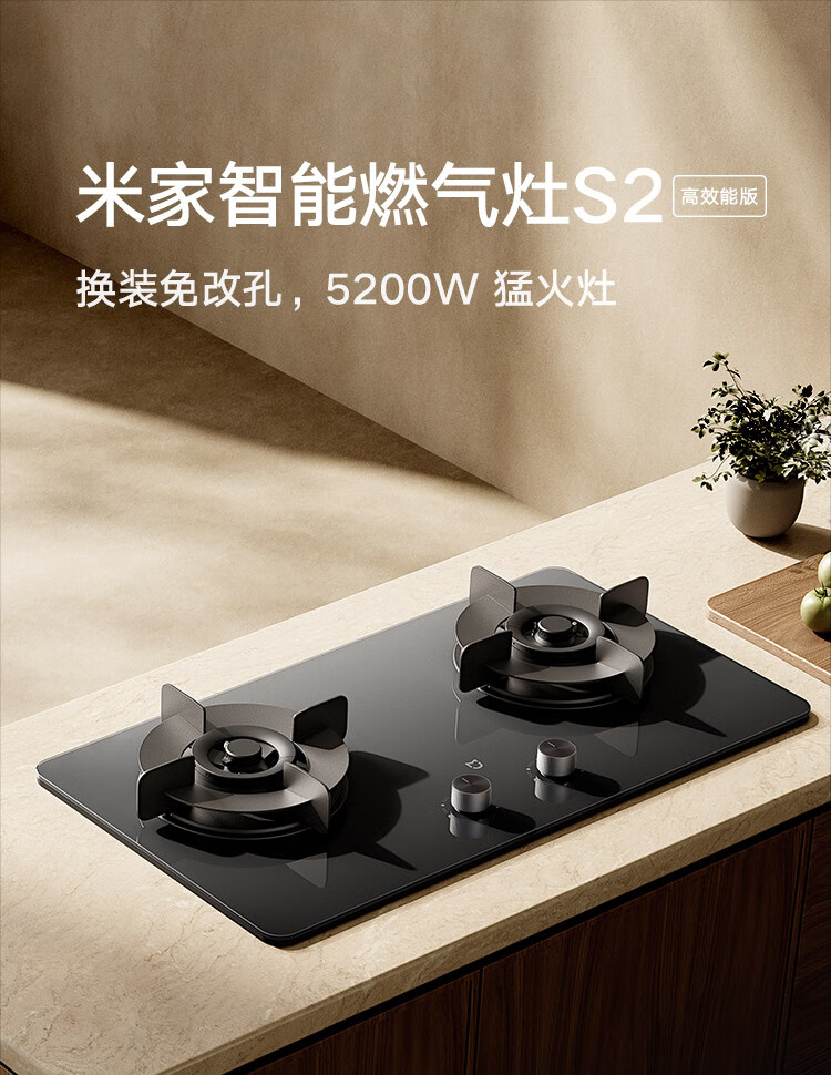 米家小米S2高效能版燃气灶煤气灶家电国家补贴以旧换新 嵌入式家用天然气5.2kW猛火灶具JZT-MJ05A