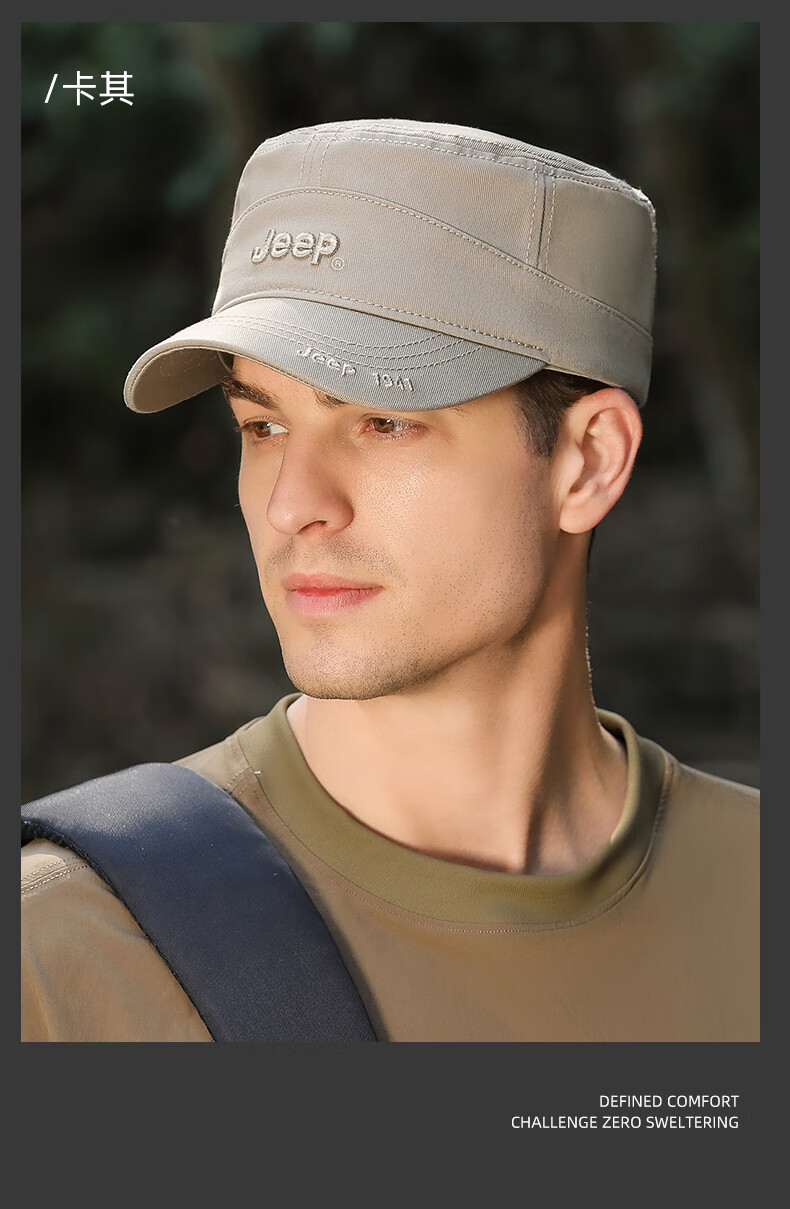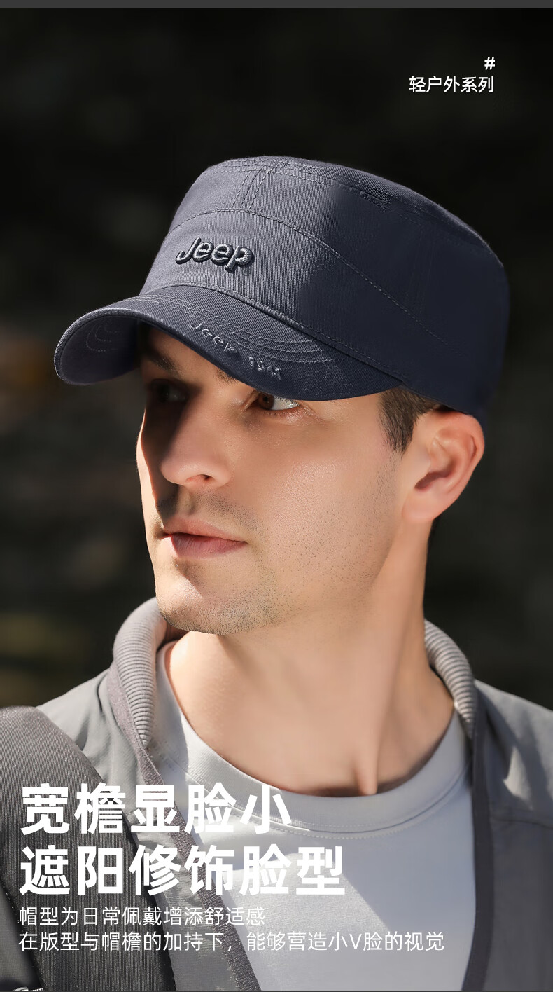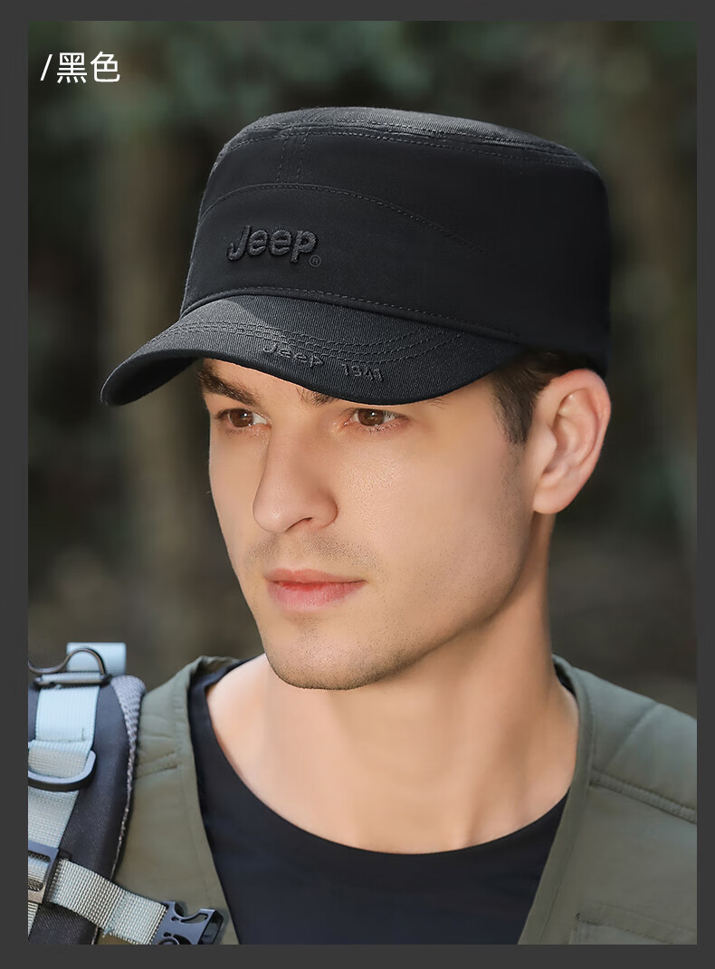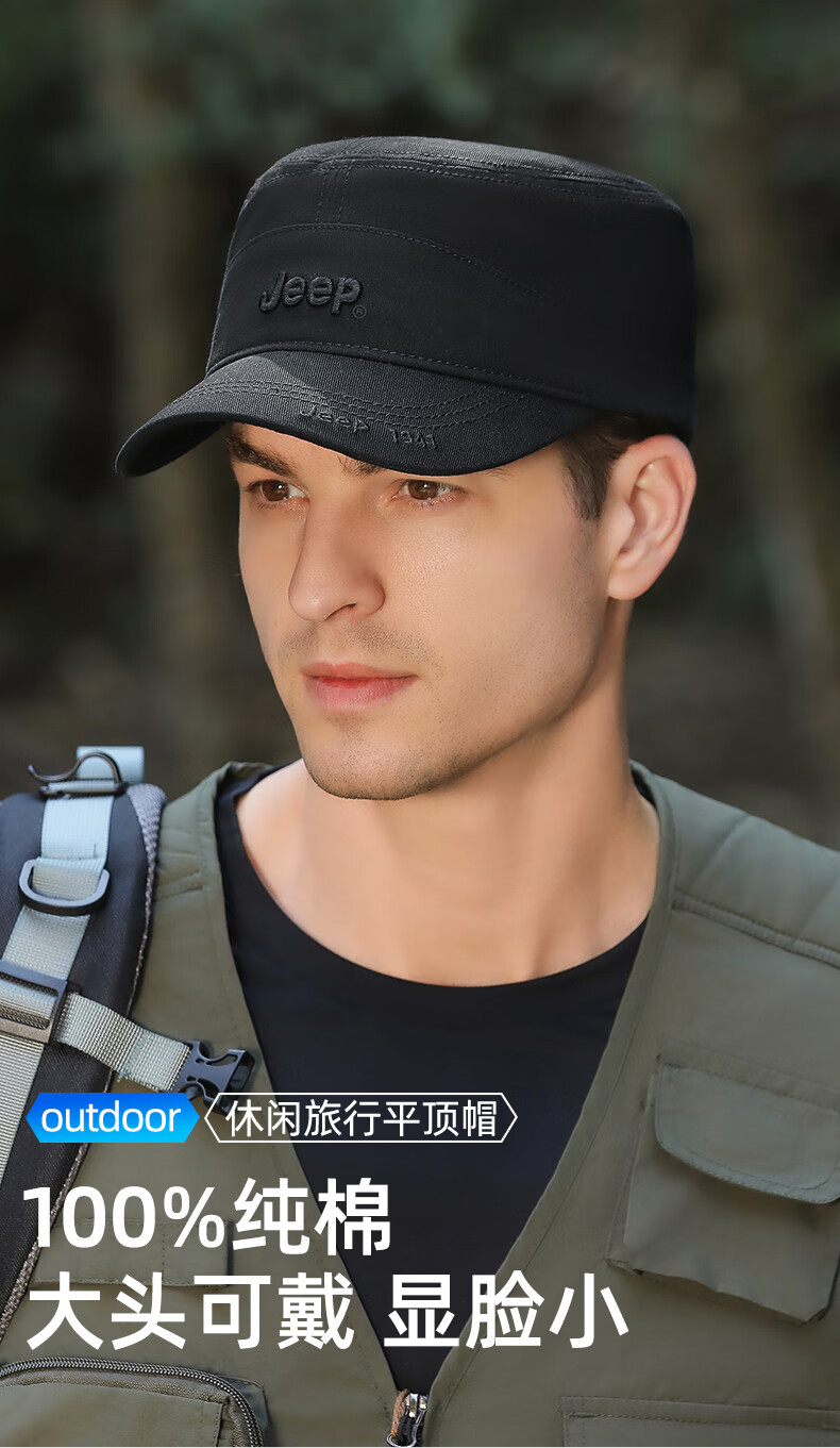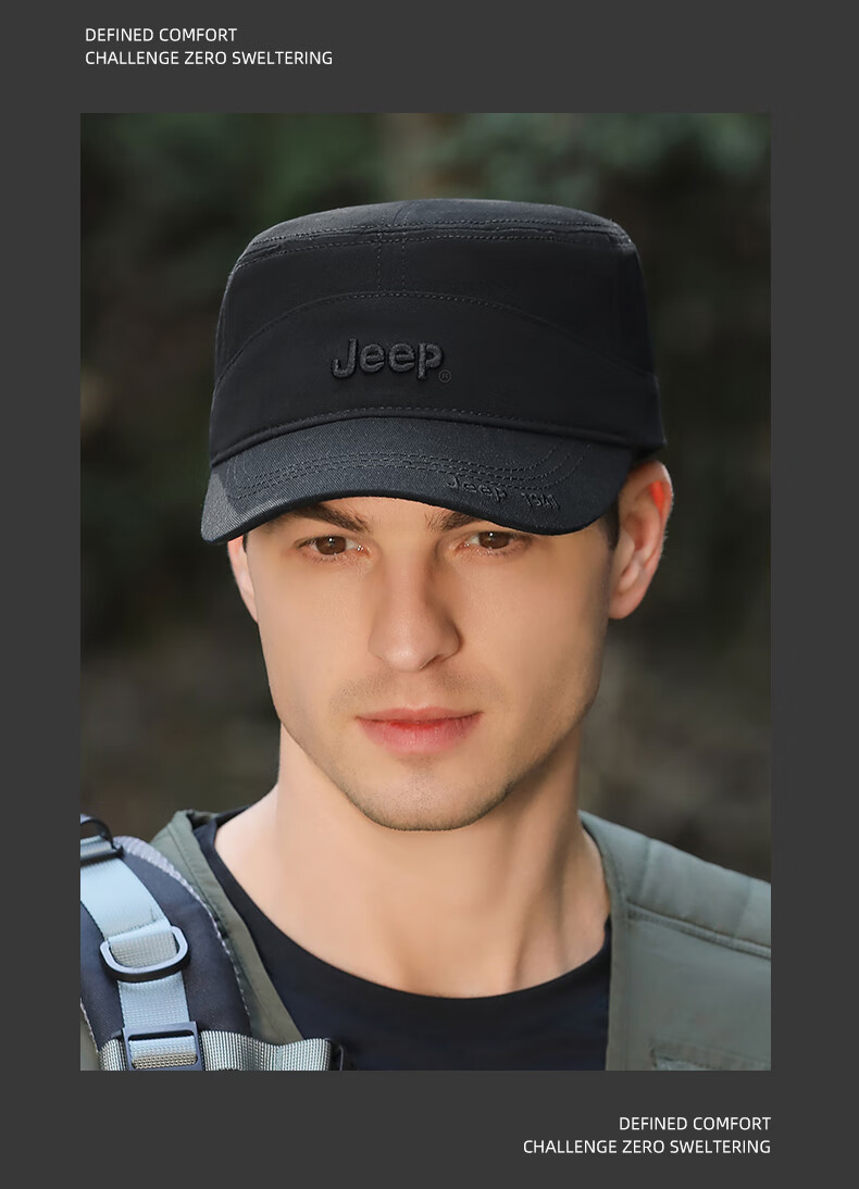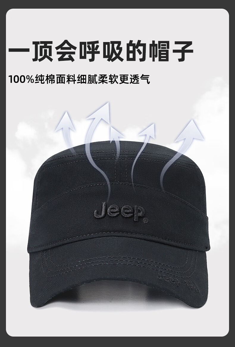 吉普(JEEP)帽子男士棒球帽四季百搭纯棉鸭舌帽平顶太阳帽中老年遮阳帽子